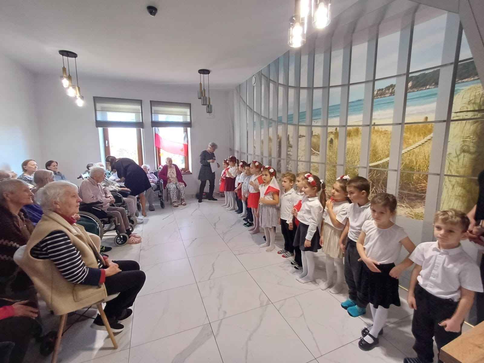 Z okazji Narodowego Święta Niepodległości dzieci z naszego przedszkola odwiedziły Dom Seniora „Kalinowy Dwór”, gdzie zaprezentowały piękny i wzruszający program artystyczny.