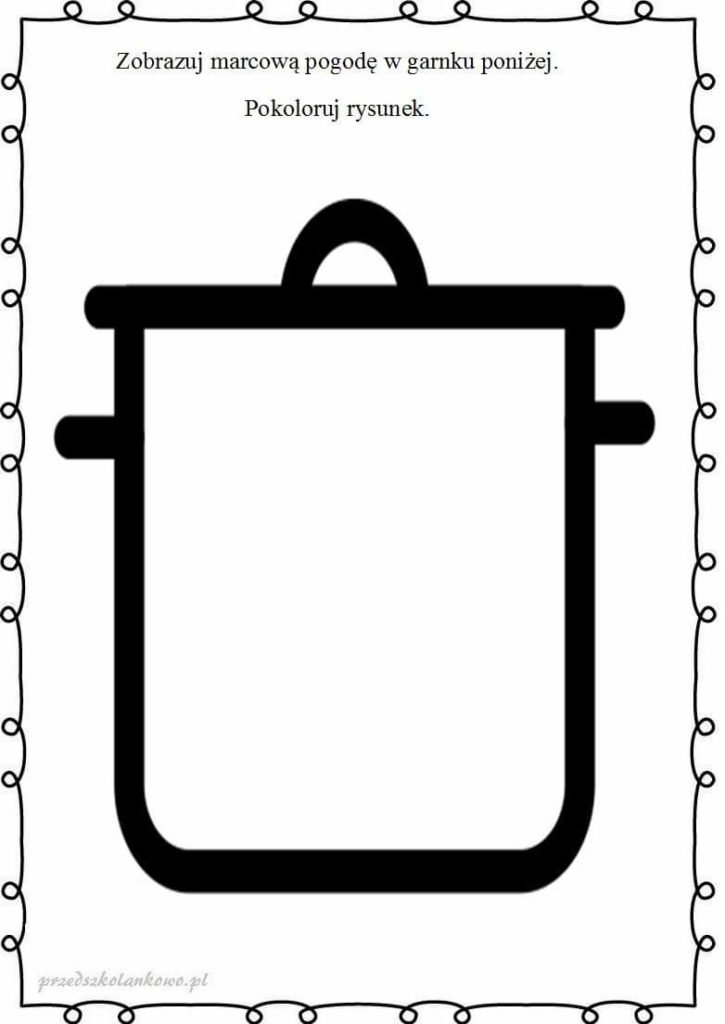 Marzec ma ogromny garniec. Mieszka w nim przez całe noce, Wieje w garncu nieustannie Syczy cos i bulgocze. – Powiedź, Marcu, Co masz w garncu? – Mam składniki różnorodne: Wiatry ciepłe, wiatry chłodne, Chmury, słońce, śnieg i wodę z nich przyrządzam Wam pogodę.