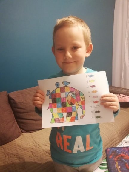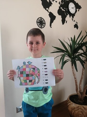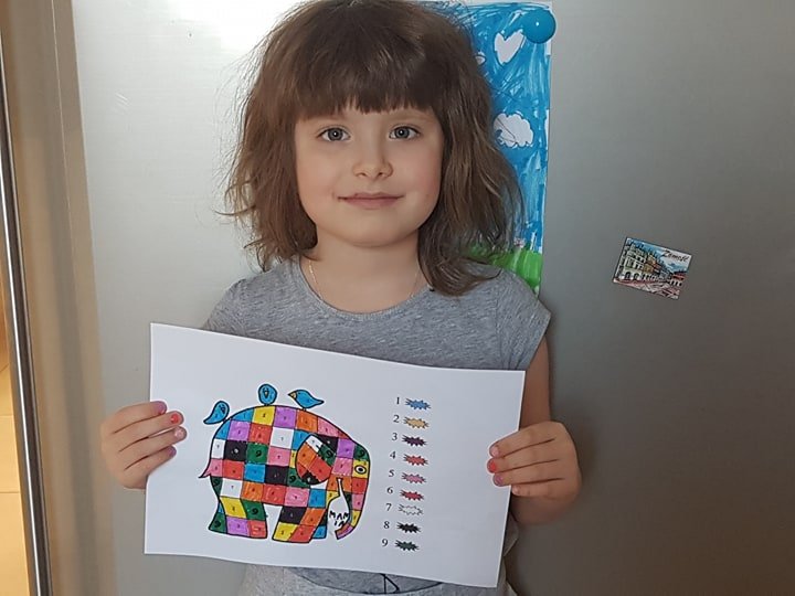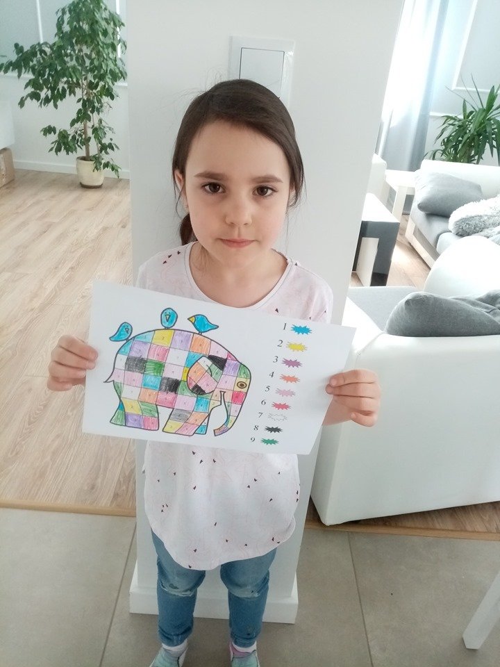 Tak pracujemy w domu… Posted on: 20 marca 2020 by: AW Część V Dzieci z gr 6 wysłuchały opowiadania „Elmer – słoń w kratkę” i za pomocą specjalnego kodu pomalowały kolorowanki. Oto nasze prace Część IV Część III Część II część I
