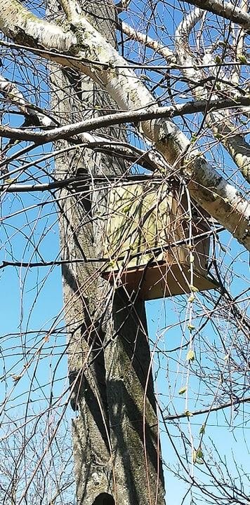 Pąki na drzewach szpaki w swych budkach