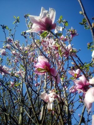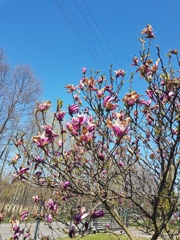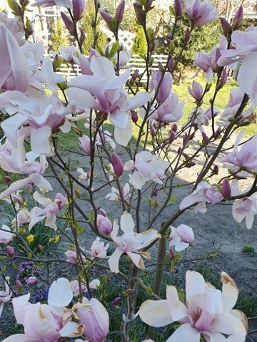 Tu jest magnolia, obok forsycja