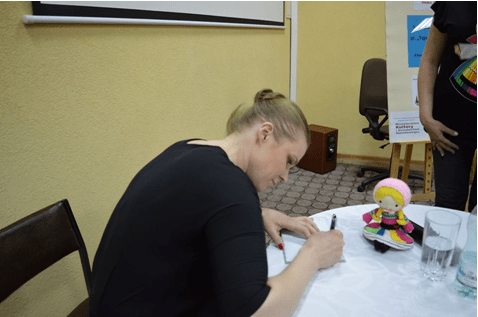 o autograf poprosiła.