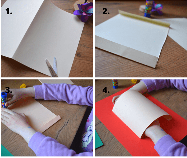 - Kartkę A4 składamy na pół i przecinamy wzdłuż zaznaczonej linii.
