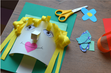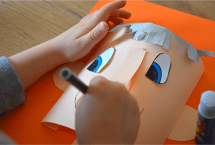 - Przyklejamy na kartkę A4, tak aby twarz była wypukła (patrz zdjęcie).