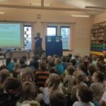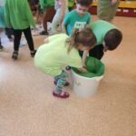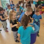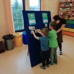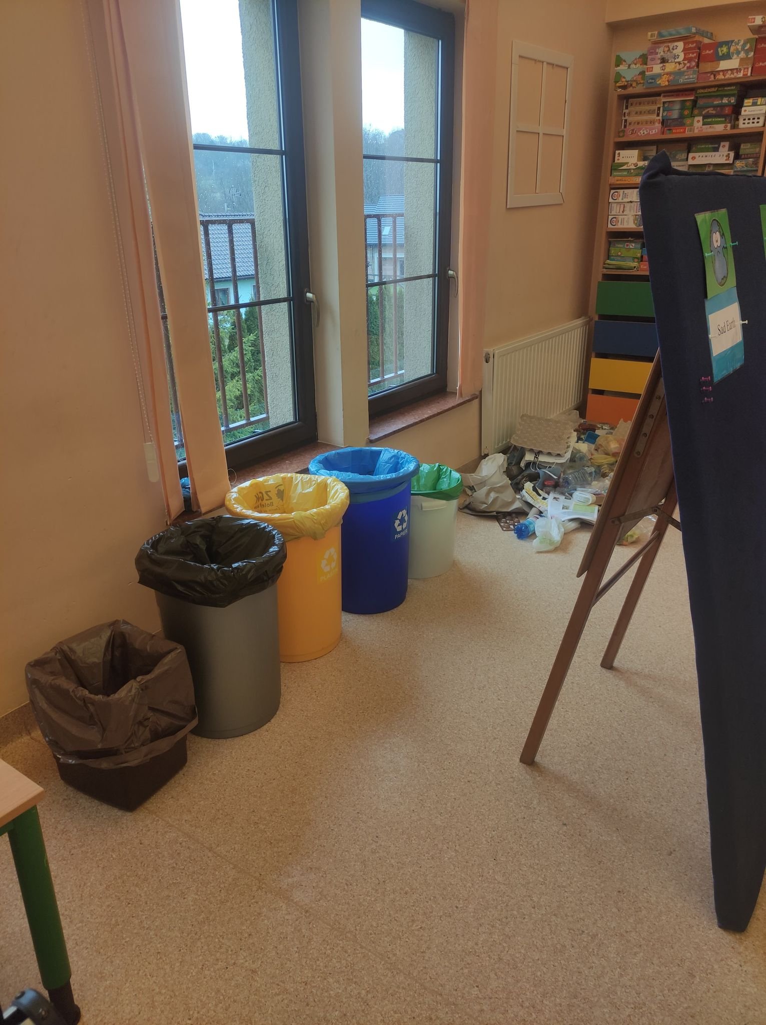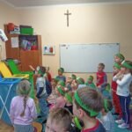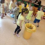 Dzieci uczyły się segregować odpady do odpowiednich koszy, poznały pojęcie „recyklingu” oraz dowiedziały się ile czasu