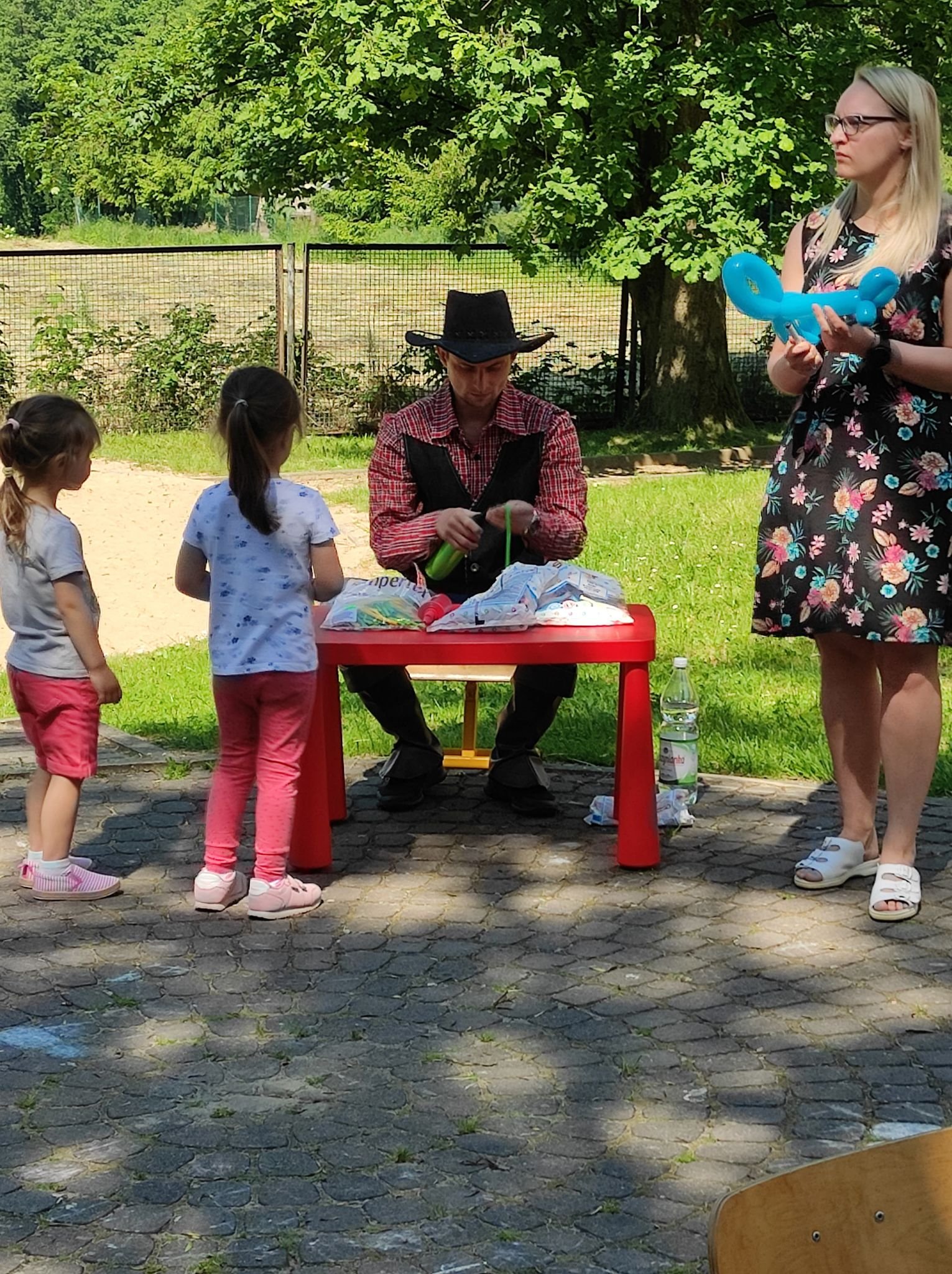 Z okazji dnia dziecka w Alwerni i w Grojcu odbył się piknik pod hasłem ,,Na dzikim zachodzie ” Wraz z animatorami świetnie bawiliśmy się przy muzyce, podczas zabaw sprawnościowych oraz na dmuchanych zjeżdżalniach. Oglądaliśmy pokaz dużych baniek mydlanych. Dużą atrakcją okazało się balonowe zoo oraz malowanie twarzy. To był wspaniały dzień!