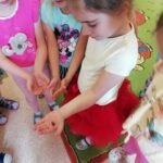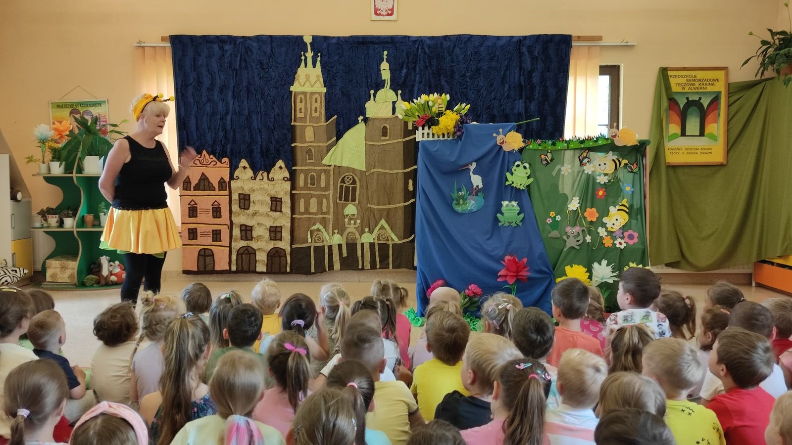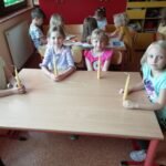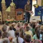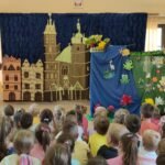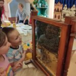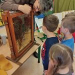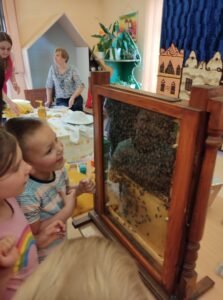 którzy zainteresowali dzieci życiem pszczół. Dowiedzieliśmy się ile żyją pszczoły, ile mieszka ich w ulu, co zbierają i do czego są potrzebne.Miały możliwość oglądania ubrania pszczelarza, wytworów pszczół i degustowały miód. Oglądaliśmy teatrzyk pt ,, Legenda o toruńskich piernikach” i poznaliśmy magiczną moc miodu.