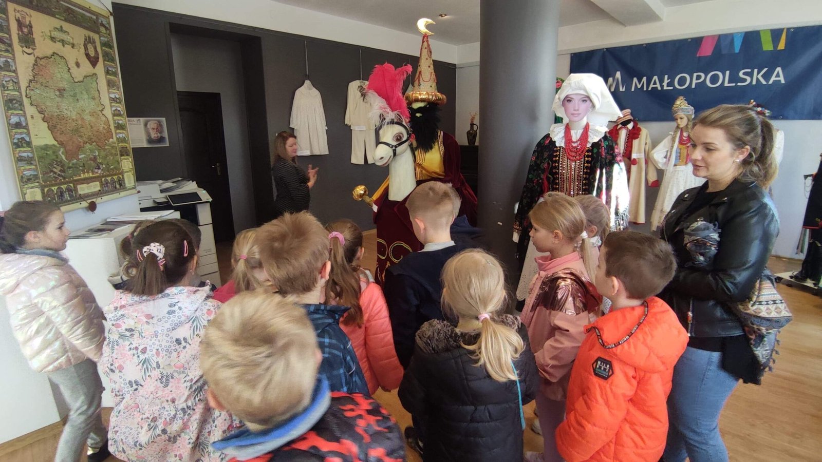 Podczas wizyty dzieci dowiedziały się m.in. jak dawniej ubierali się ich rówieśnicy podczas zabaw oraz dorośli na różne okazje i święta.Największym powodzeniem jednak cieszył się Lajkonik.