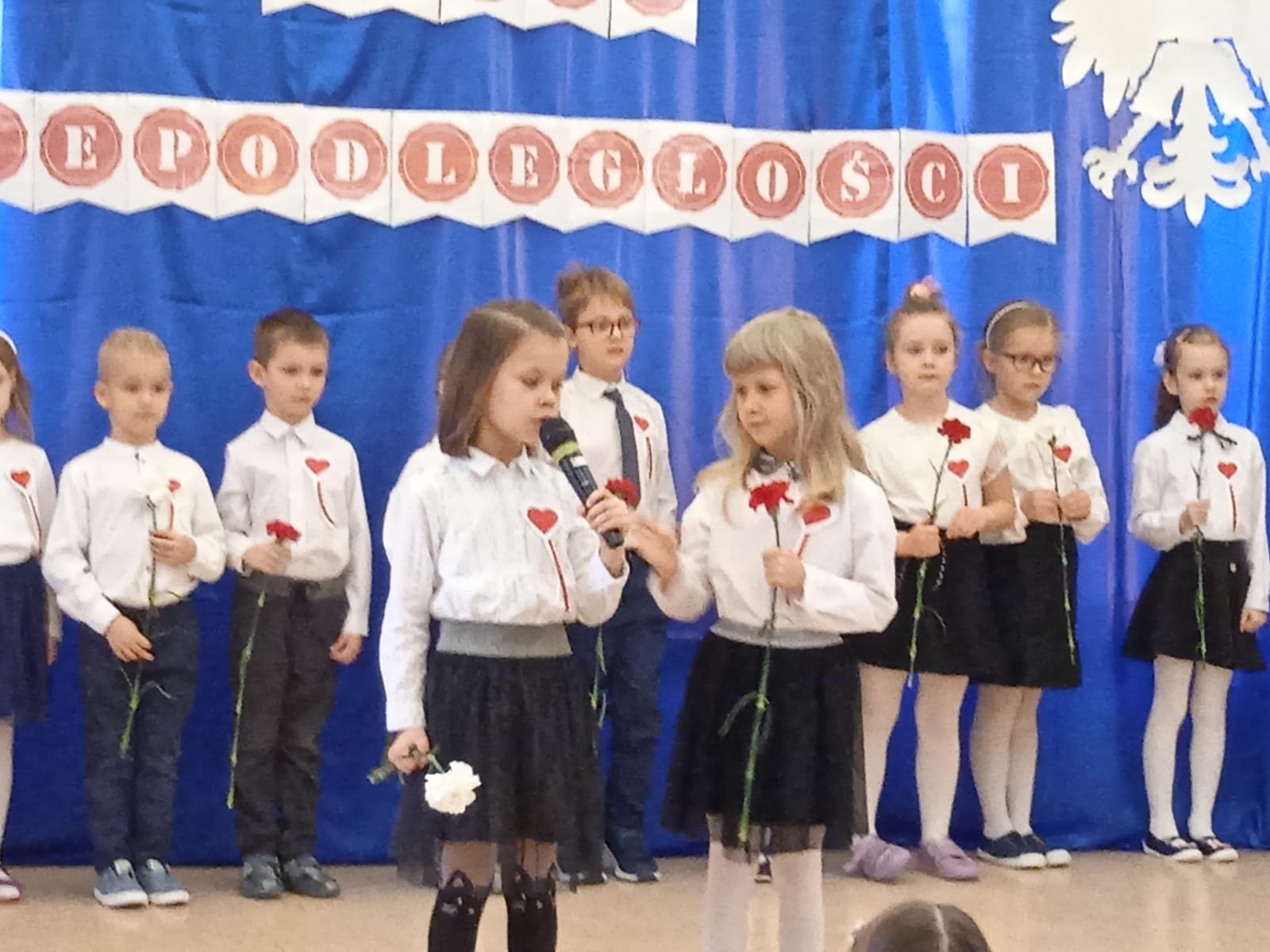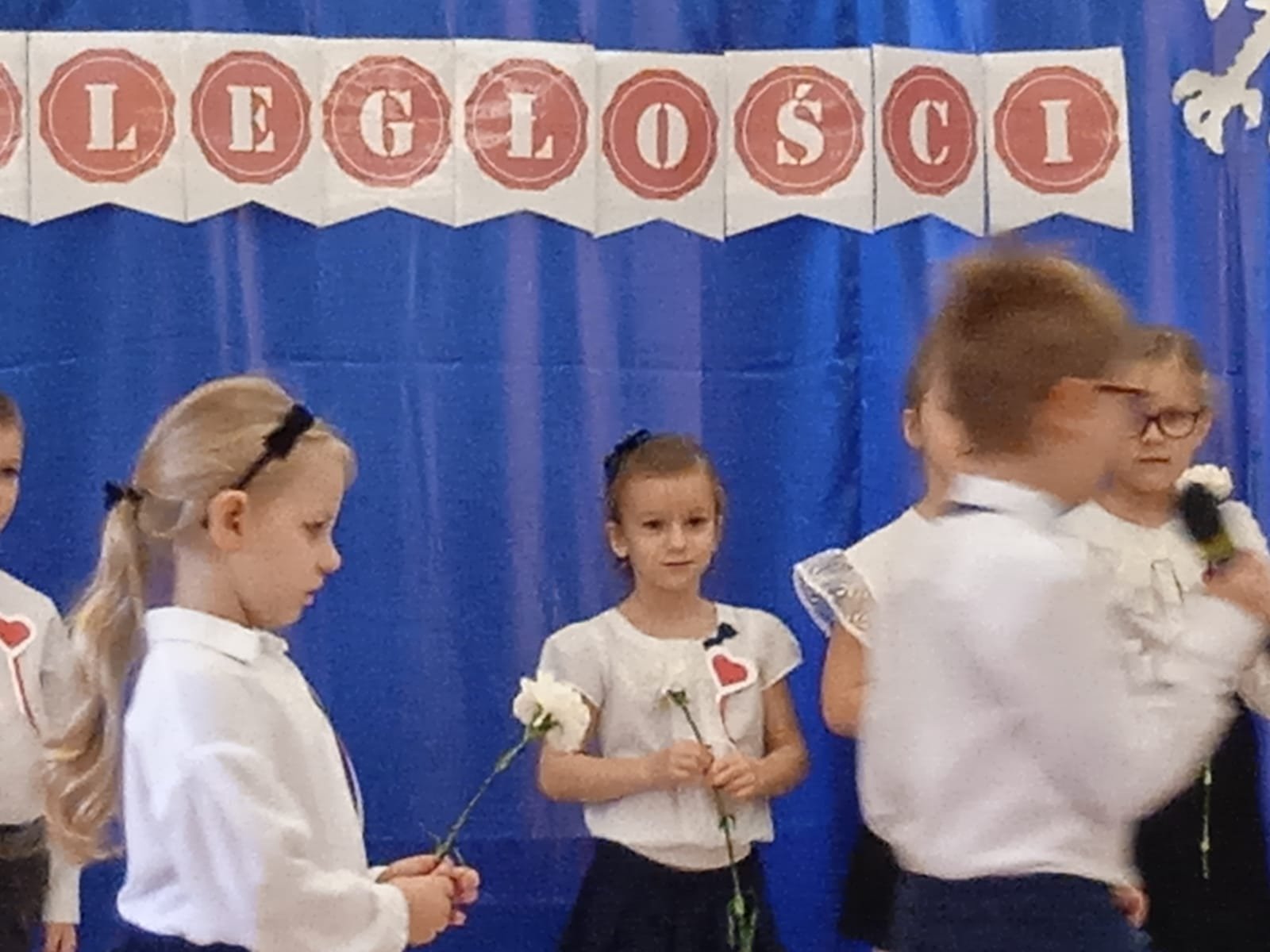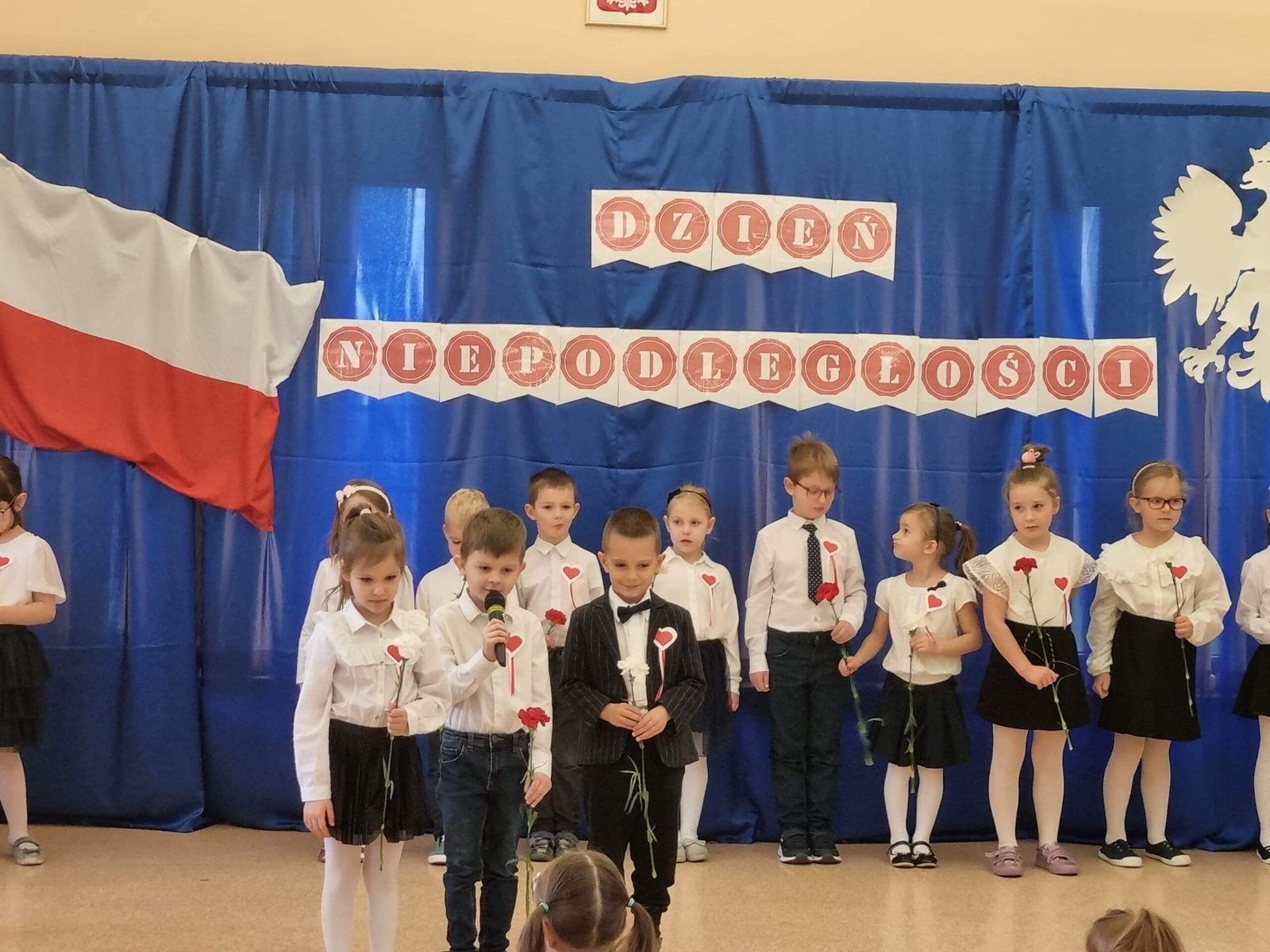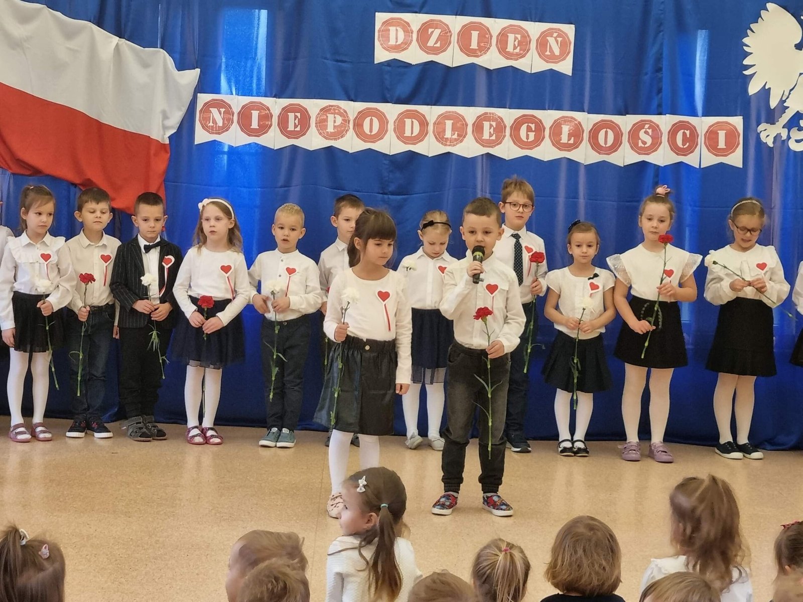 Z okazji Dnia Niepodległości starszaki przygotowały uroczystą akademię , na którą zaprosiły młodszych kolegów i koleżanki oraz personel przedszkola. Z dumą i wielkim zaangażowaniem zaprezentowały wiersze i piosenki upamiętniające to doniosłe wydarzenie. Wspólnie odśpiewaliśmy hymn Polski .