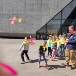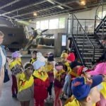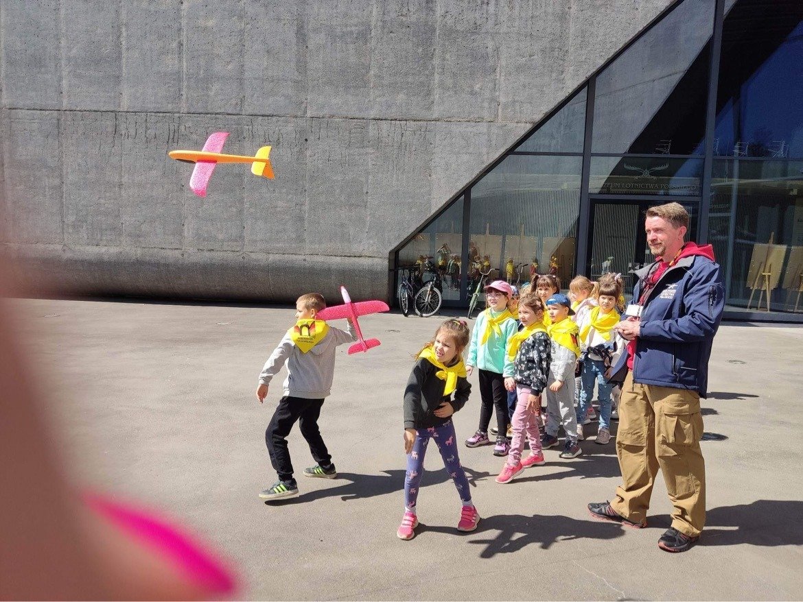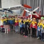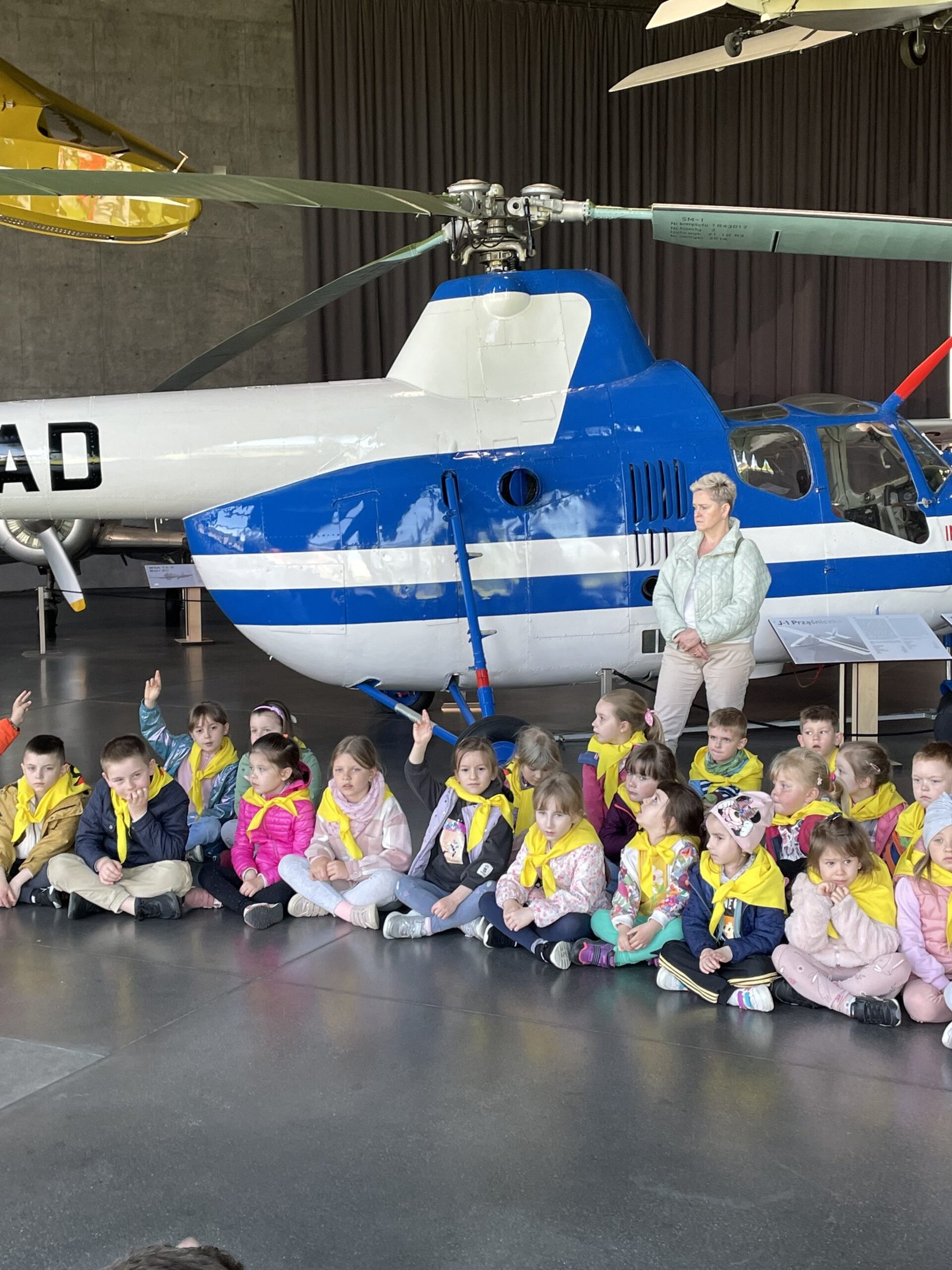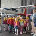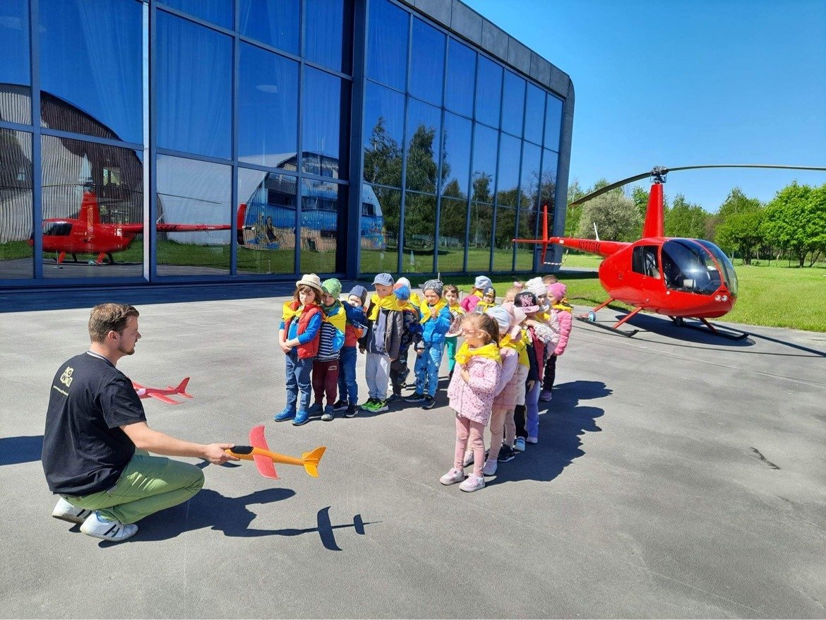 Dzieci uczestniczyły w warsztatach pt.,,Fizyka lotu dla przedszkolaków” .Poznały podstawowe statki powietrzne, takie jak szybowce, samoloty, śmigłowce czy balony.Dowiedziały się, dlaczego one latają. Samodzielnie próbowały swoich sił w lataniu szybowcami i latającymi śmigłami. Na zakończenie przewodnik poprowadził całą grupę na krótki spacer po terenie Muzeum, pokazując na żywo maszyny, o których wcześniej opowiadał. Dodatkową atrakcją było wejście do samolotu i zobaczenie go od wewnątrz.