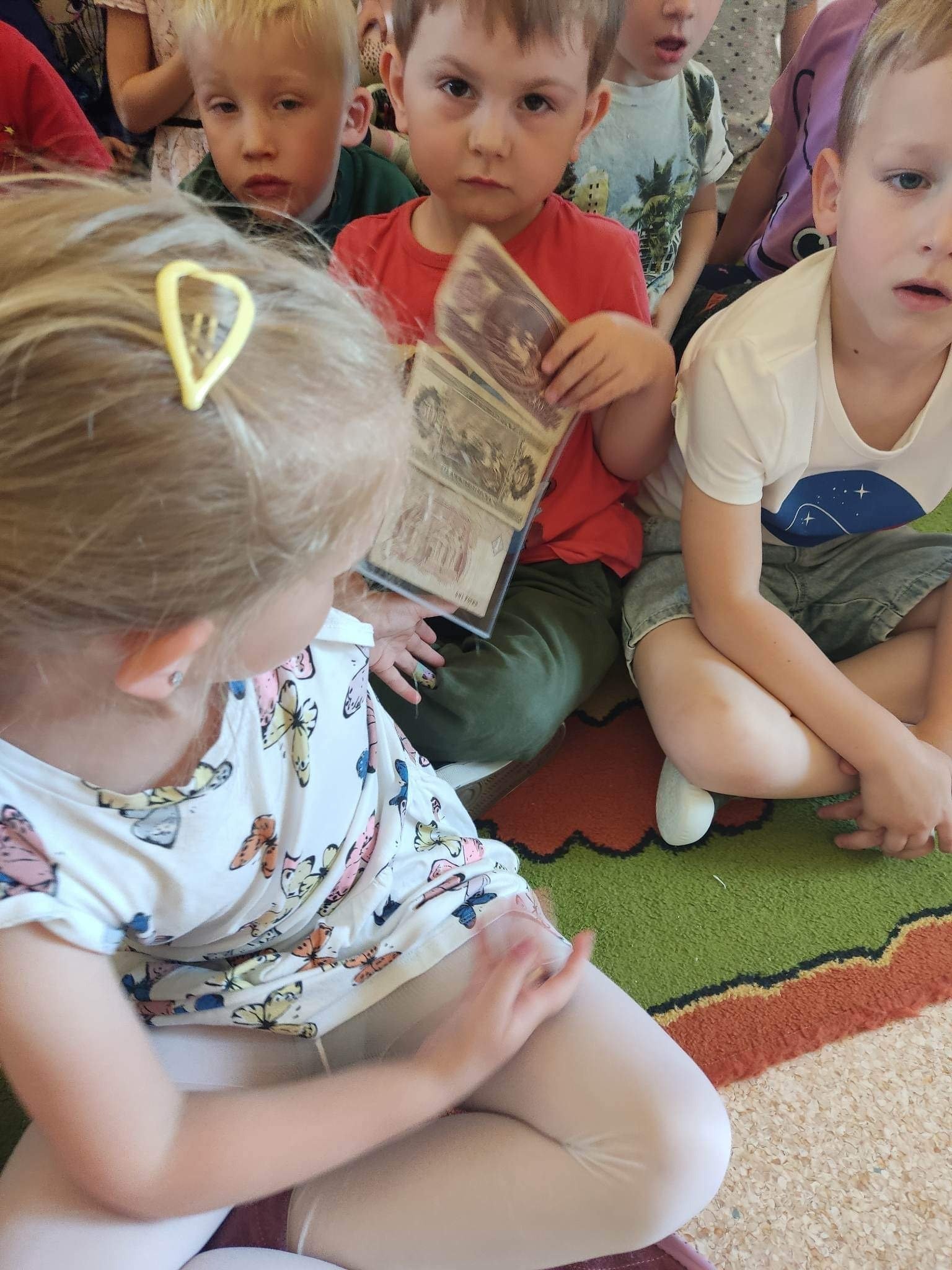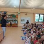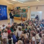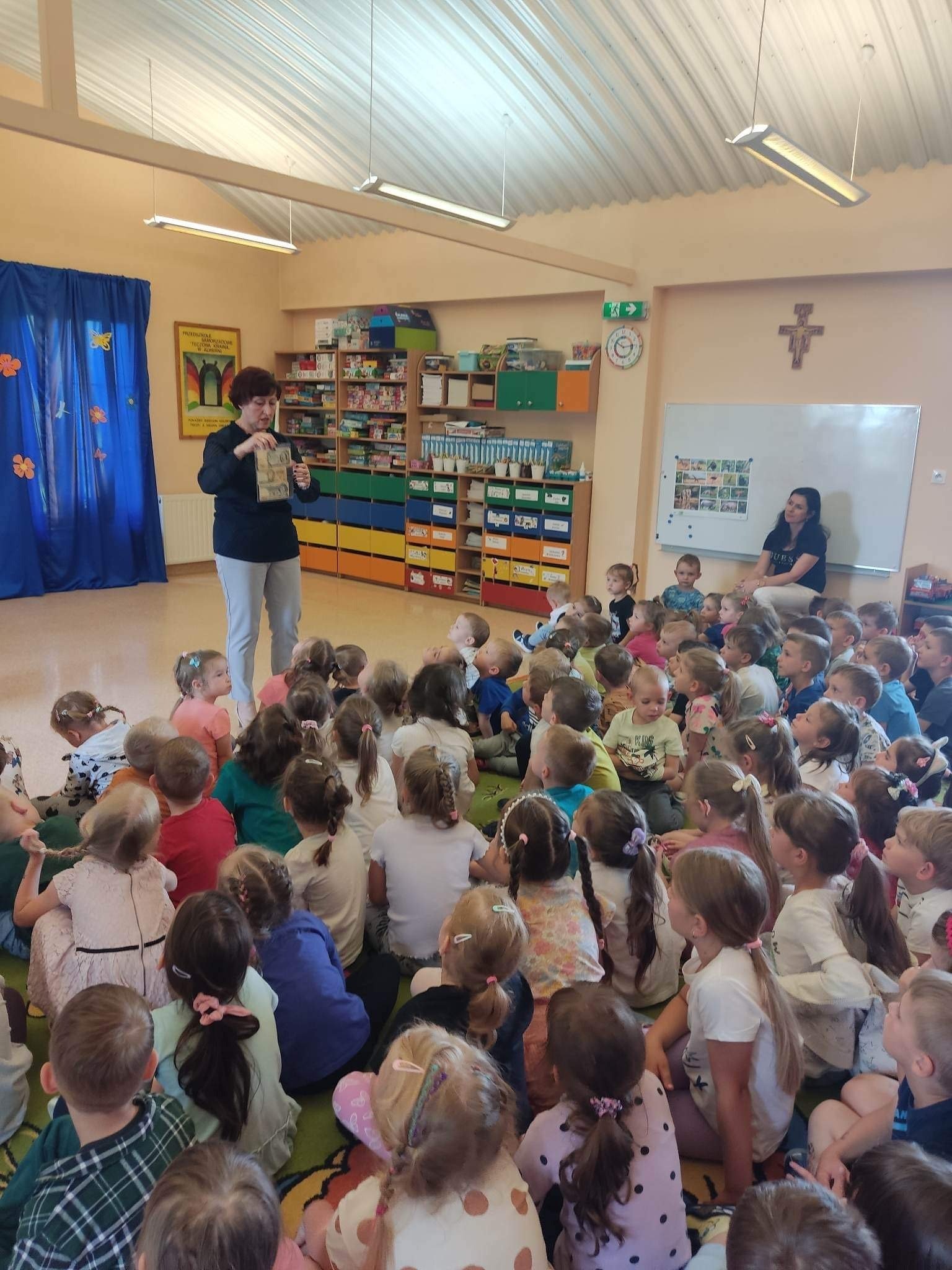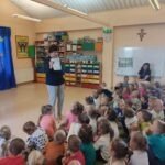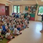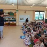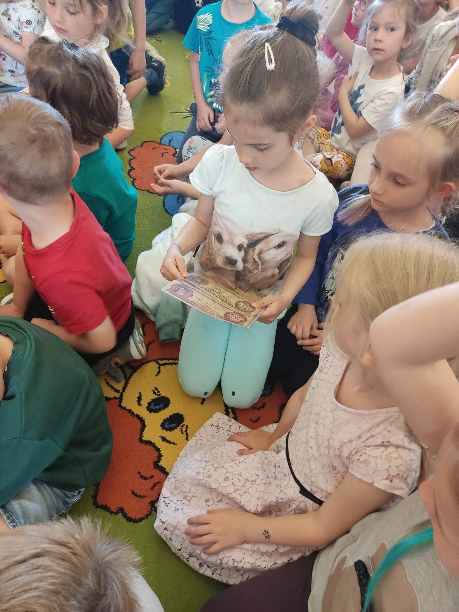 W poniedziałek 12.06 nasze przedszkole odwiedziła Pani Barbara Gaudyn, która jest dyrektorem w Banku Spółdzielczym, znajdującym się obok przedszkola. Dzieci dowiedziały się po krótce jaka była historia pieniądza, czym płacono gdy go dawno temu nie było w użyciu. Dowiedzieliśmy się również czym zajmuje się bankowiec w swej pracy oraz jakie sprawy możemy załatwić w banku. Na koniec oglądaliśmy różne banknoty i monety, te bardzo stare oraz te wciąż używane.
