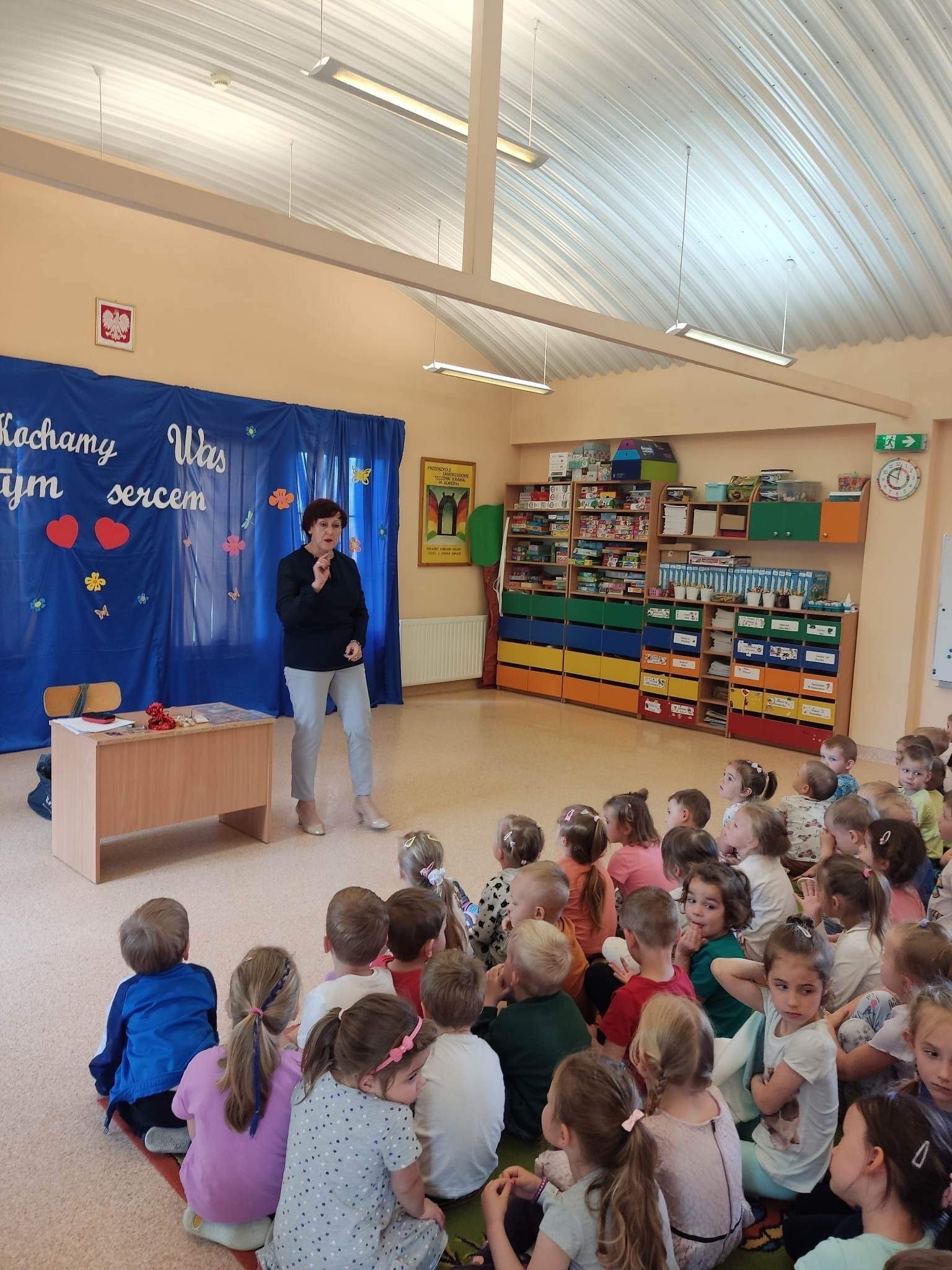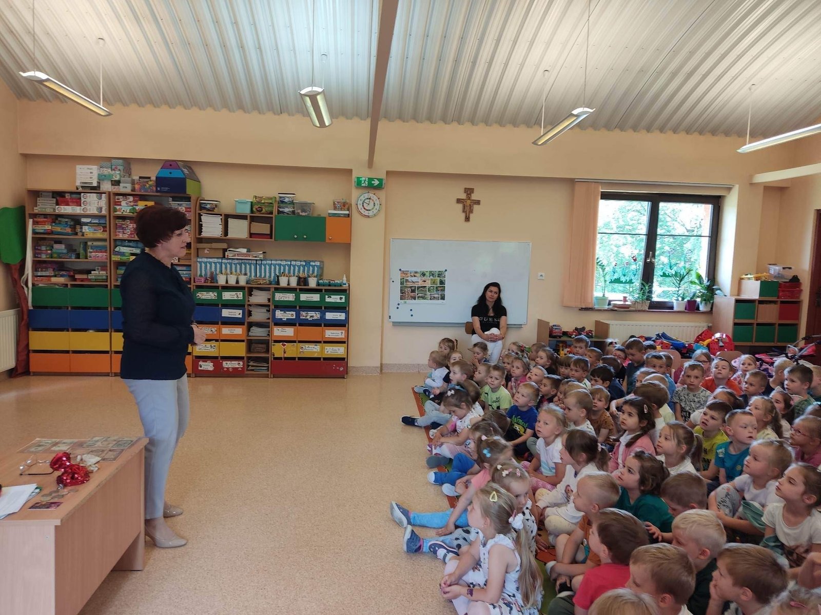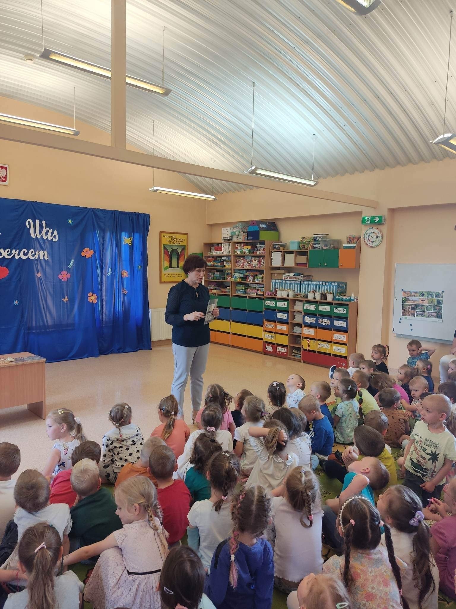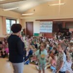 W poniedziałek 12.06 nasze przedszkole odwiedziła Pani Barbara Gaudyn, która jest dyrektorem w Banku Spółdzielczym, znajdującym się obok przedszkola. Dzieci dowiedziały się po krótce jaka była historia pieniądza, czym płacono gdy go dawno temu nie było w użyciu. Dowiedzieliśmy się również czym zajmuje się bankowiec w swej pracy oraz jakie sprawy możemy załatwić w banku. Na koniec oglądaliśmy różne banknoty i monety, te bardzo stare oraz te wciąż używane.
