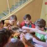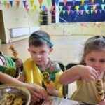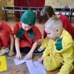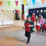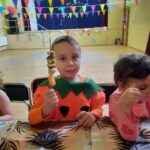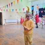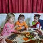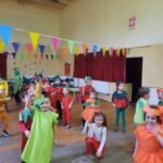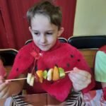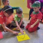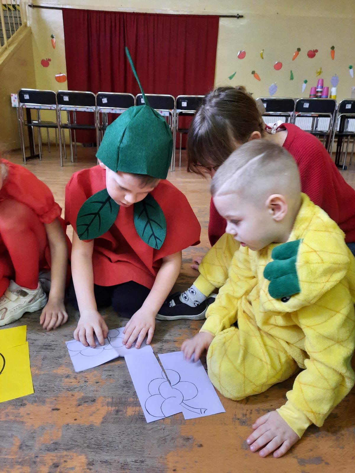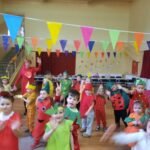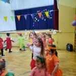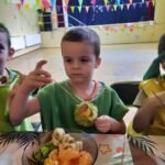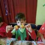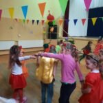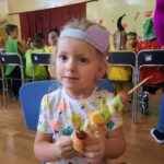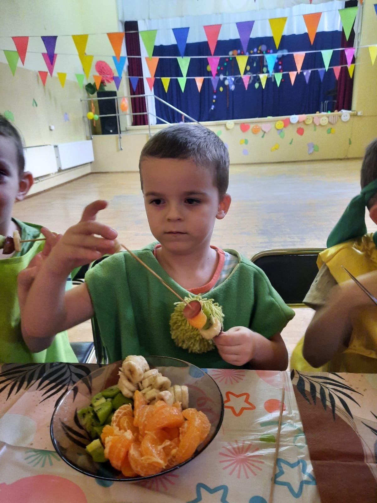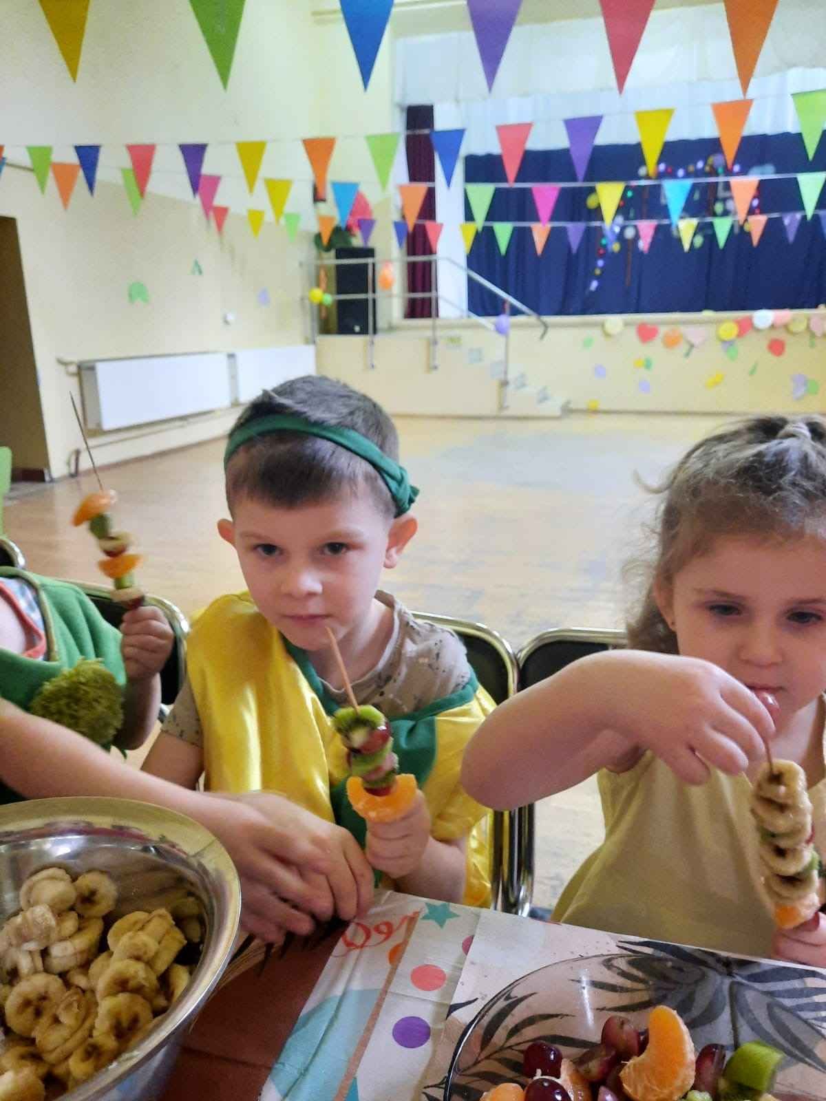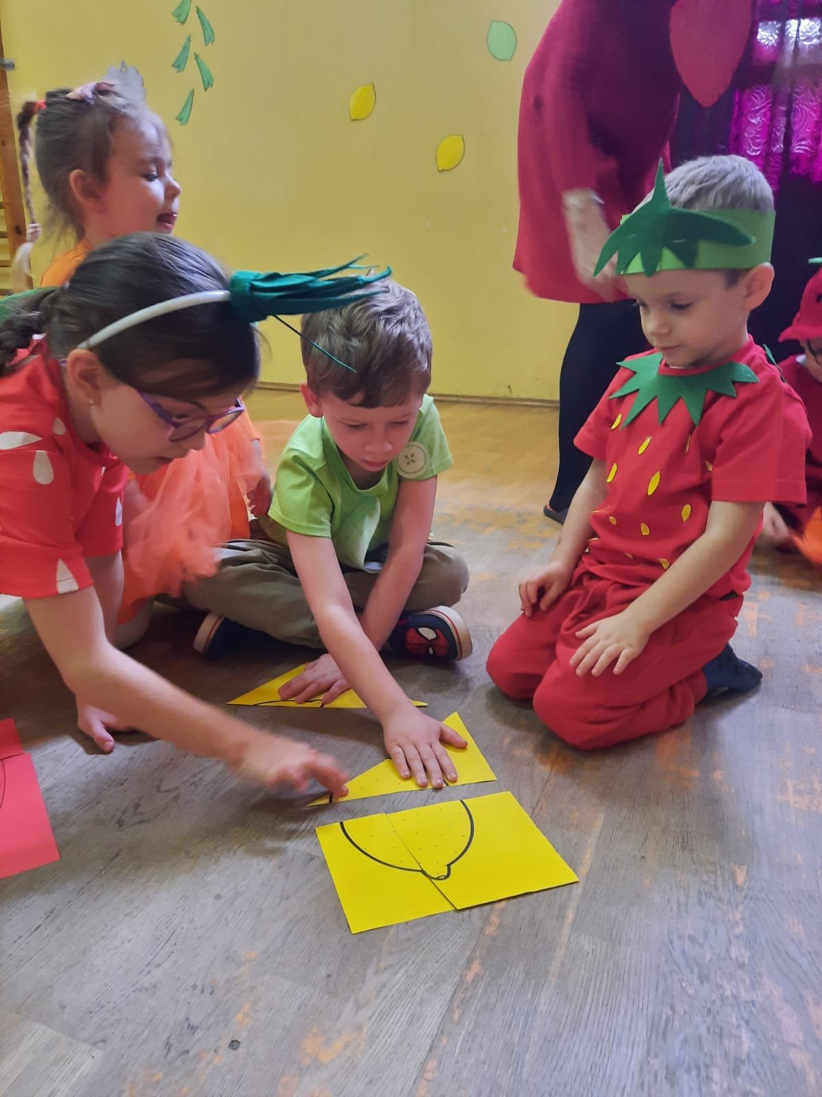 Tego dnia dzieci prezentowały się w owocowo-warzywnych strojach. W czasie balu przedszkolaki wysłuchały bajki „O księżniczce Zuzance i rycerzu Witaminku”. Wzięły udział w zabawach, konkursach sprawnościowych. Dzieci bawiły się i tańczyły przy znanych i lubianych piosenkach o tematyce warzywno-owocowej. Szczególną atrakcją dla dzieci okazały się owocowe szaszłyki, które wykonały samodzielnie. Było kolorowo,wesoło,smacznie i zdrowo.