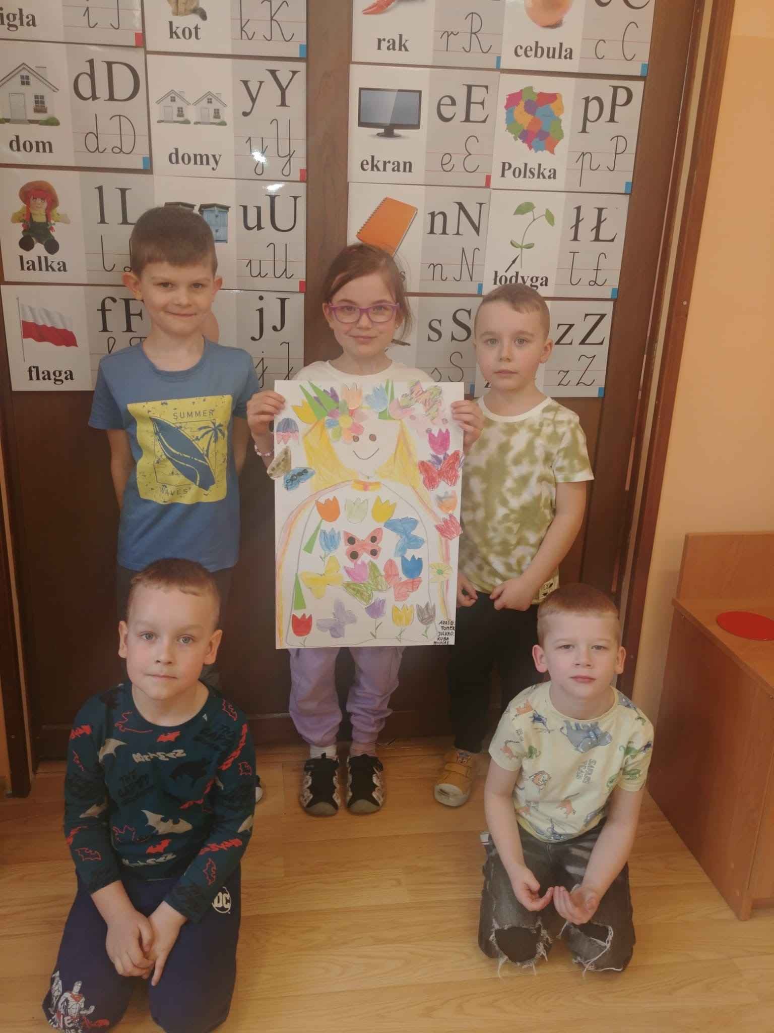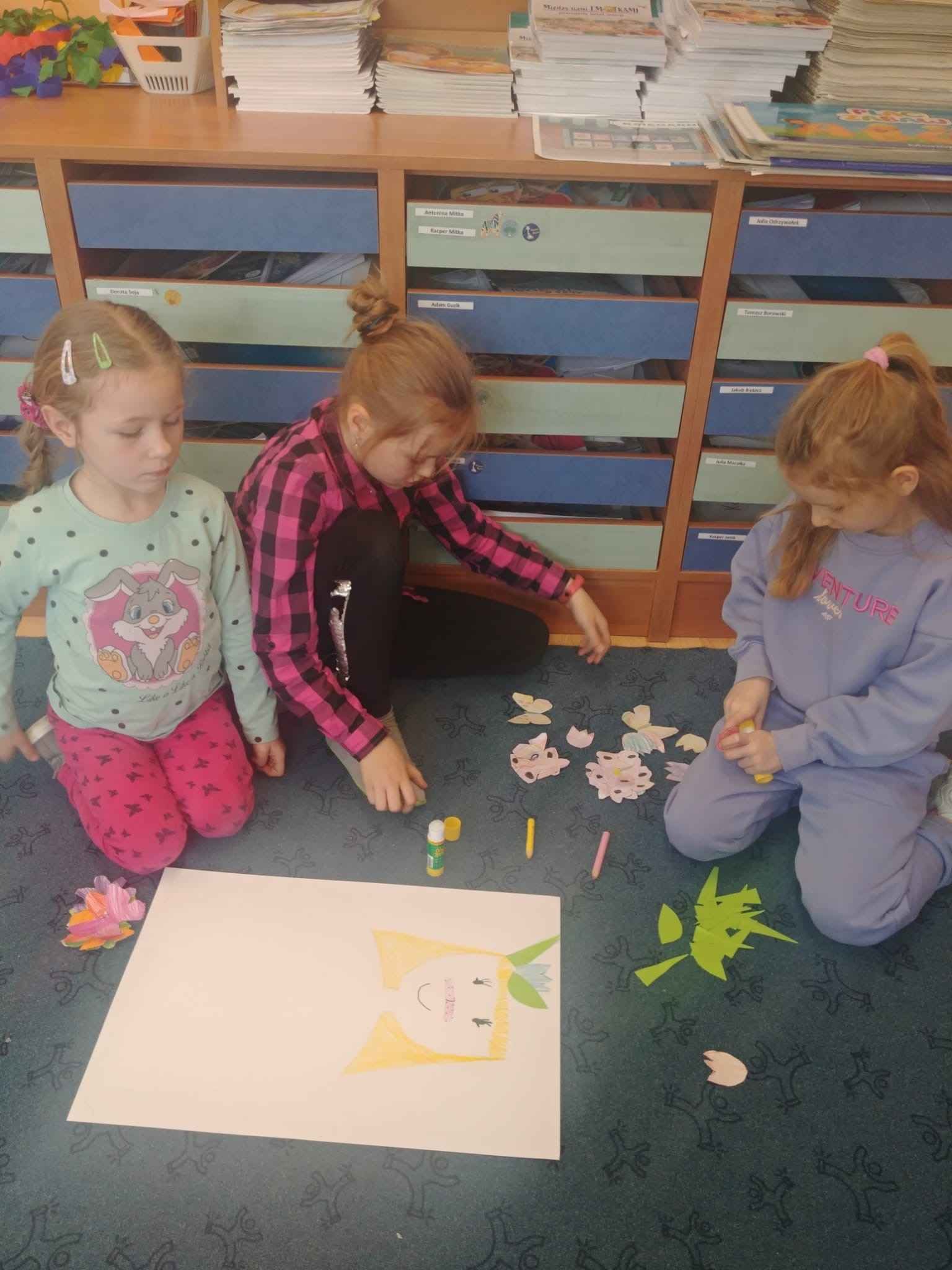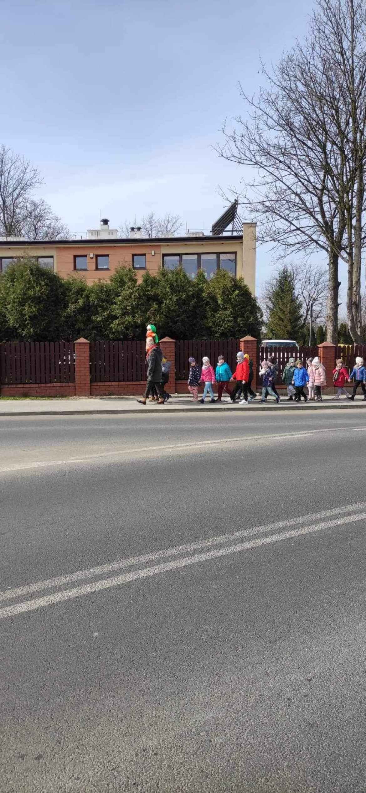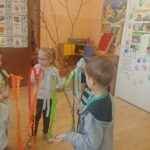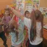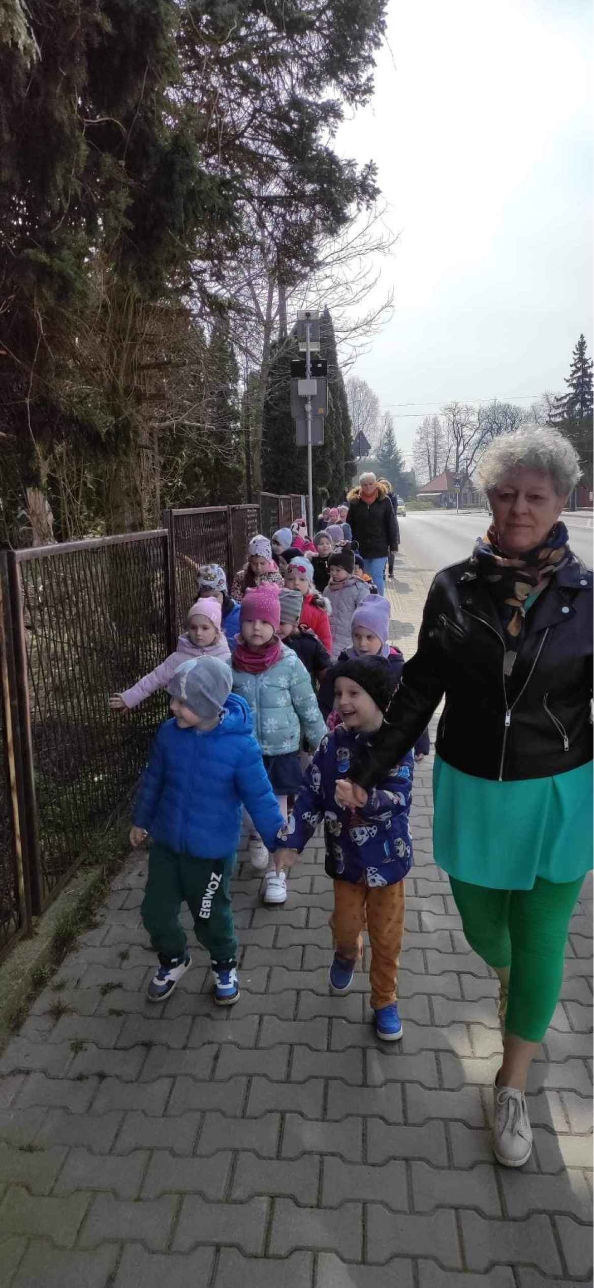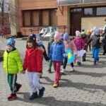 Przedszkolaki z Grojca przywitały Wiosnę wykonując jej portret- ozdabiały sylwetę wiosny elementami z kolorowego papieru. Zrobiły również „Gaik”- symbol wiosny, z którym przemaszerowały w okolicy przedszkola śpiewając wiosenne piosenki.