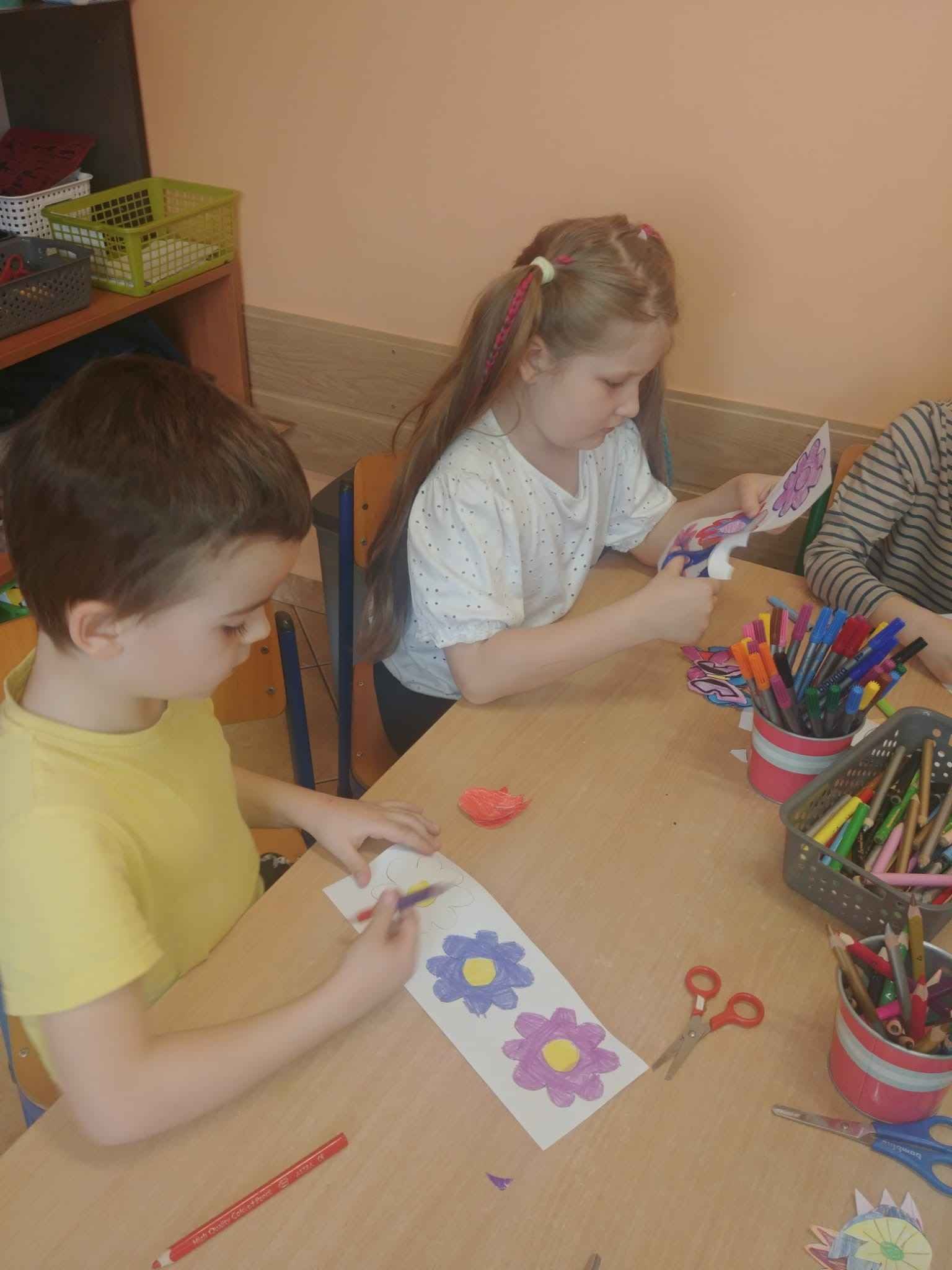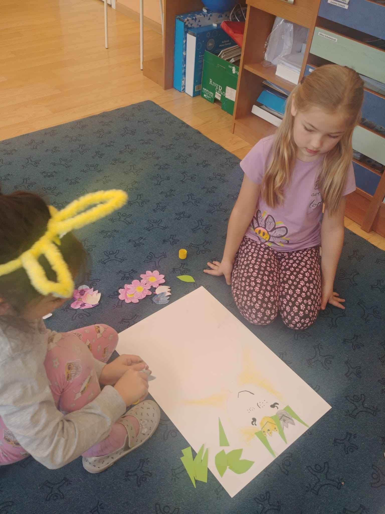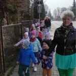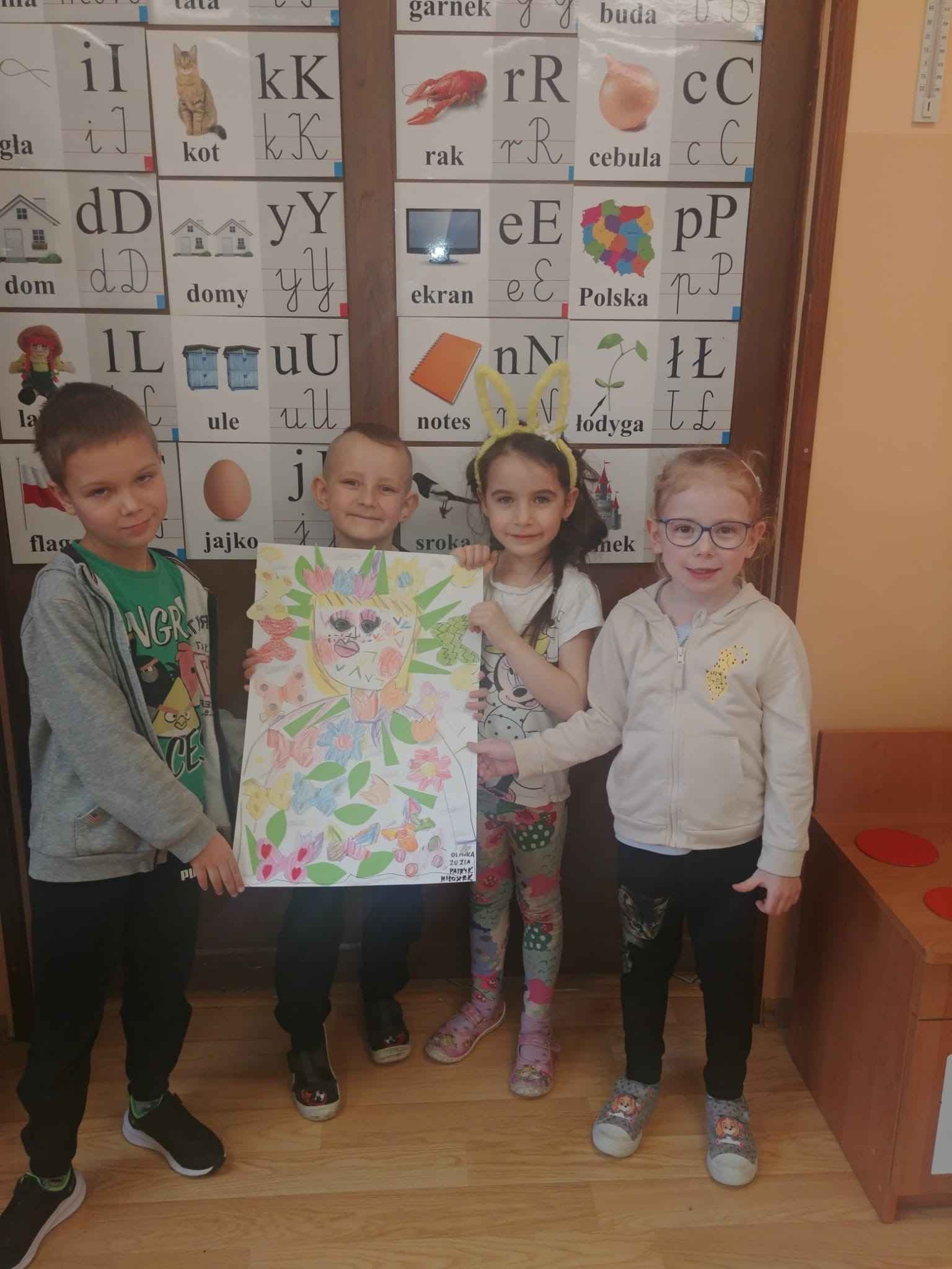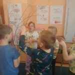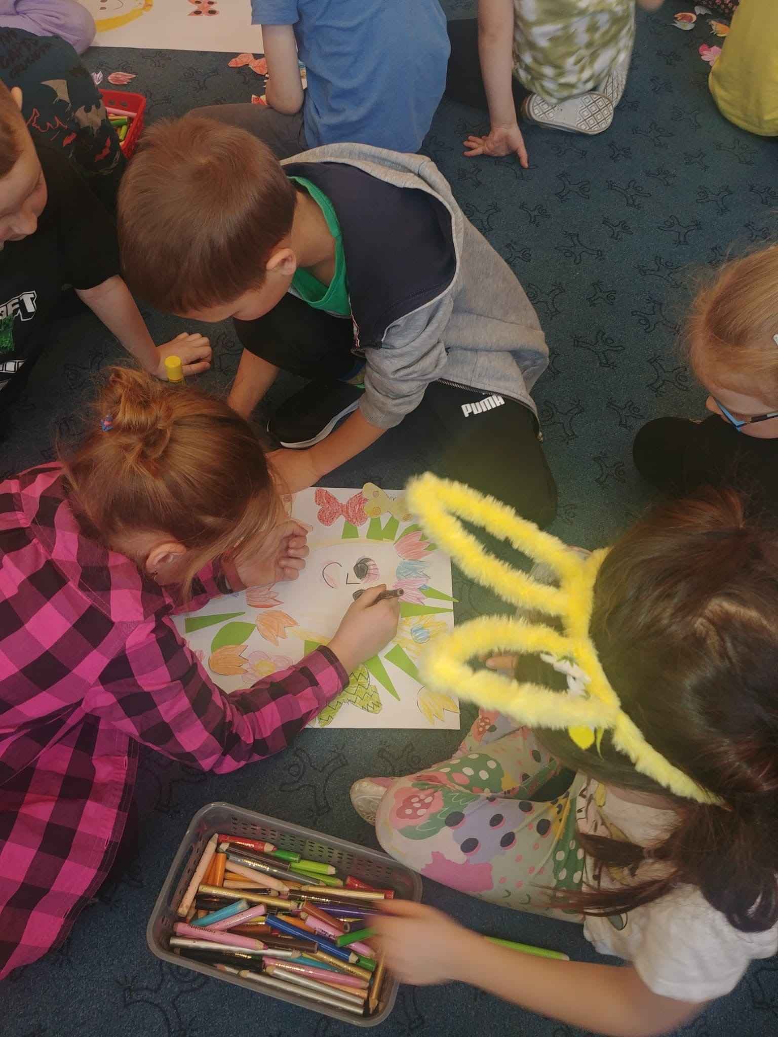 Przedszkolaki z Grojca przywitały Wiosnę wykonując jej portret- ozdabiały sylwetę wiosny elementami z kolorowego papieru. Zrobiły również „Gaik”- symbol wiosny, z którym przemaszerowały w okolicy przedszkola śpiewając wiosenne piosenki.