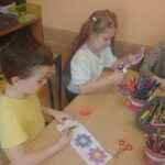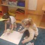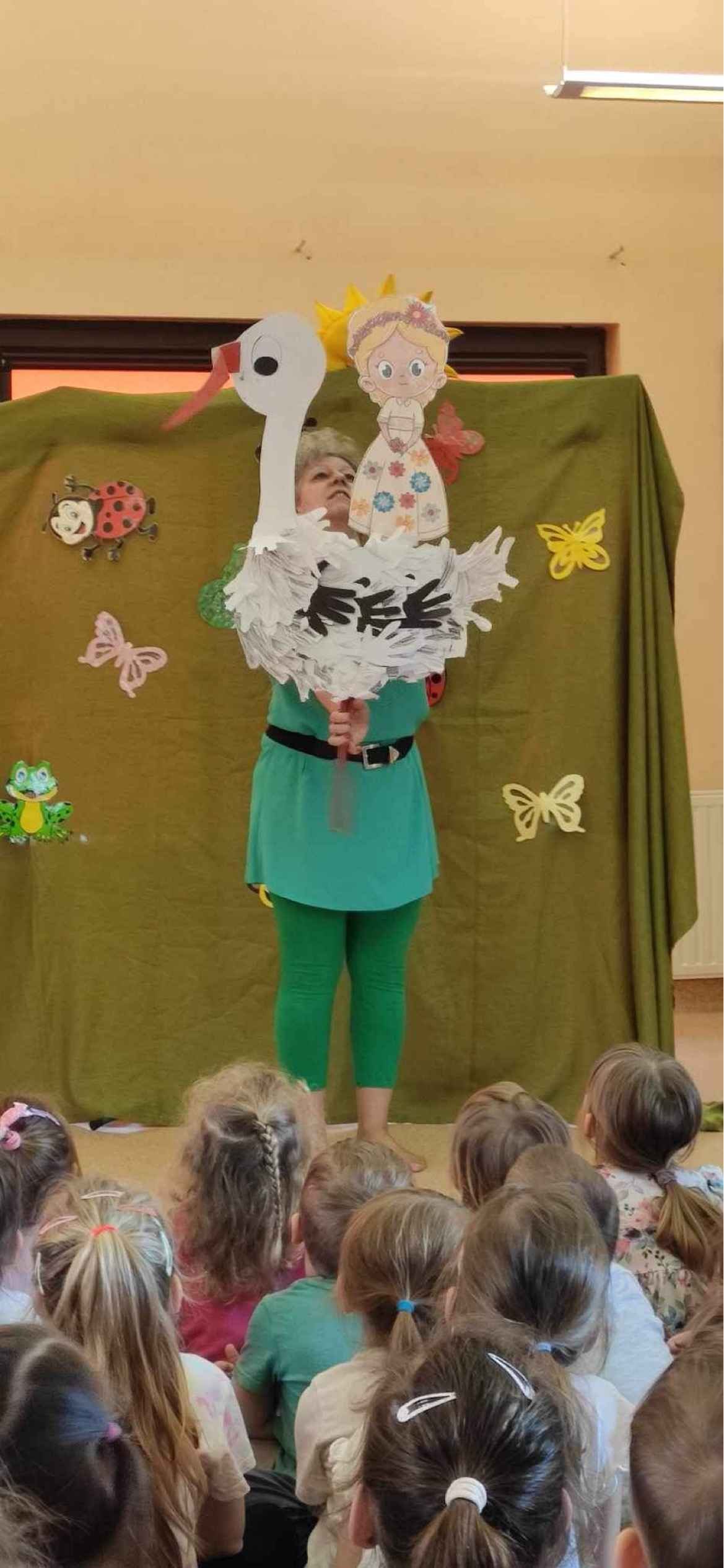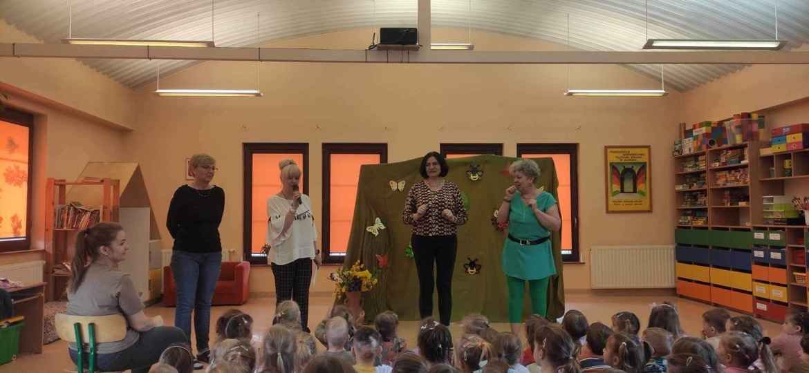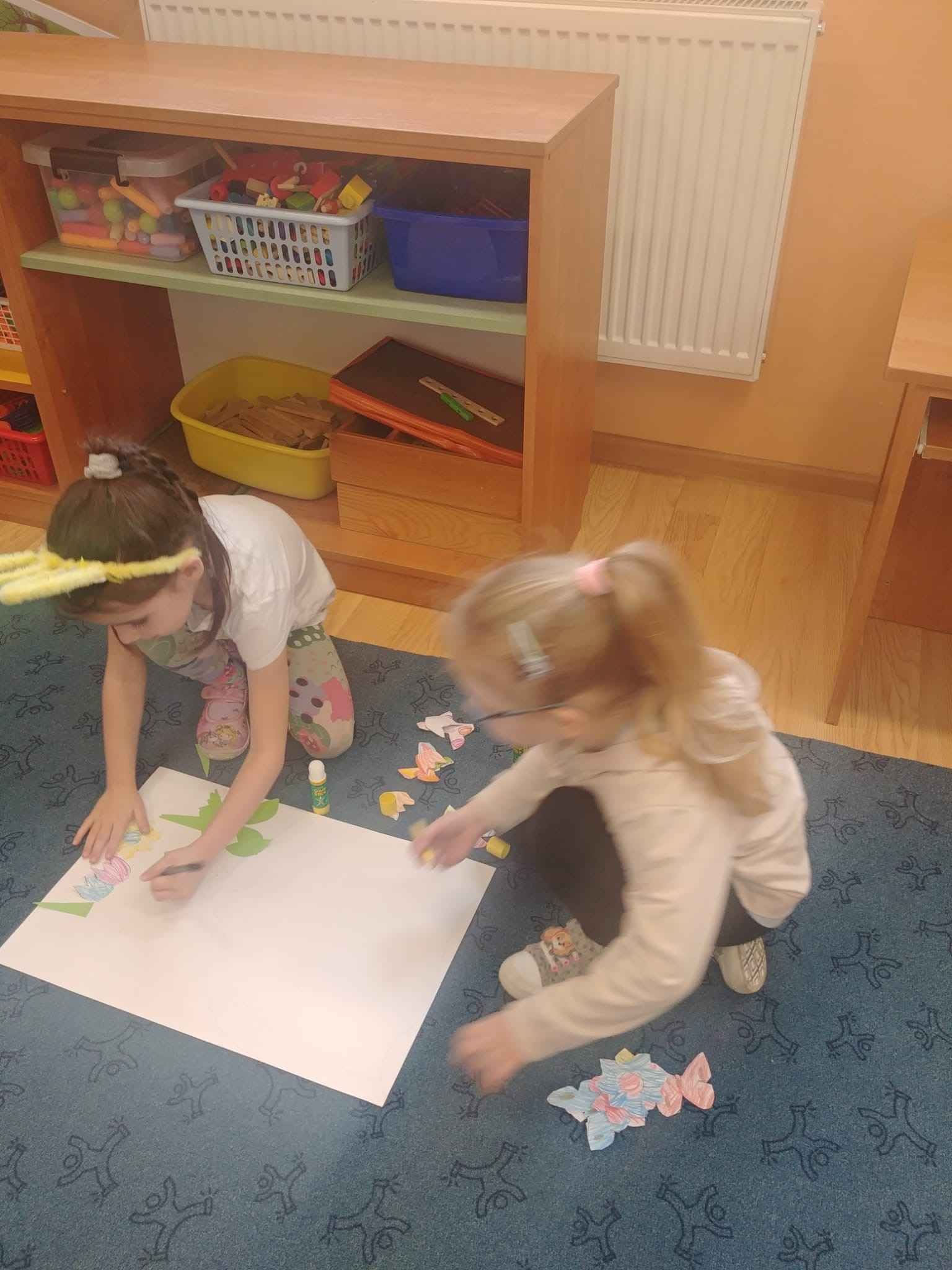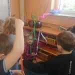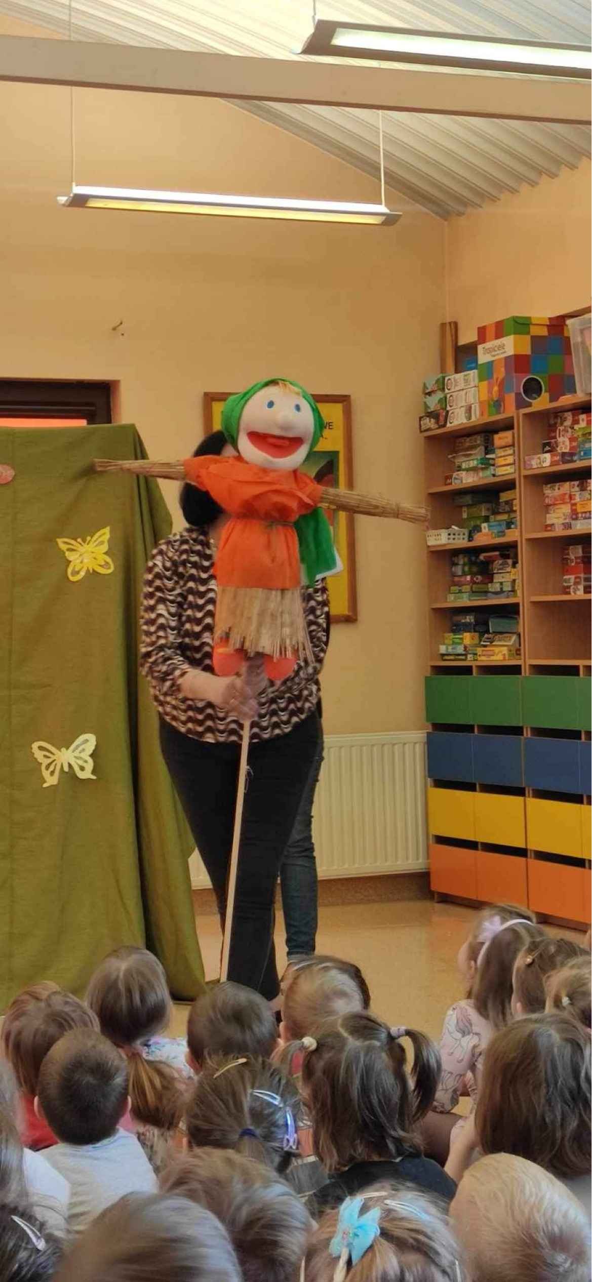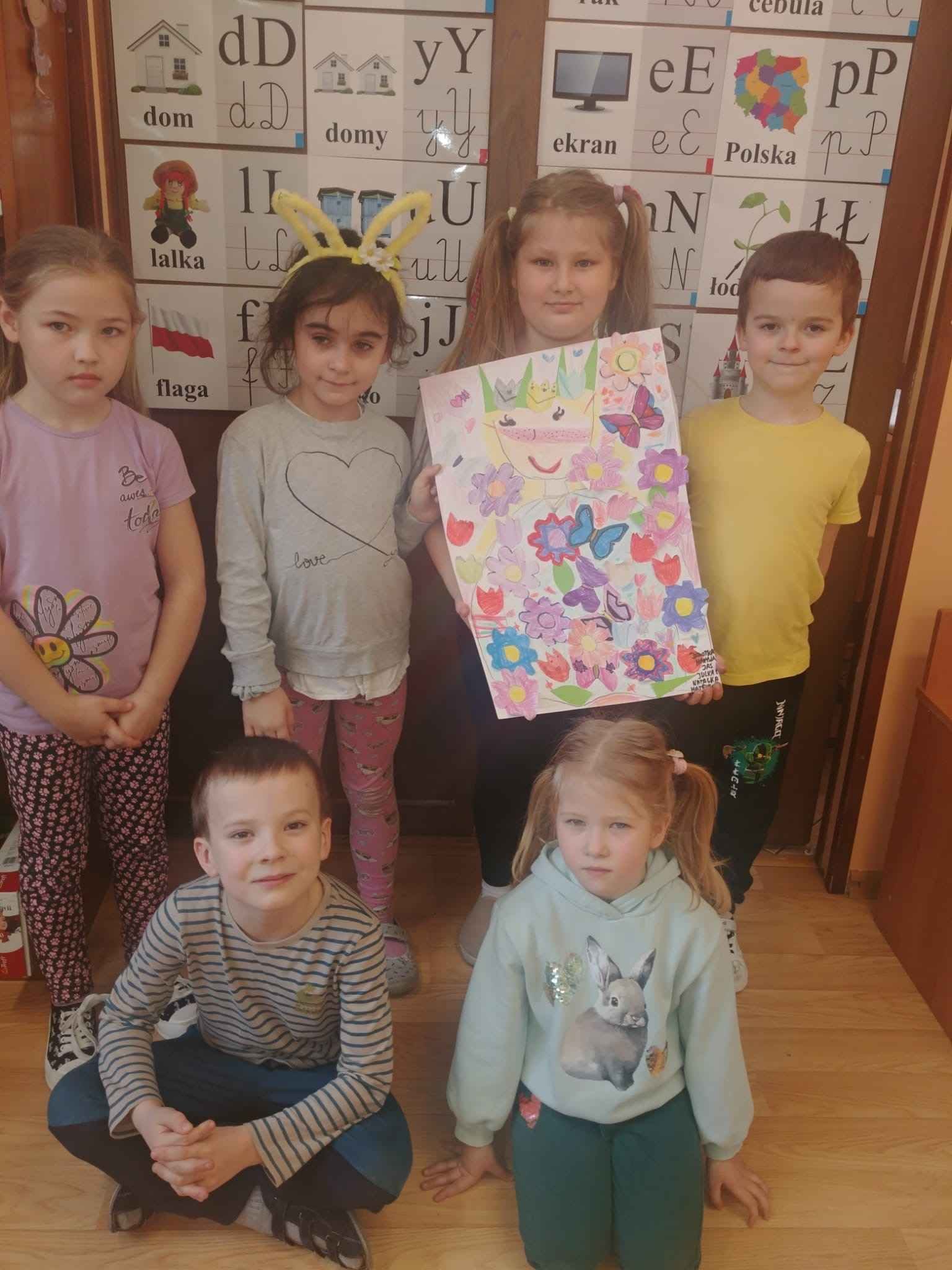Przedszkolaki z Grojca przywitały Wiosnę wykonując jej portret- ozdabiały sylwetę wiosny elementami z kolorowego papieru. Zrobiły również „Gaik”- symbol wiosny, z którym przemaszerowały w okolicy przedszkola śpiewając wiosenne piosenki.
