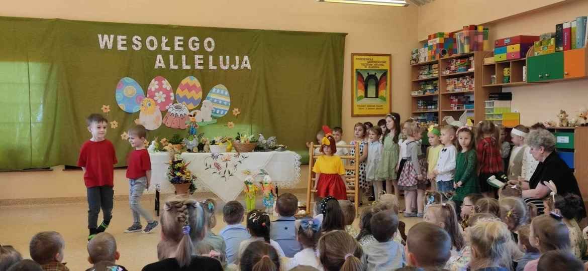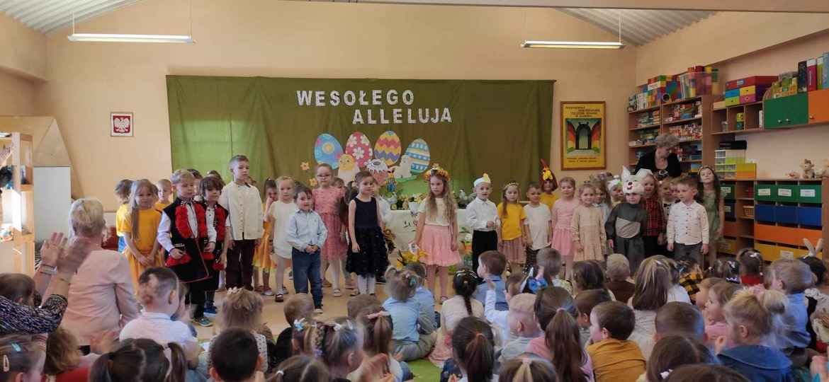 Spotkanie wielkanocne Posted on: 27 marca 2024 by: AW Tradycyjnie w naszym przedszkolu miało miejsce spotkanie świąteczne z okazji Wielkanocy. Grupa III i IV zaprezentowały program artystyczny pt. „Wielkanoc”. Wszyscy składali sobie życzenia i podzielili się tradycyjnym jajeczkiem.