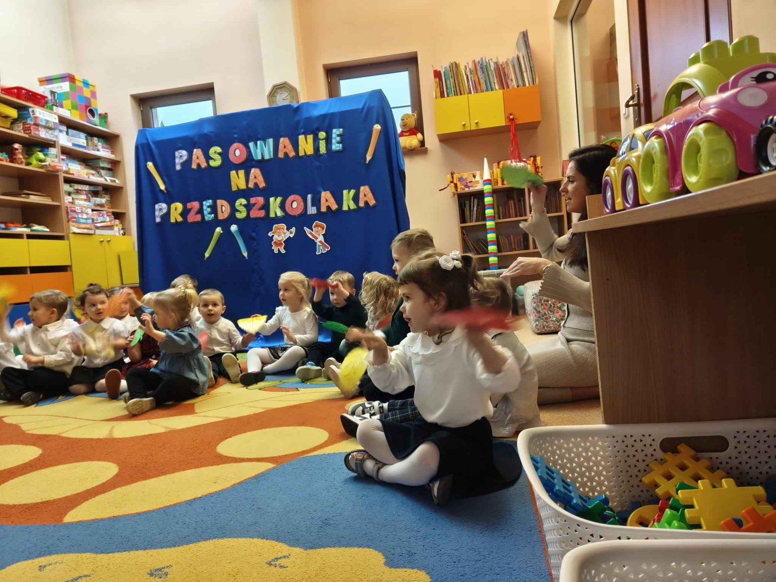 Pasowanie na przedszkolaka Posted on: 12 grudnia 2024 by: AW W dniu 11.12.2024 odbyło się uroczyste pasowanie na przedszkolaka w grupie 3-latków. Po krótkim programie artystycznym Pani Dyrektor przyjęła dzieci do grona przedszkolaków.