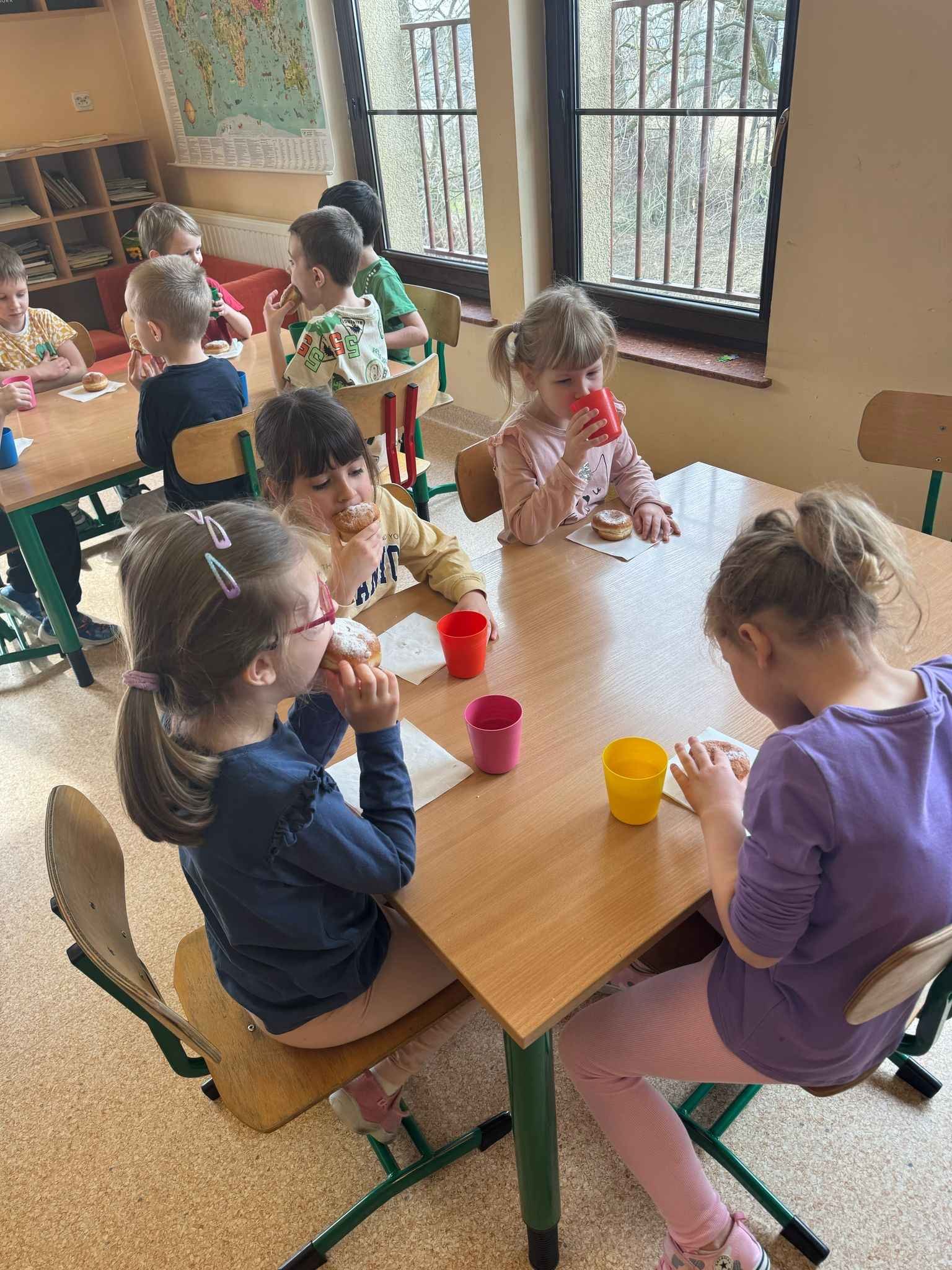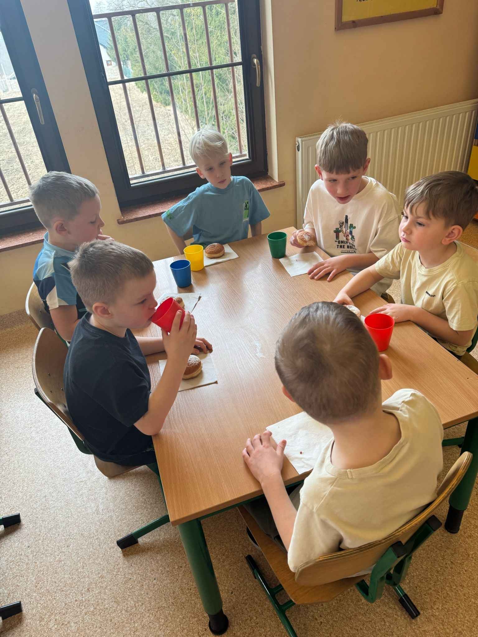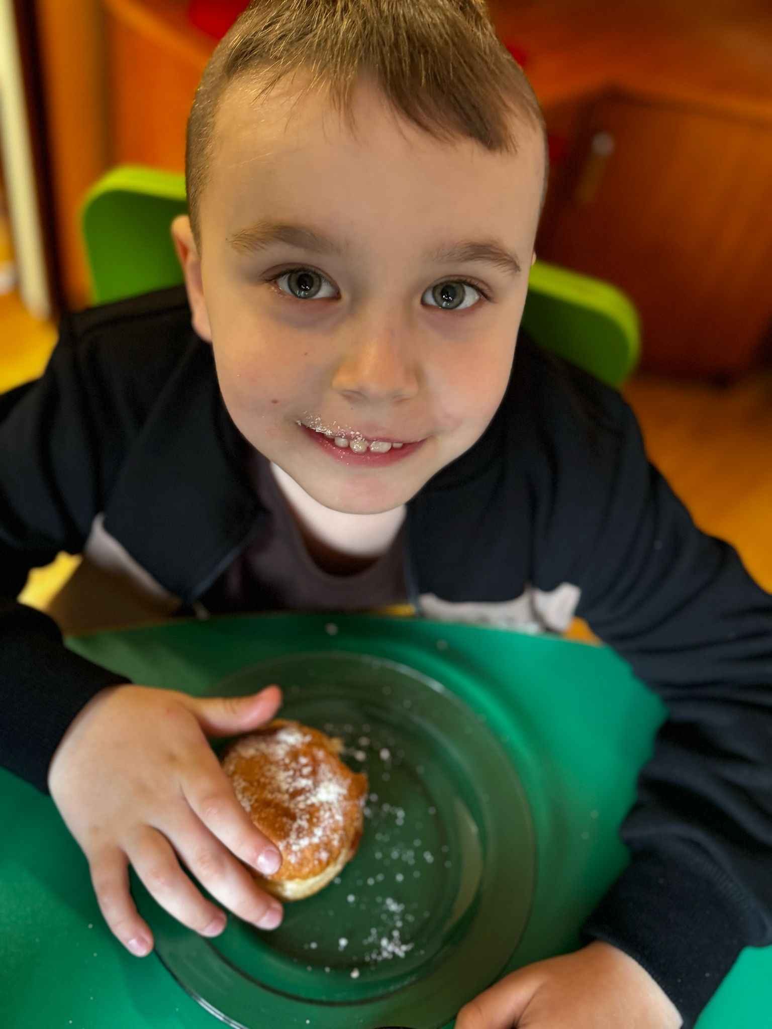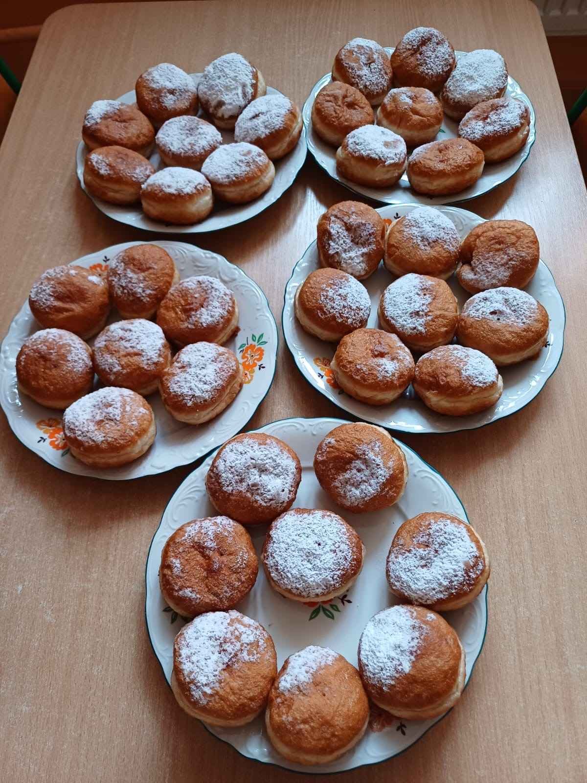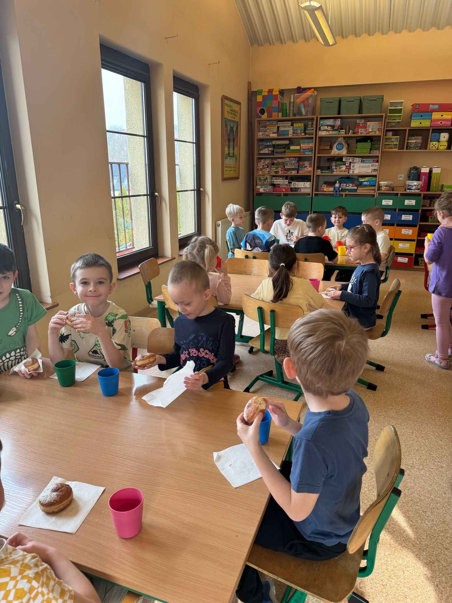 Tłusty czwartek Posted on: 27 lutego 2025 by: AW „Powiedział nam Bartek , że dziś Tłusty Czwartek, a Bartkowa uwierzyła, pysznych pączków nasmażyła…”. Jak przystało na tak wesołe i słodkie święto, ze smakiem zabraliśmy się do konsumpcji pysznych pączków. Ach jak smakowały…palce lizać!
