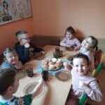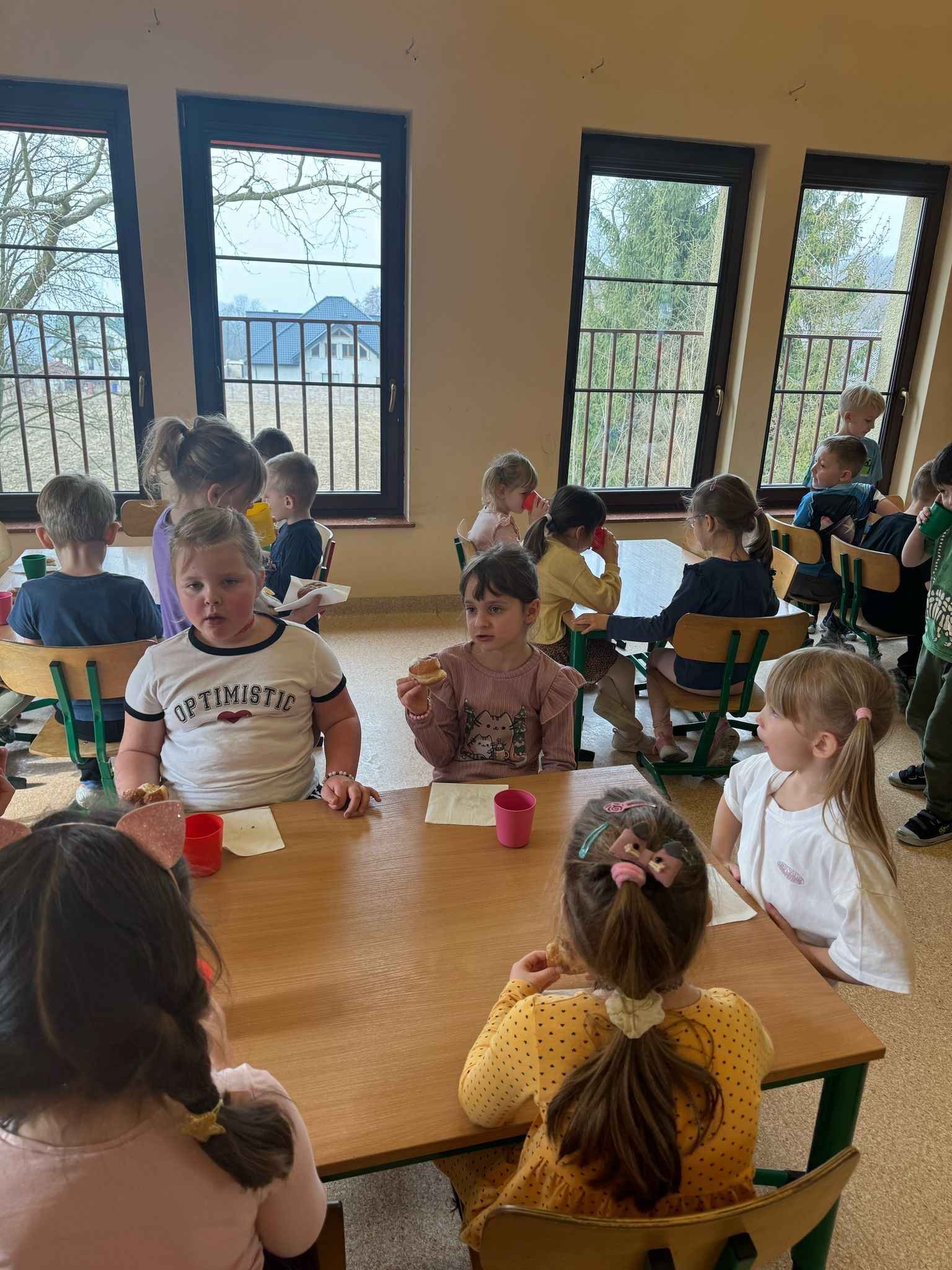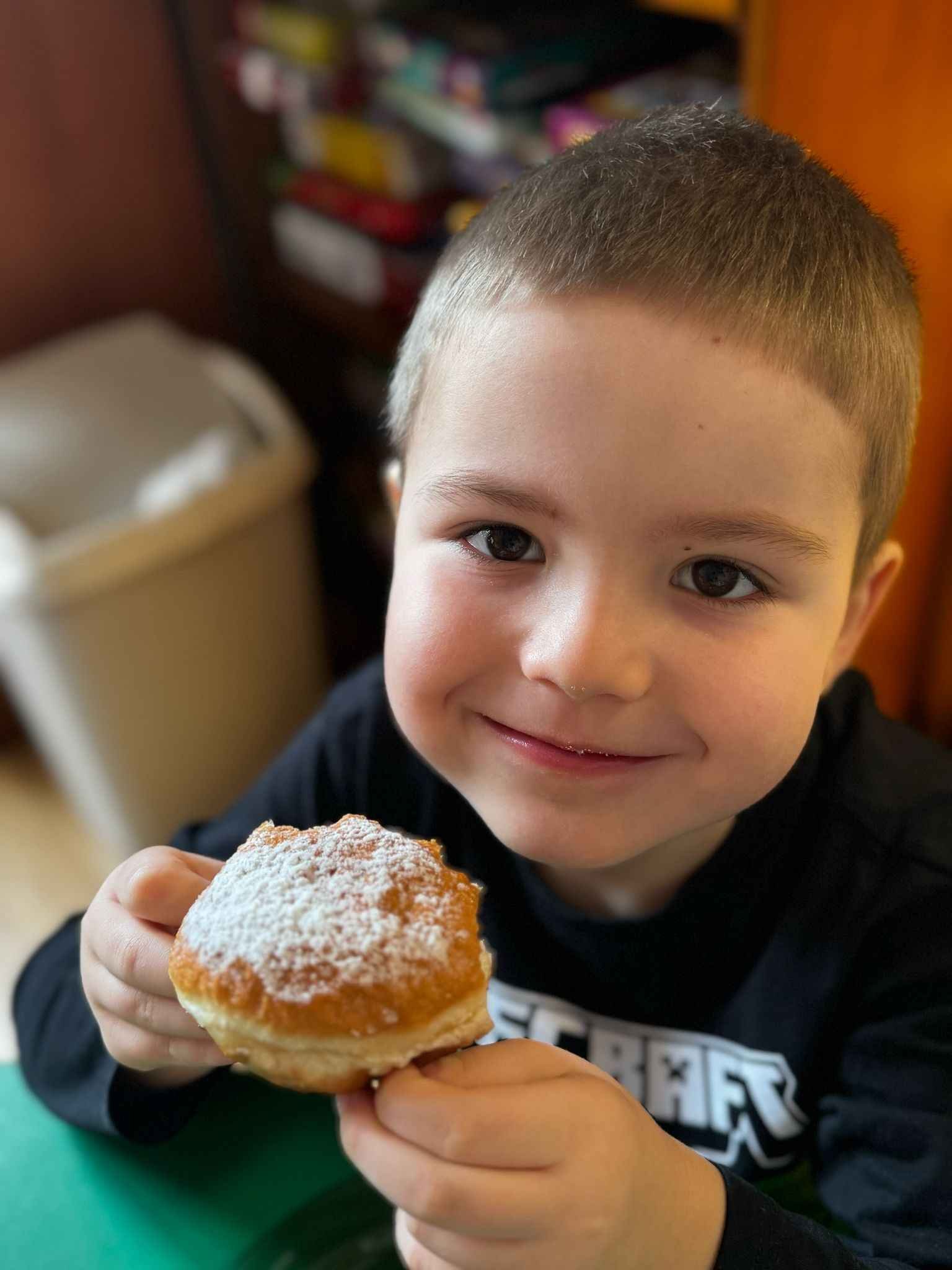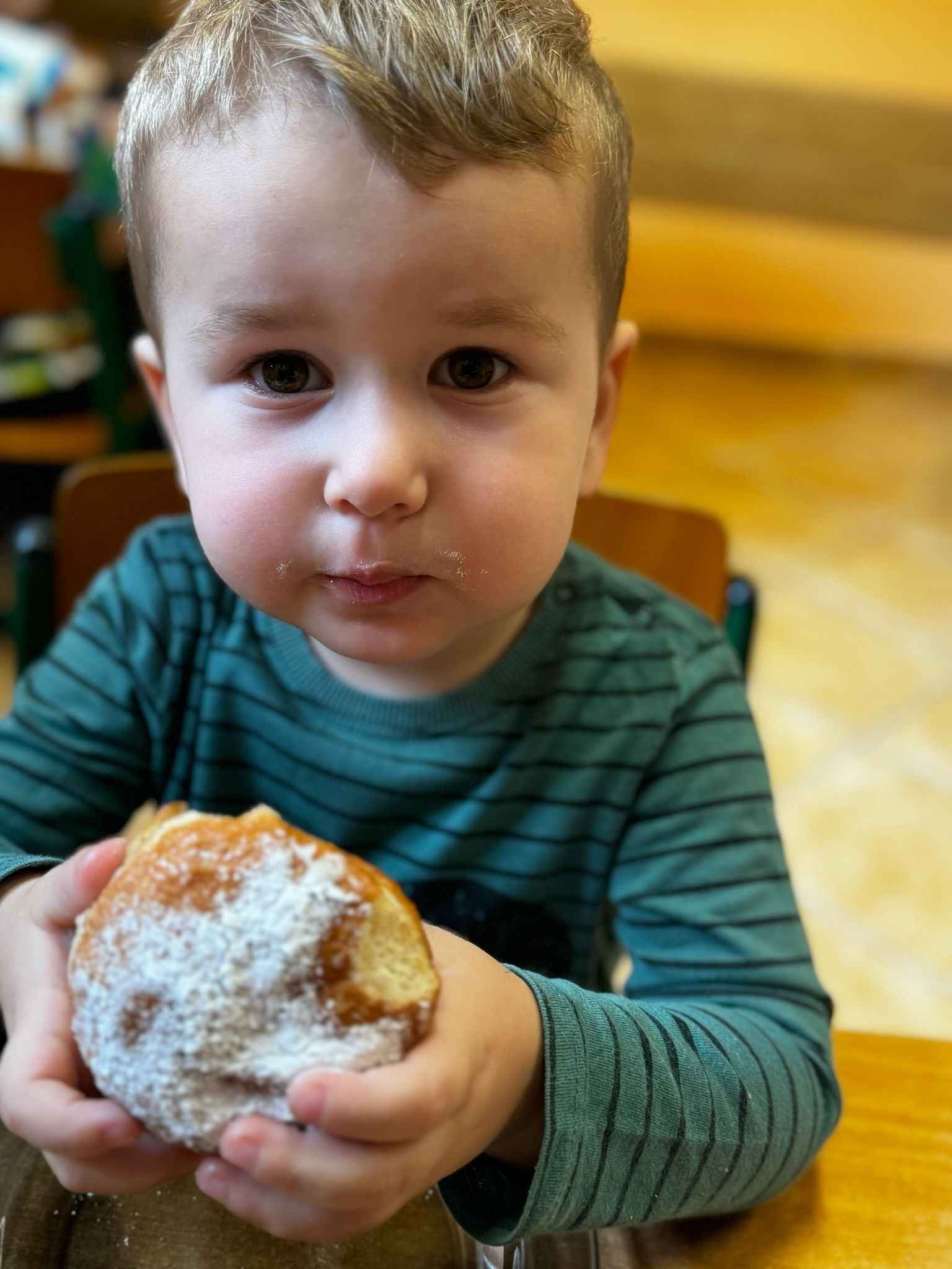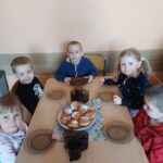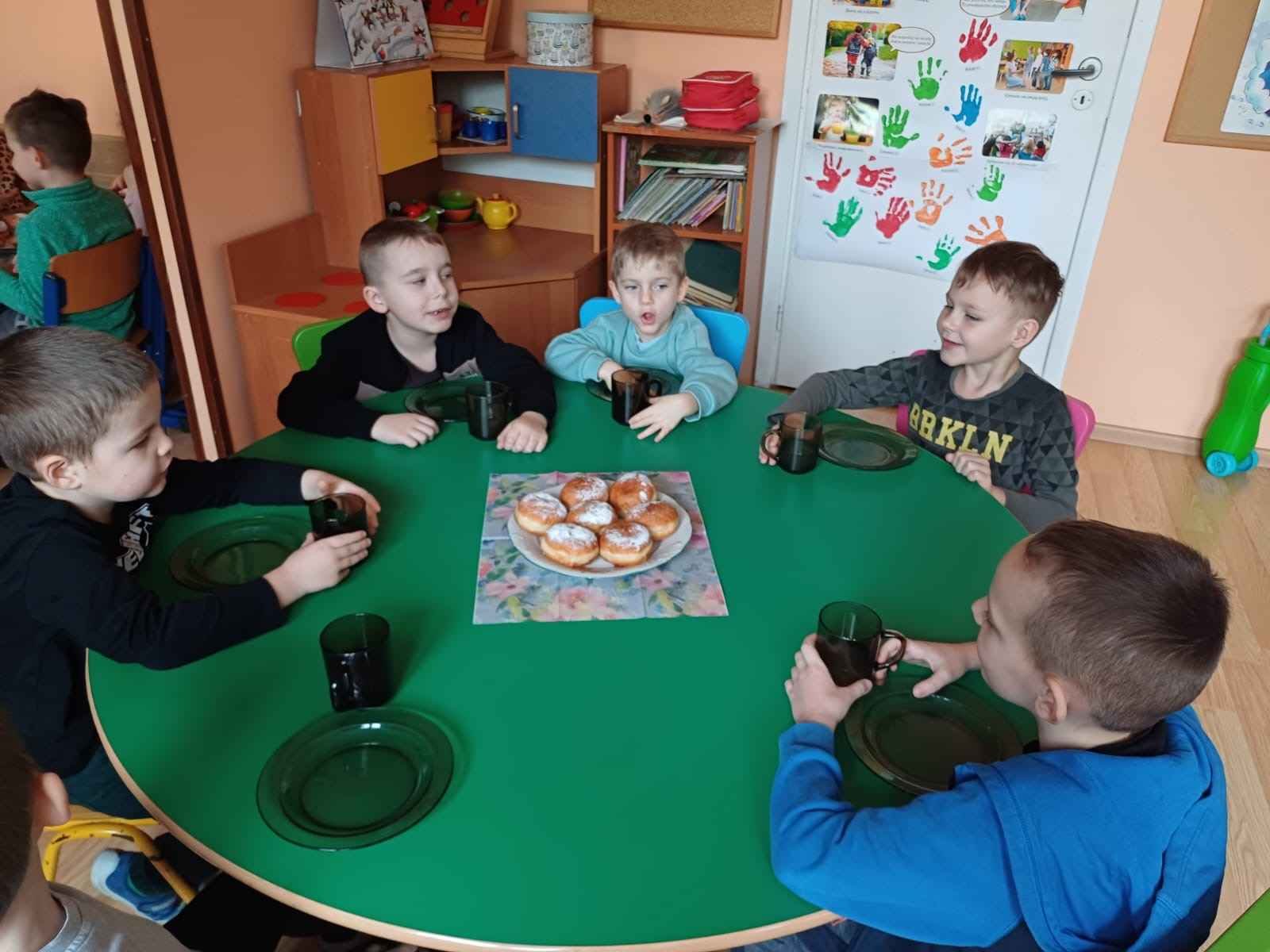 Tłusty czwartek Posted on: 27 lutego 2025 by: AW „Powiedział nam Bartek , że dziś Tłusty Czwartek, a Bartkowa uwierzyła, pysznych pączków nasmażyła…”. Jak przystało na tak wesołe i słodkie święto, ze smakiem zabraliśmy się do konsumpcji pysznych pączków. Ach jak smakowały…palce lizać!