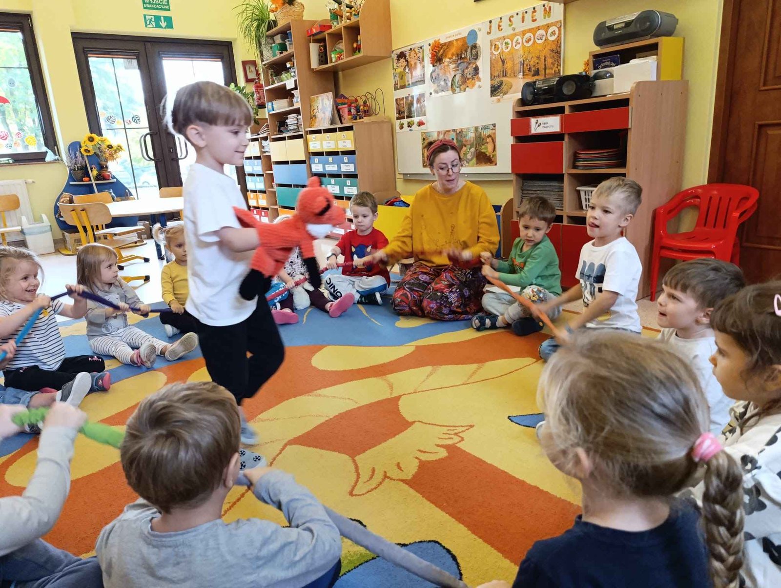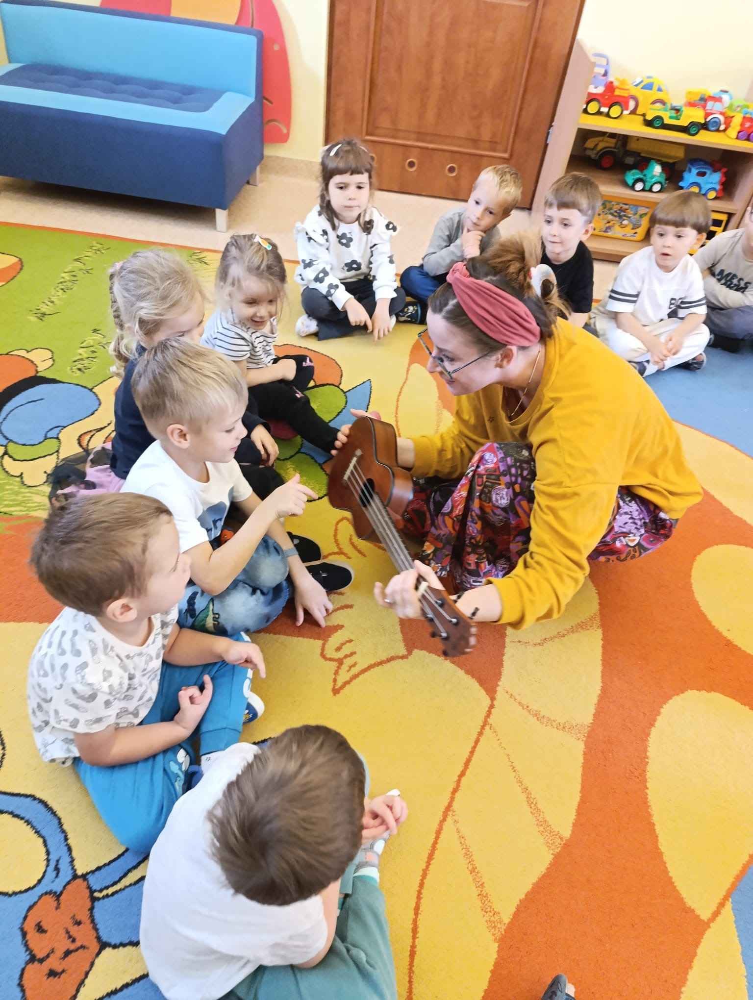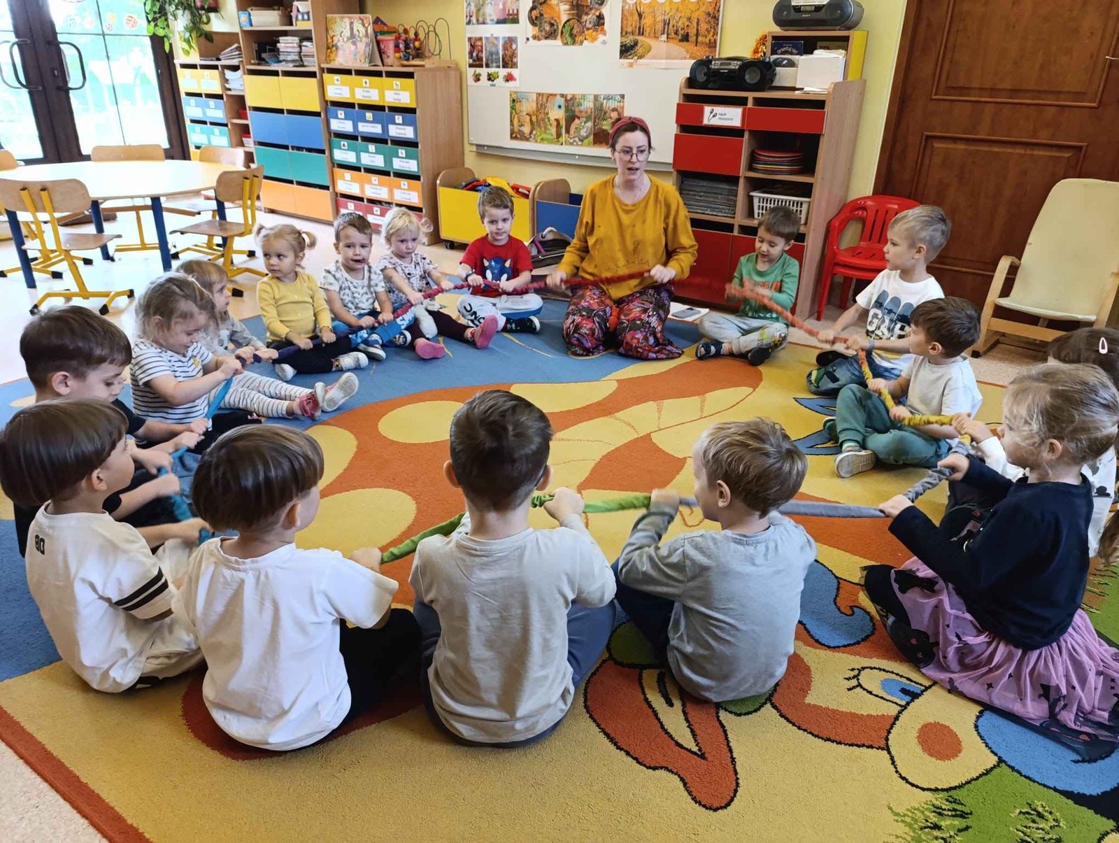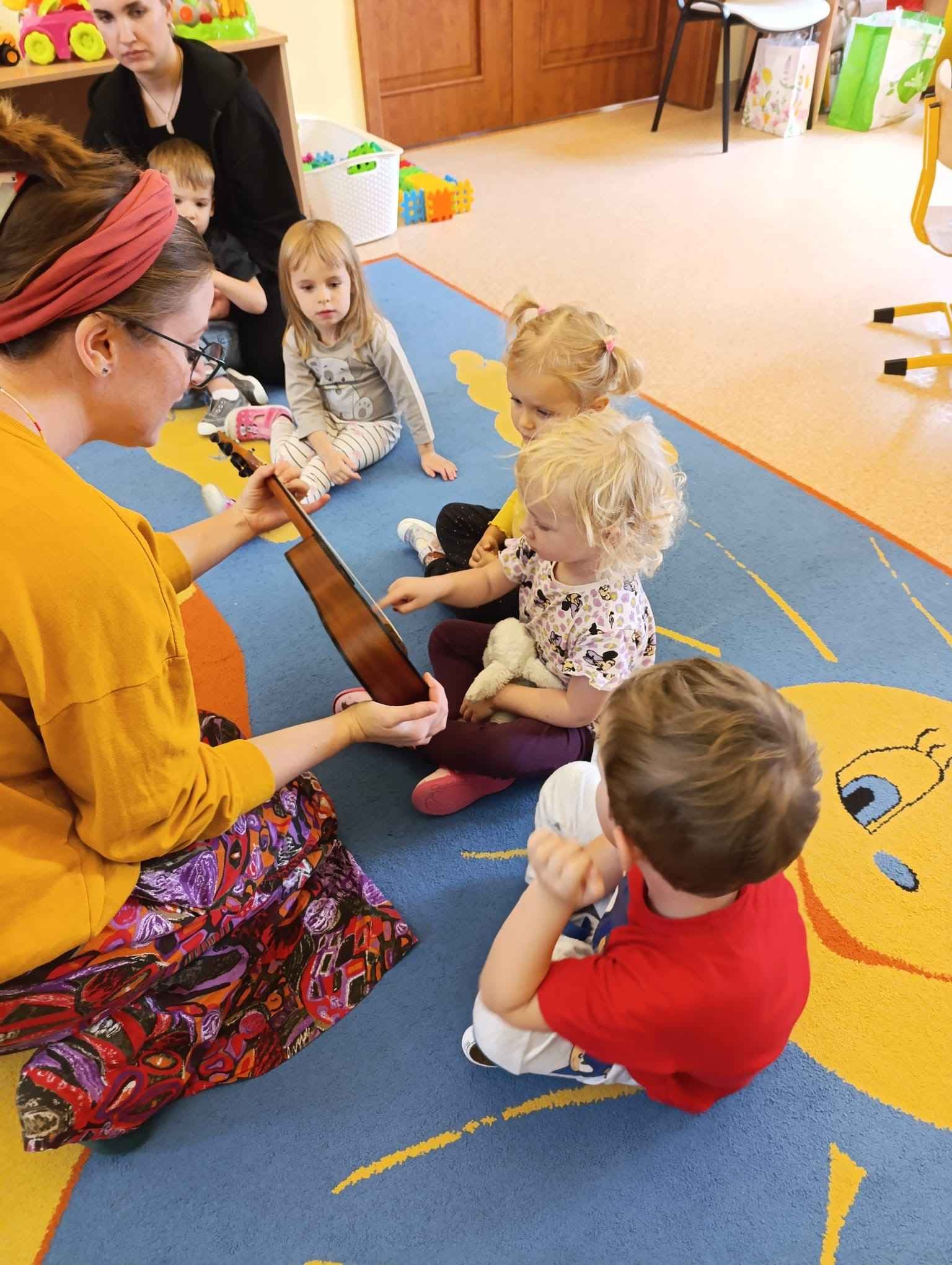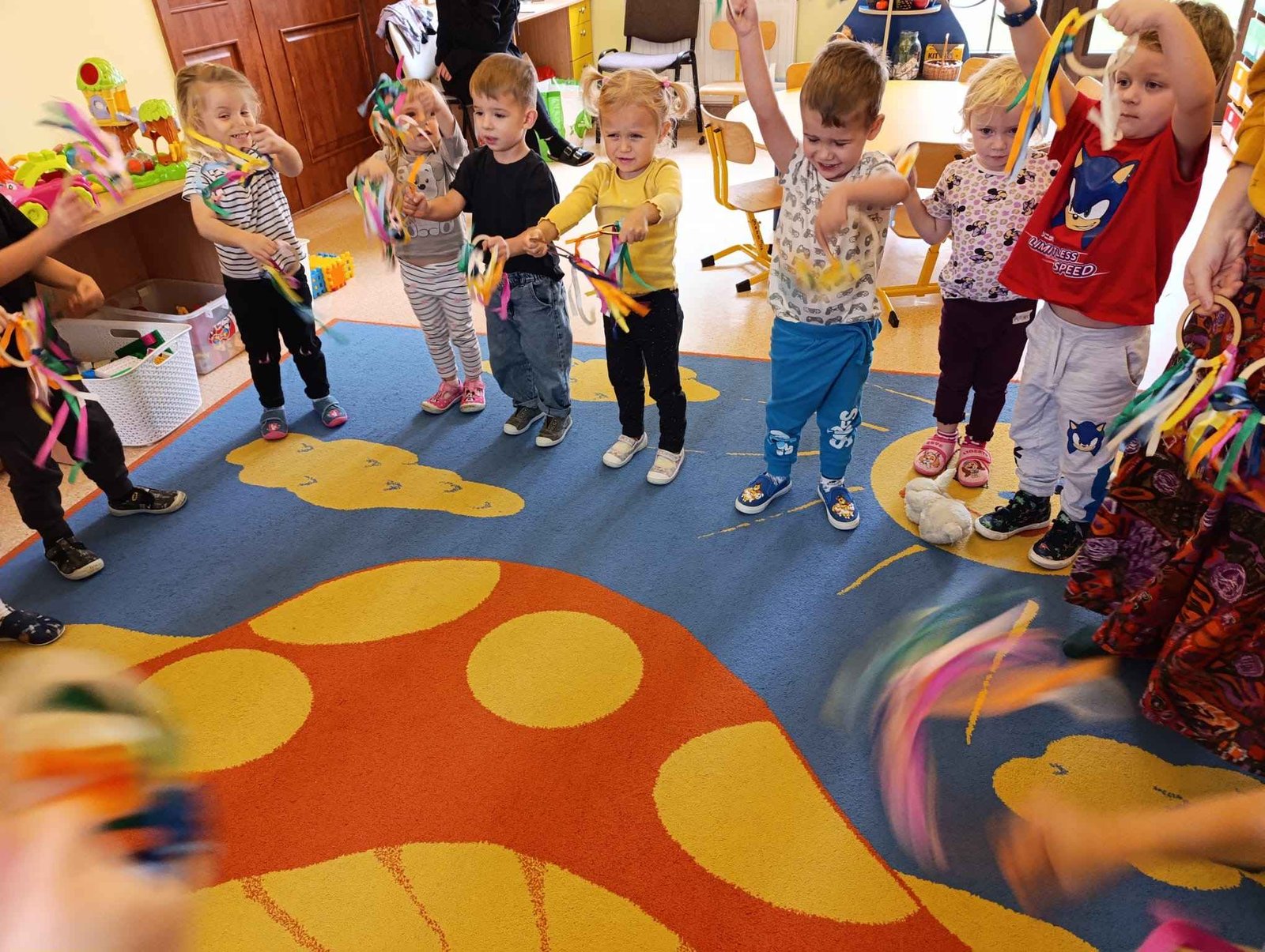 Podczas spotkania dzieci miały okazję rozwijać swoją wrażliwość muzyczną poprzez śpiew, mowę rytmiczną oraz różnorodne zabawy muzyczne.