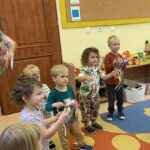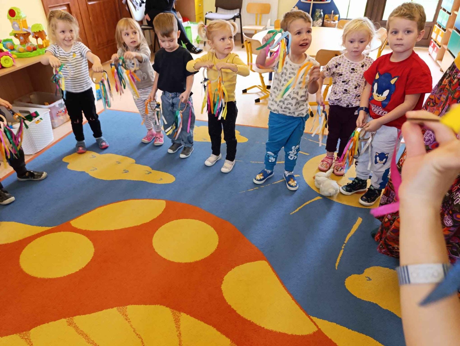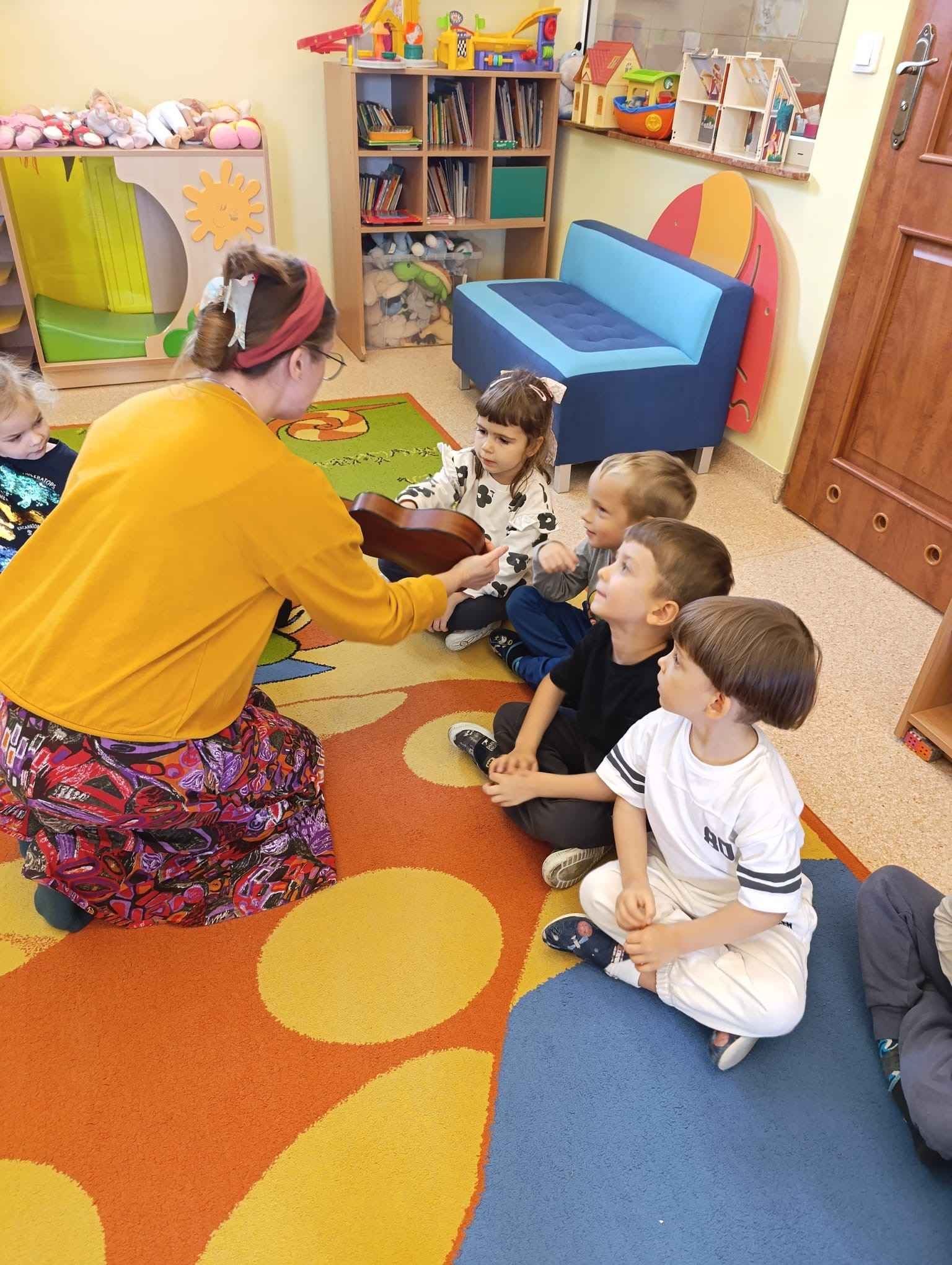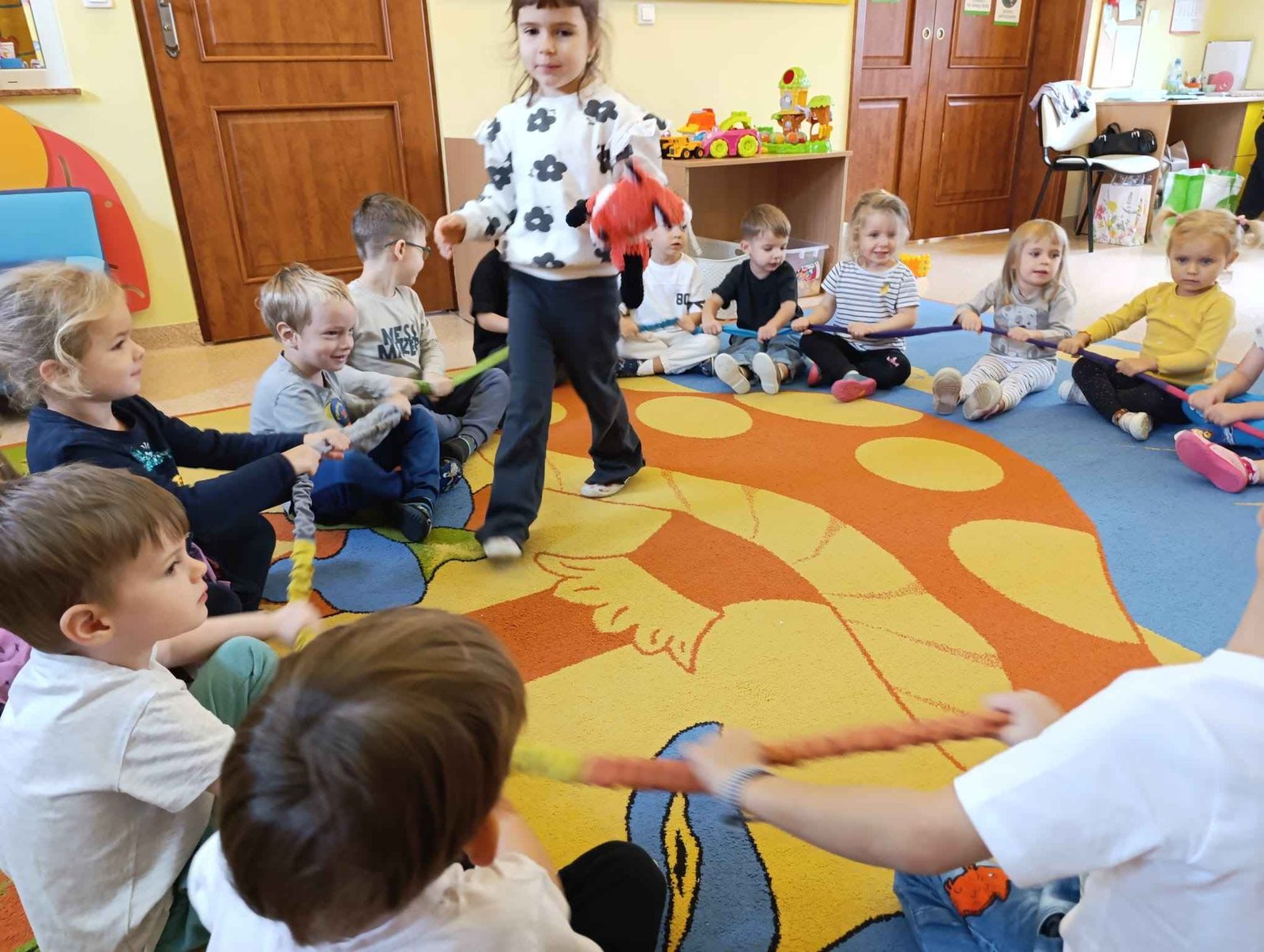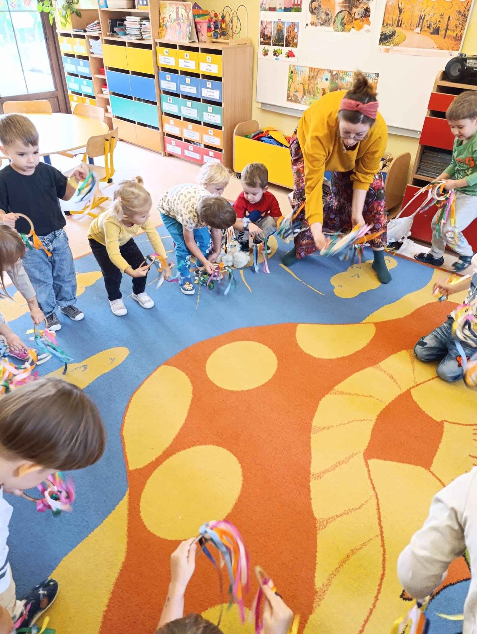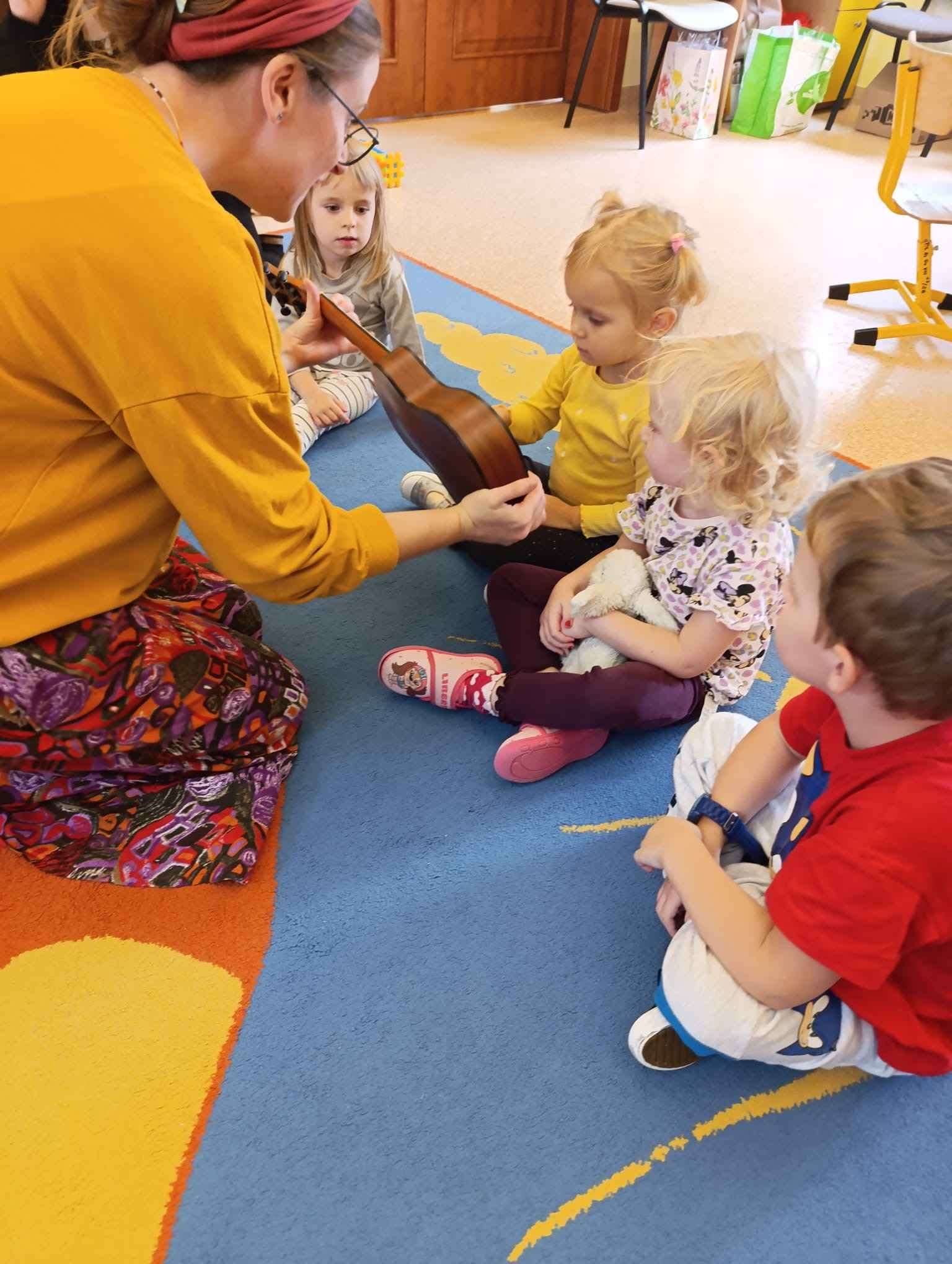 Podczas spotkania dzieci miały okazję rozwijać swoją wrażliwość muzyczną poprzez śpiew, mowę rytmiczną oraz różnorodne zabawy muzyczne.