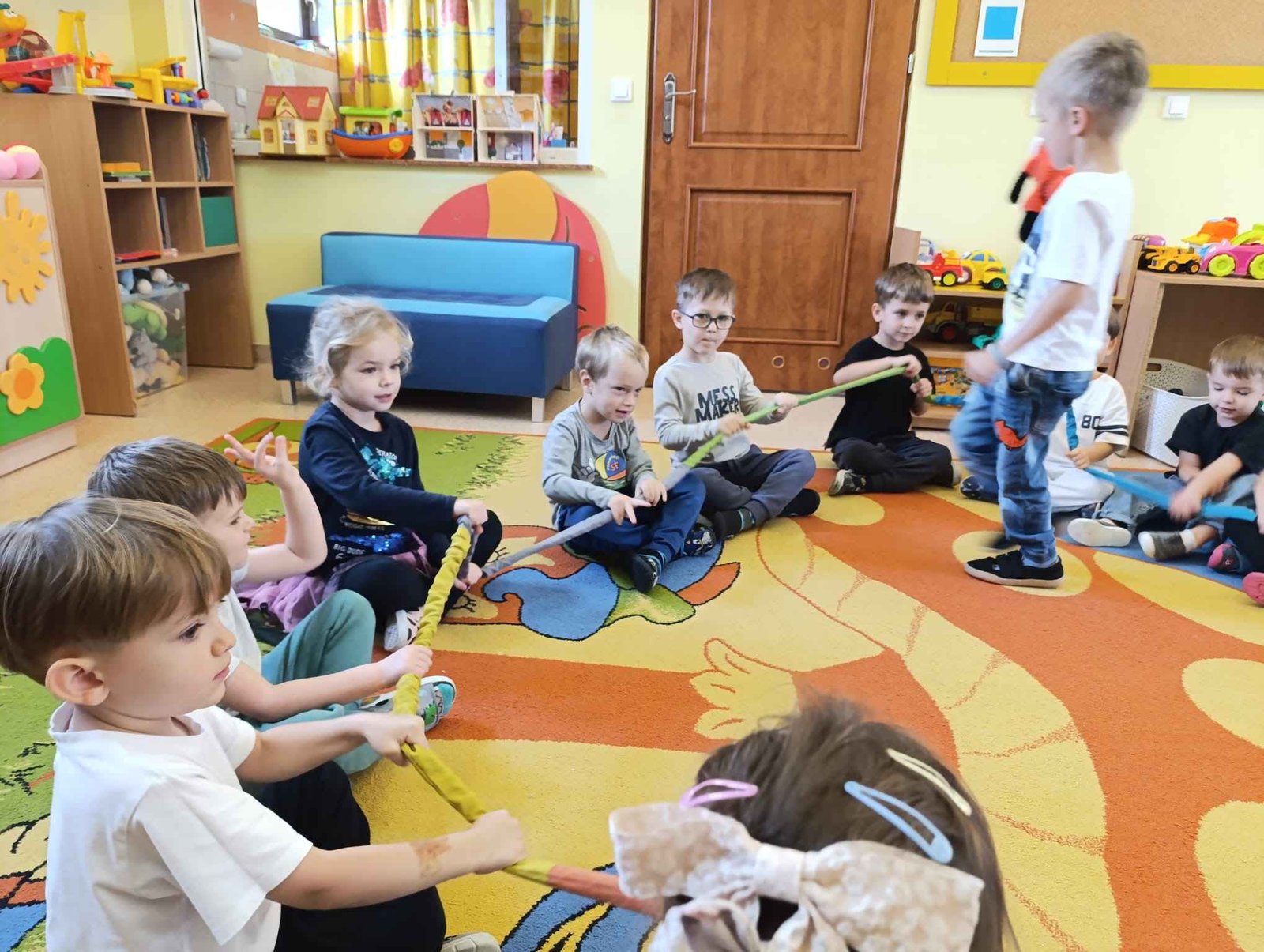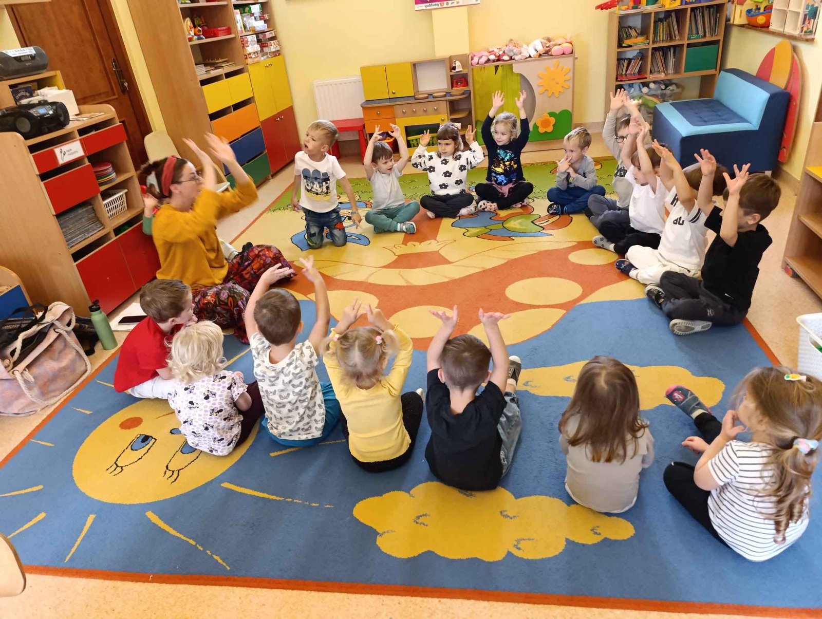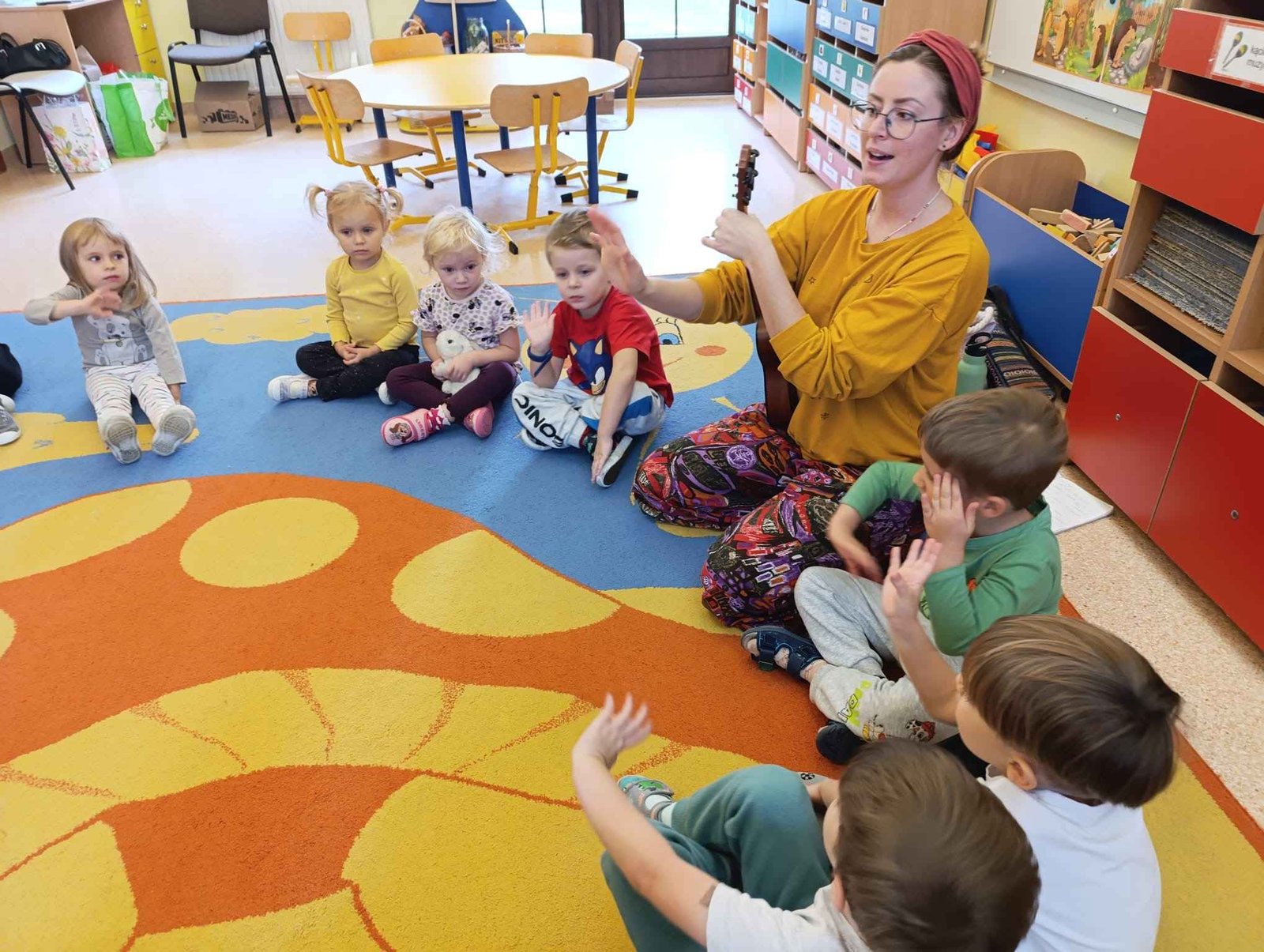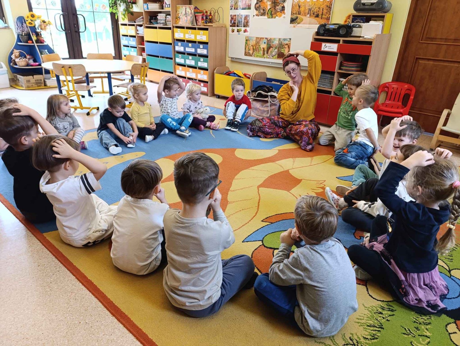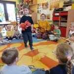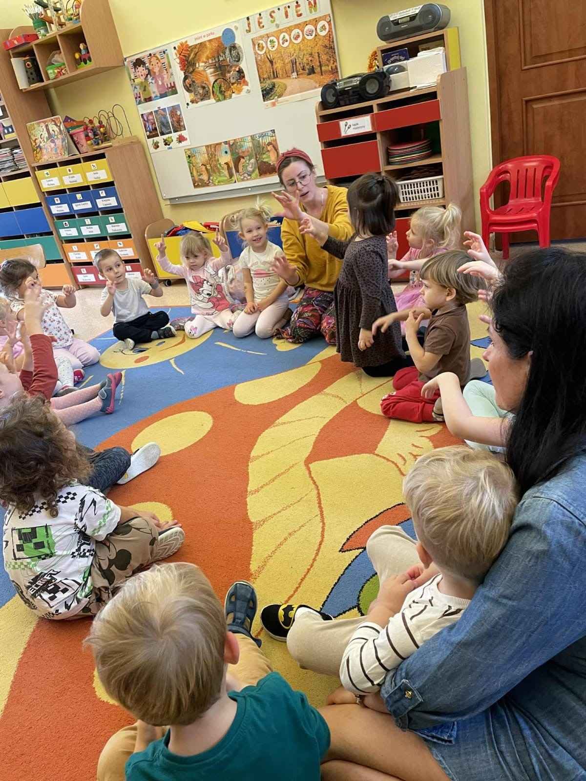 Podczas spotkania dzieci miały okazję rozwijać swoją wrażliwość muzyczną poprzez śpiew, mowę rytmiczną oraz różnorodne zabawy muzyczne.