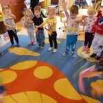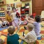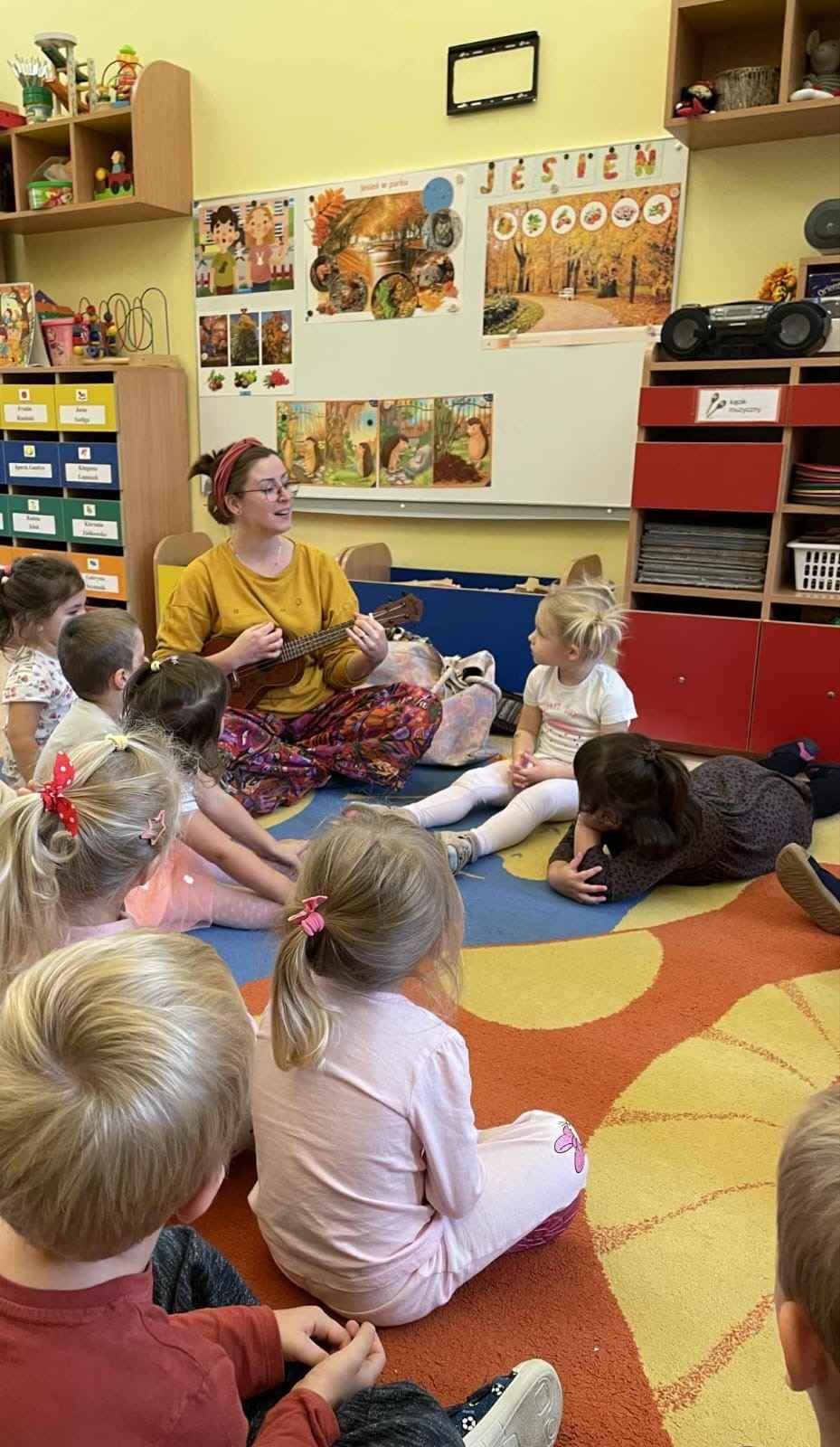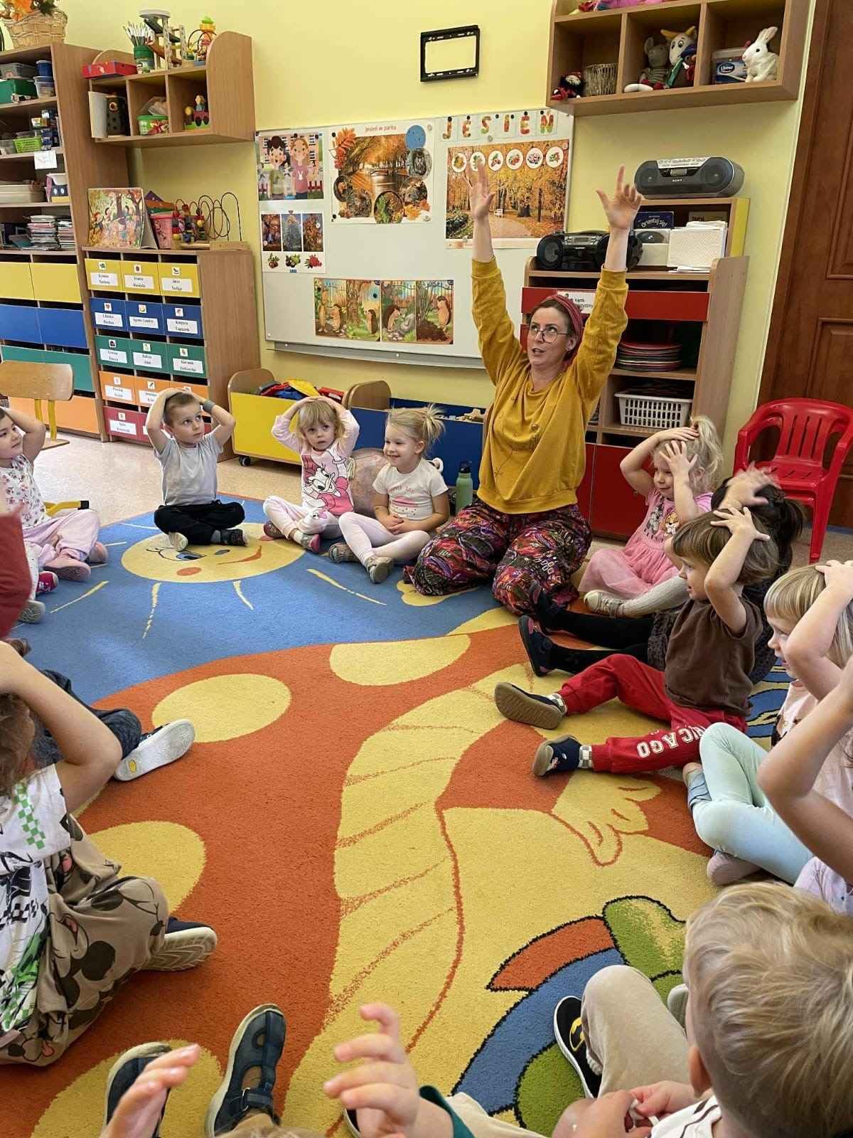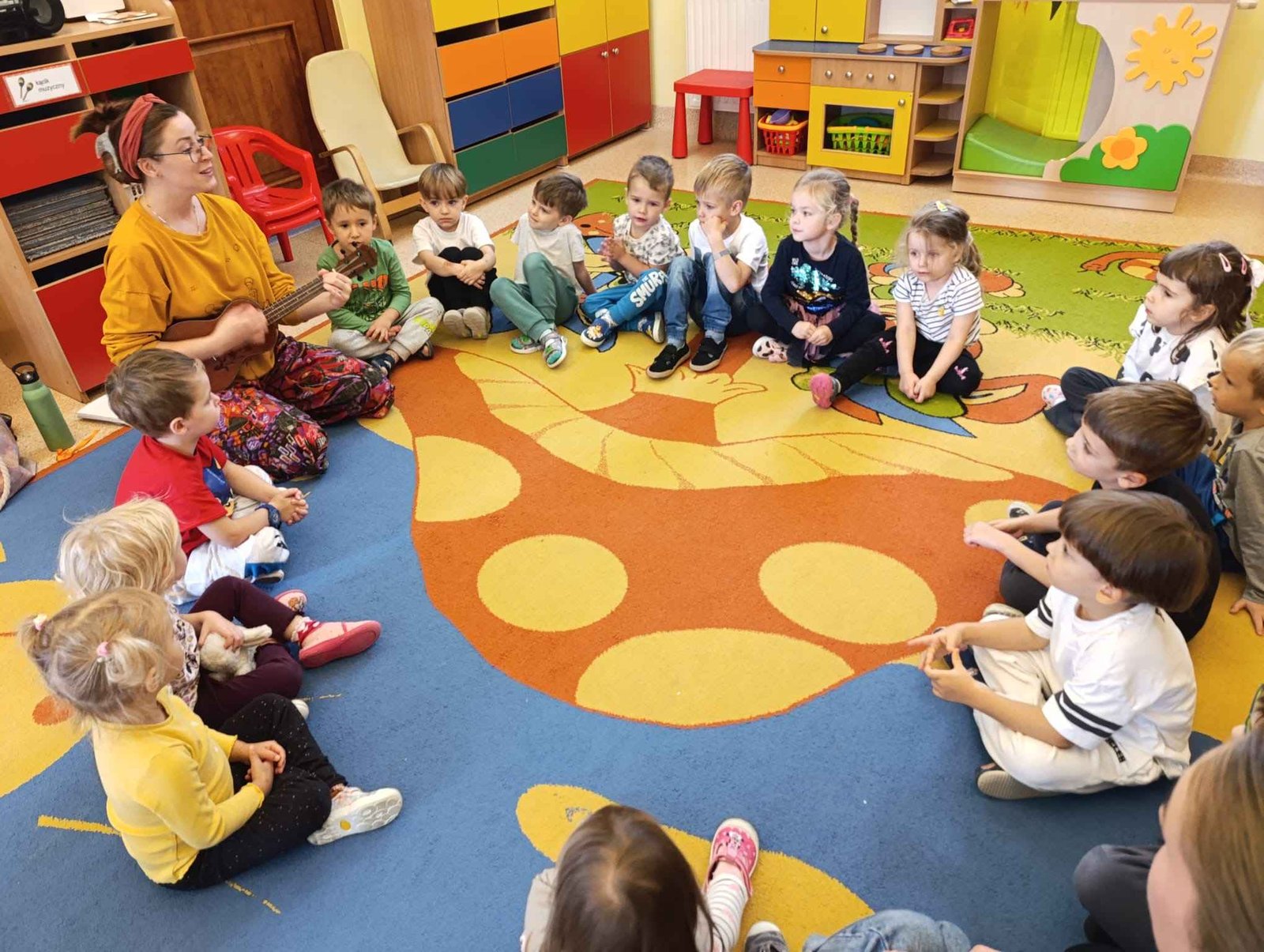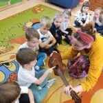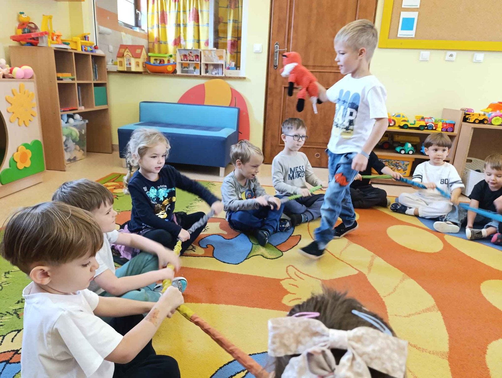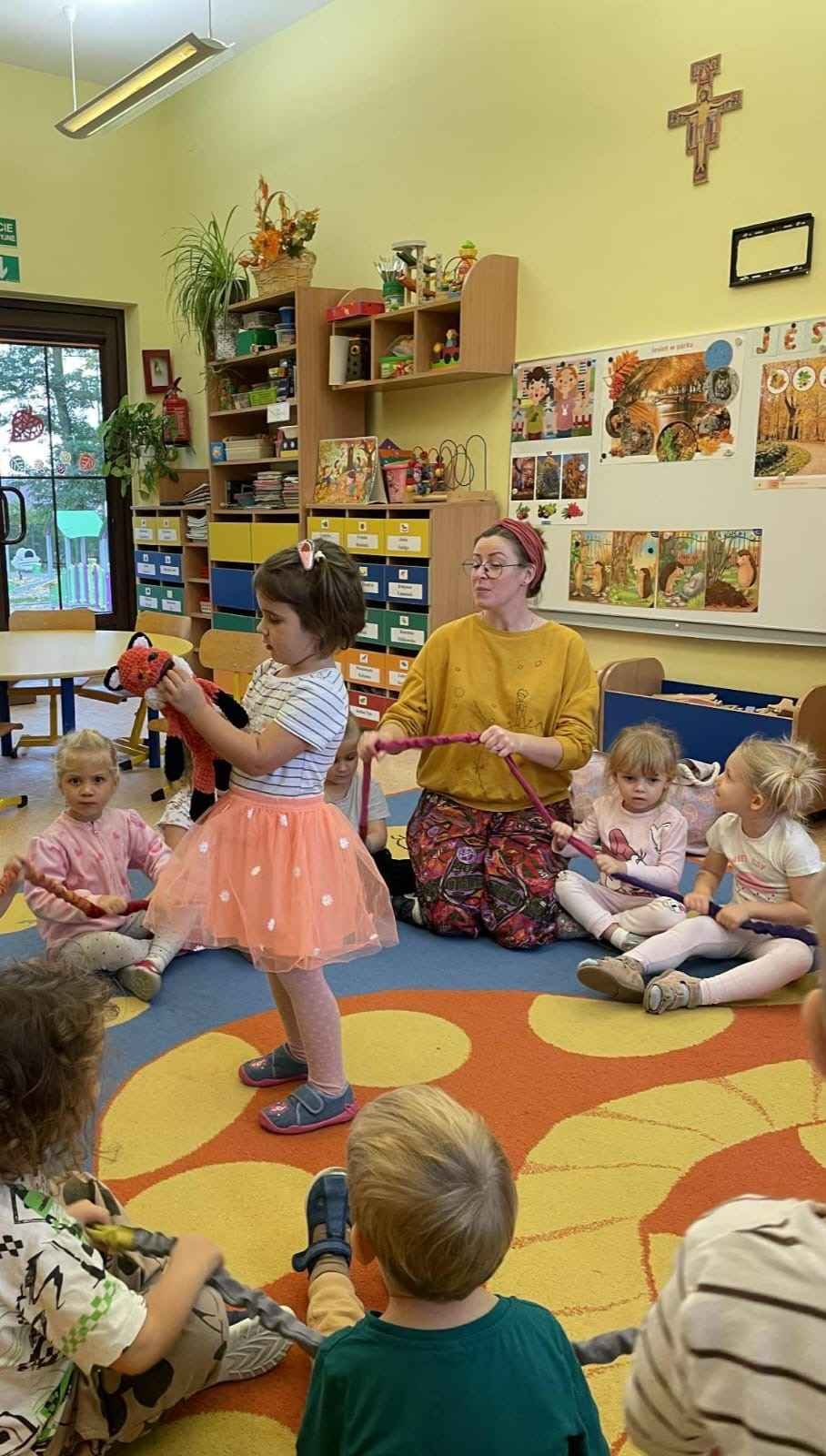 Podczas spotkania dzieci miały okazję rozwijać swoją wrażliwość muzyczną poprzez śpiew, mowę rytmiczną oraz różnorodne zabawy muzyczne.