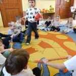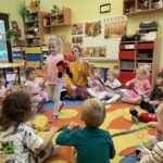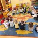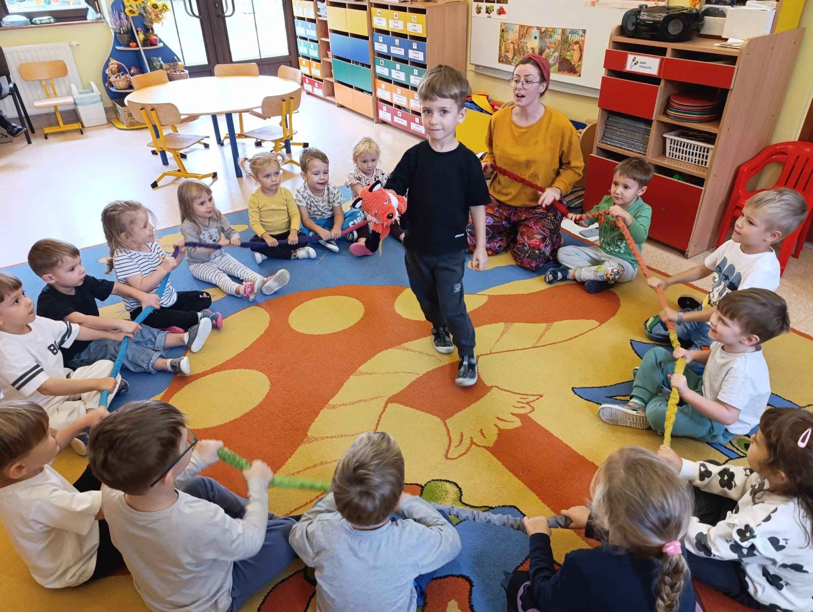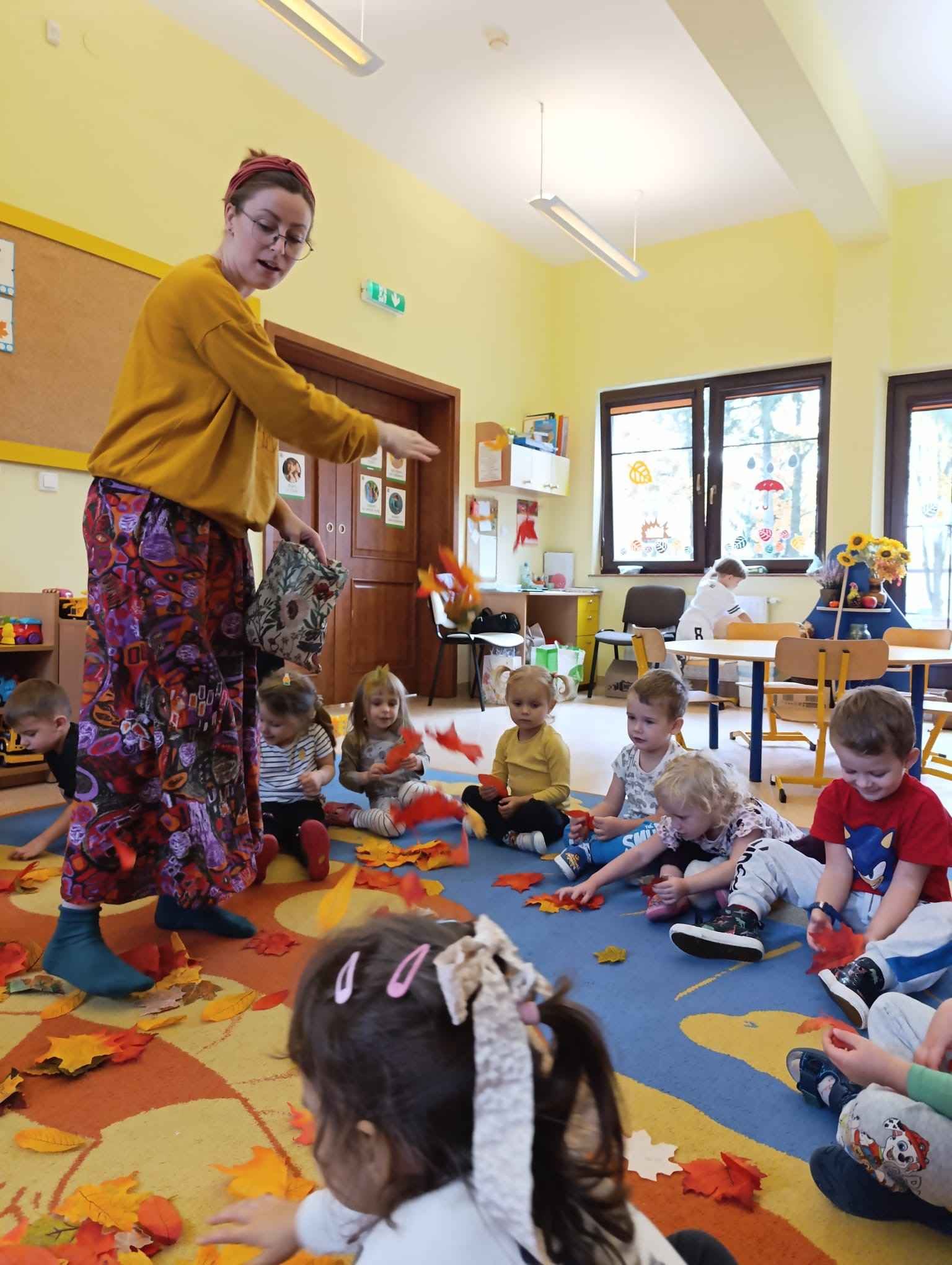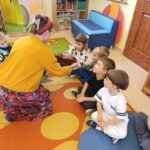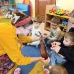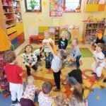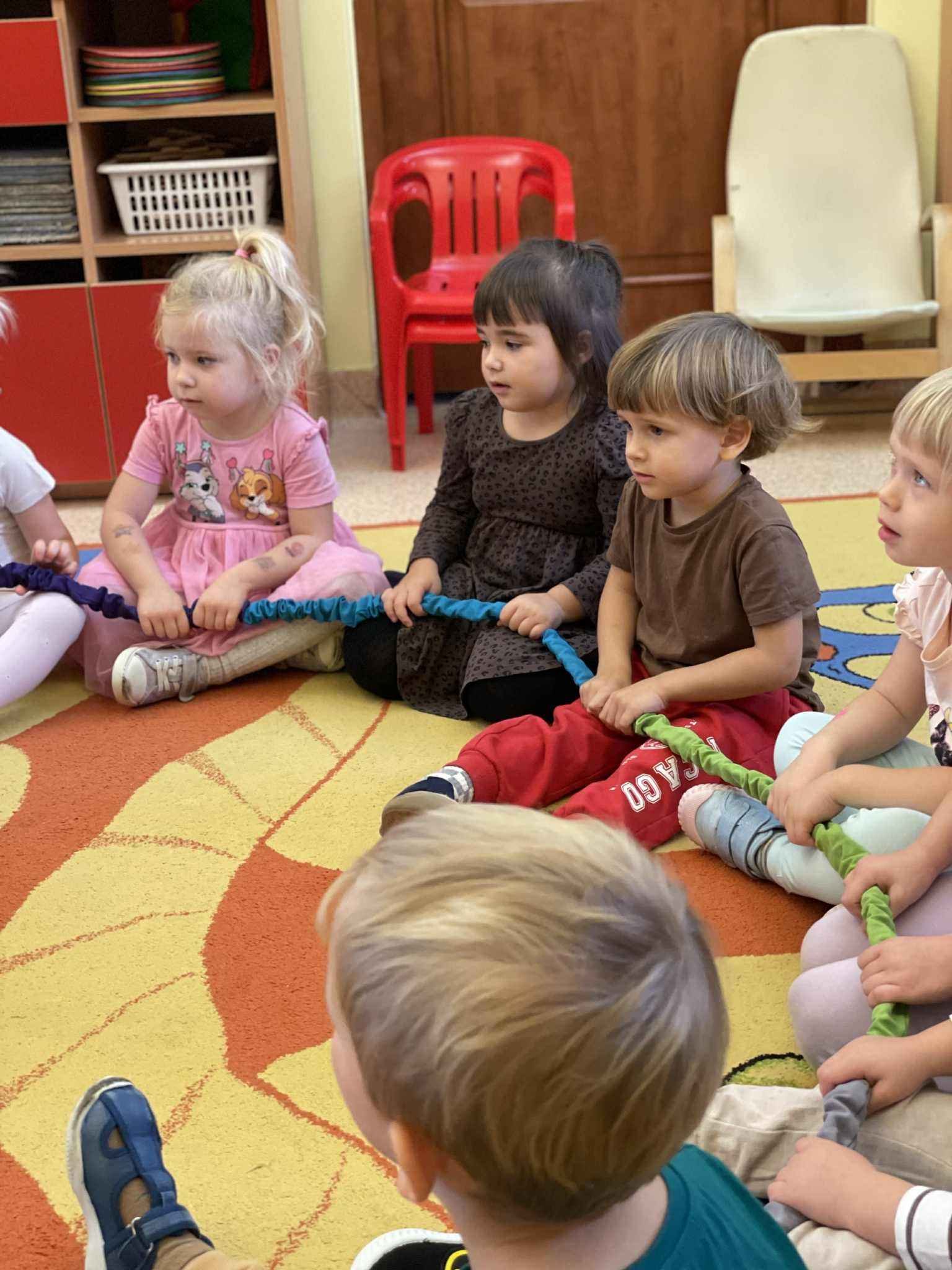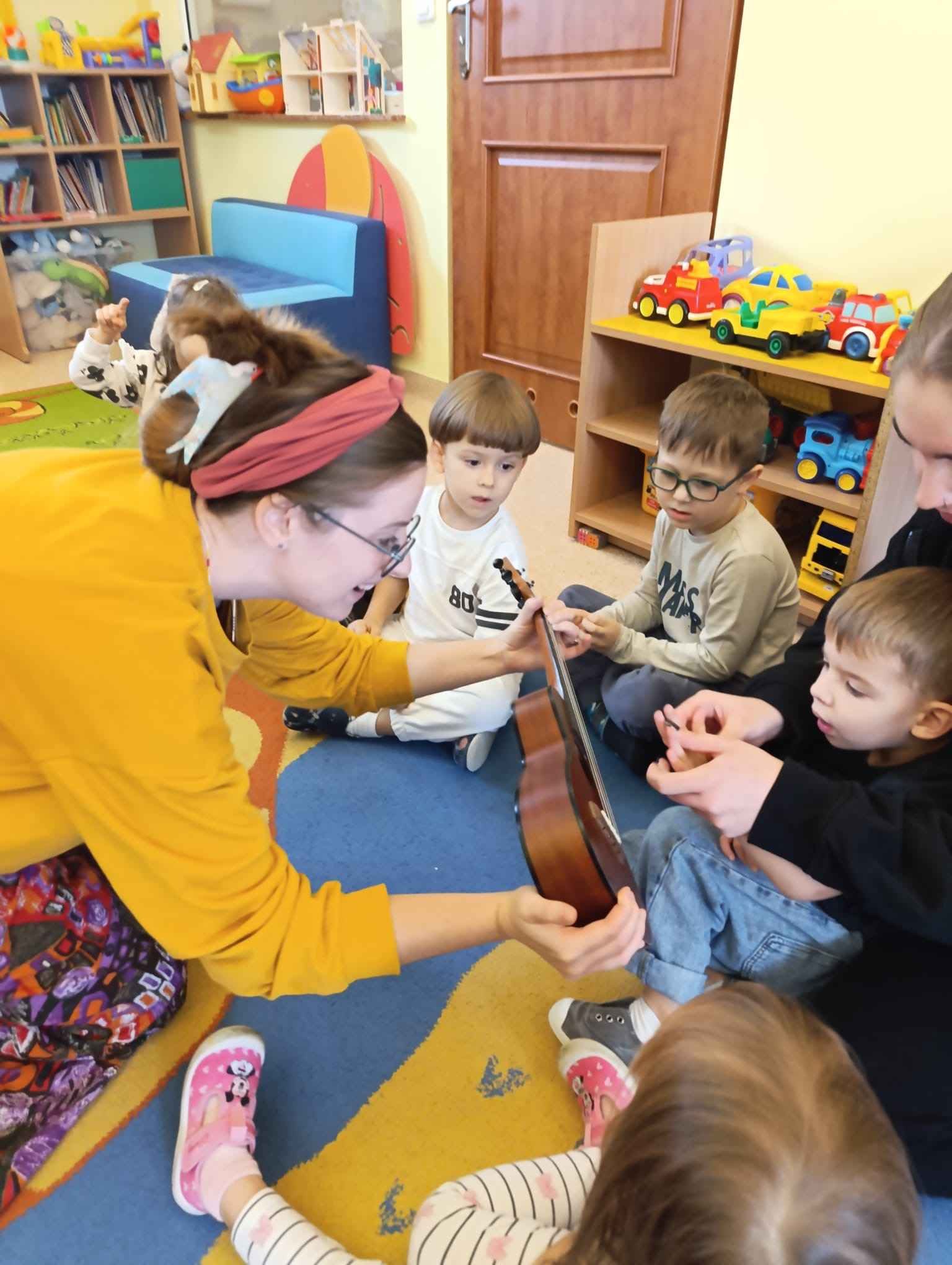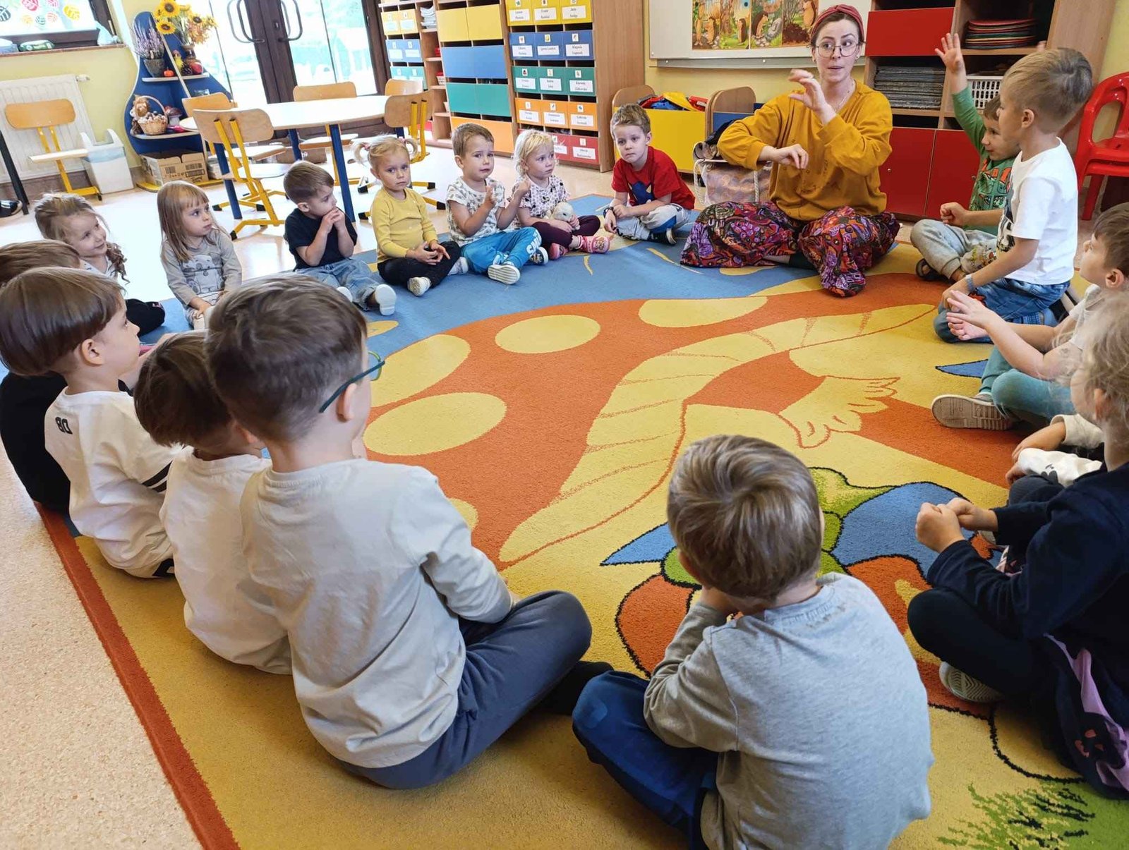 Podczas spotkania dzieci miały okazję rozwijać swoją wrażliwość muzyczną poprzez śpiew, mowę rytmiczną oraz różnorodne zabawy muzyczne.