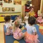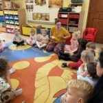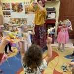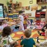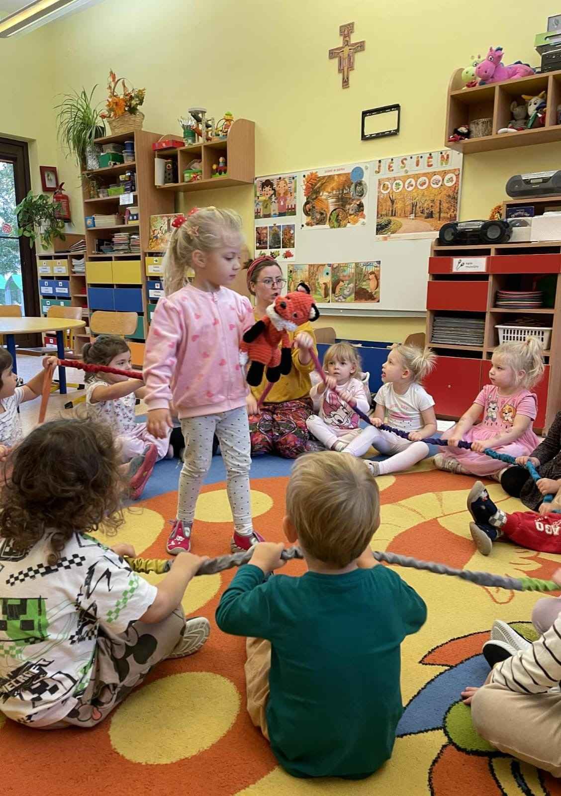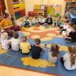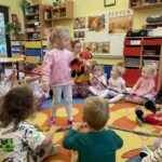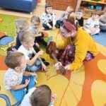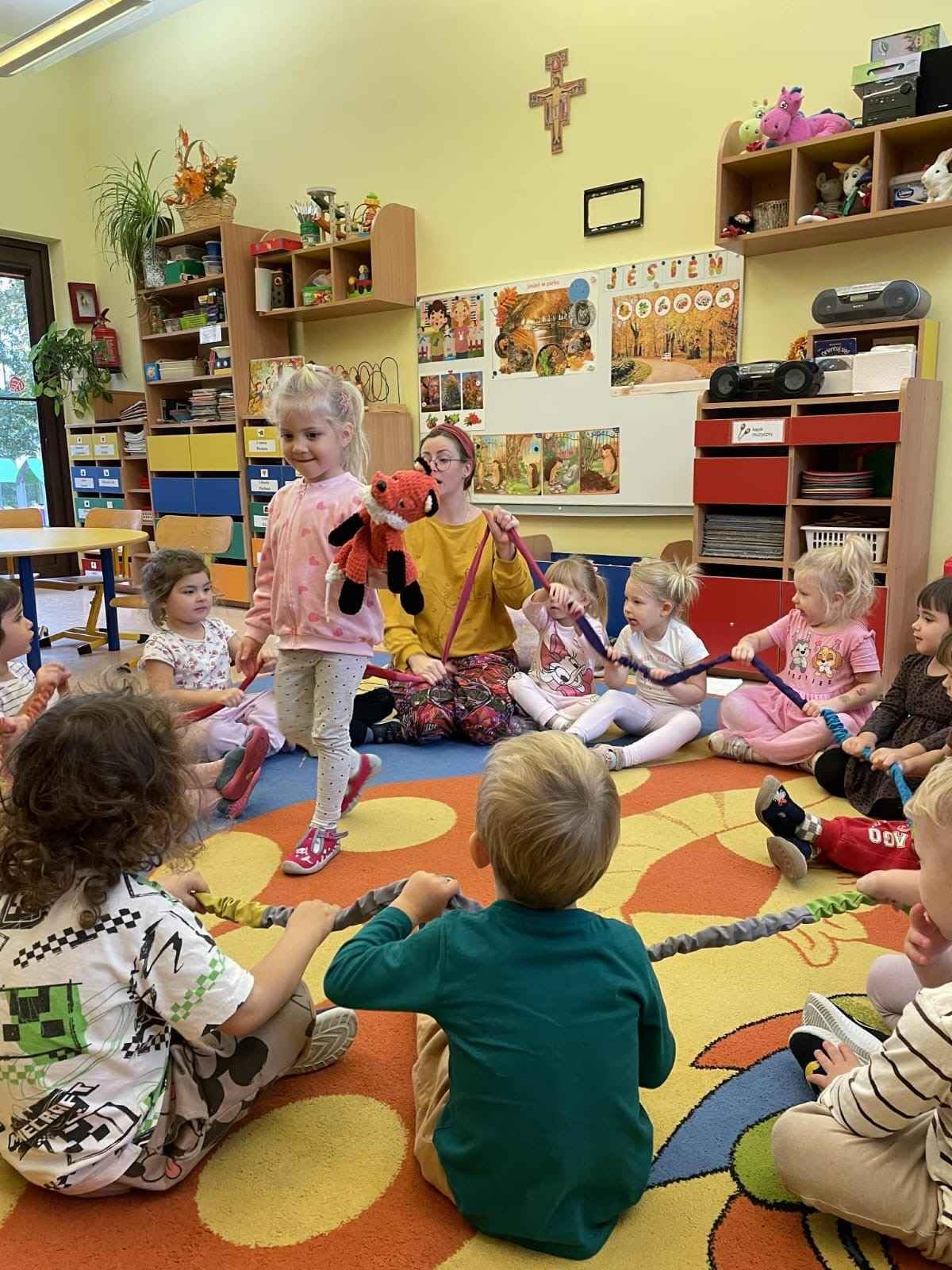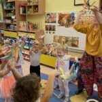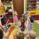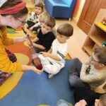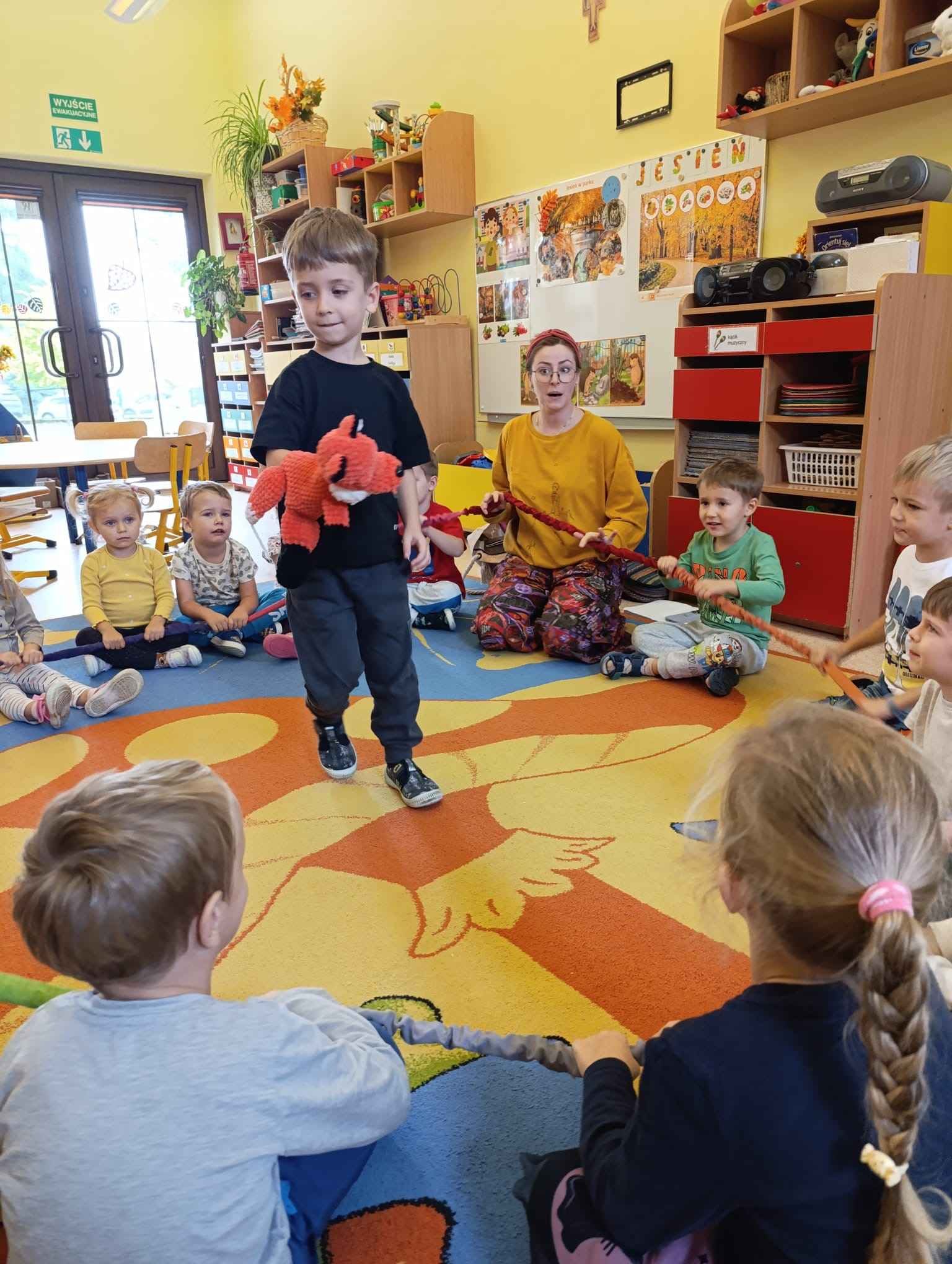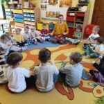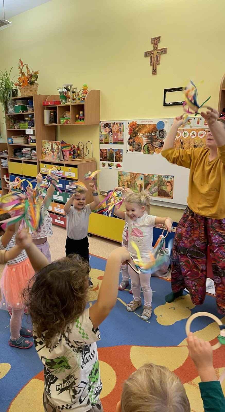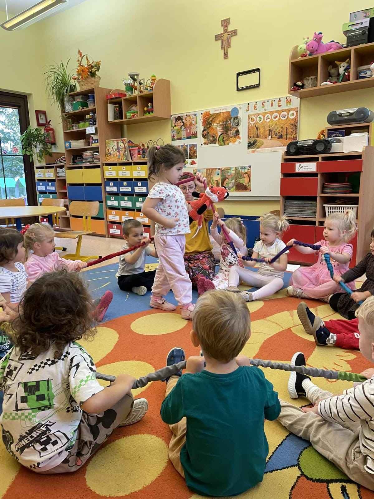 Podczas spotkania dzieci miały okazję rozwijać swoją wrażliwość muzyczną poprzez śpiew, mowę rytmiczną oraz różnorodne zabawy muzyczne.