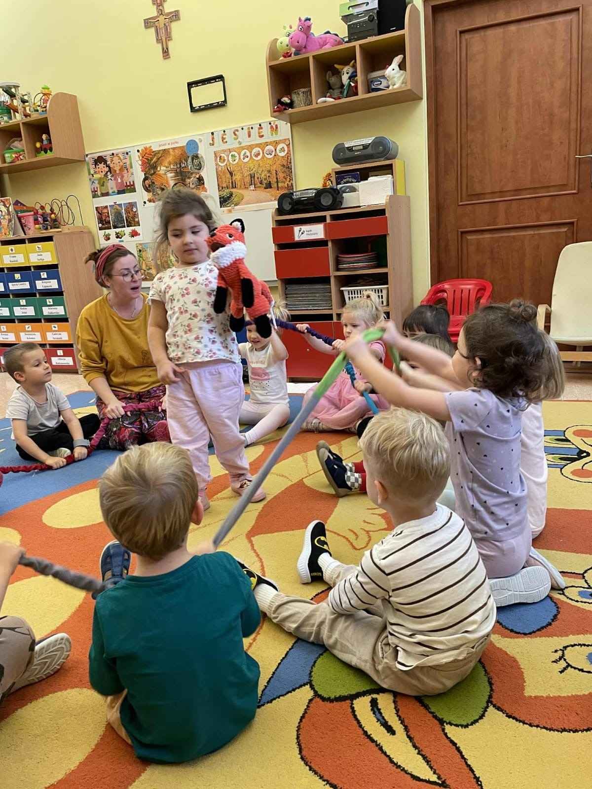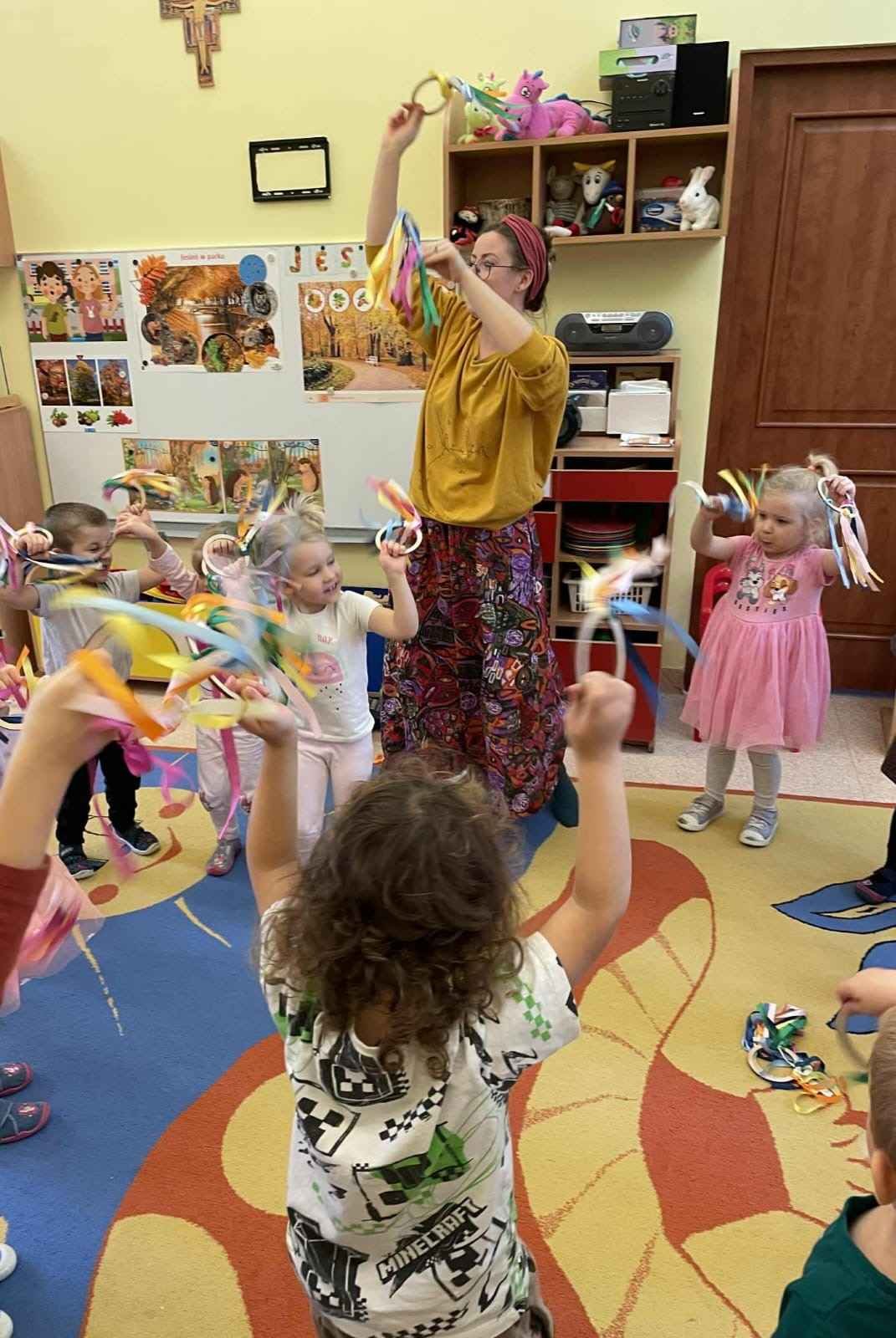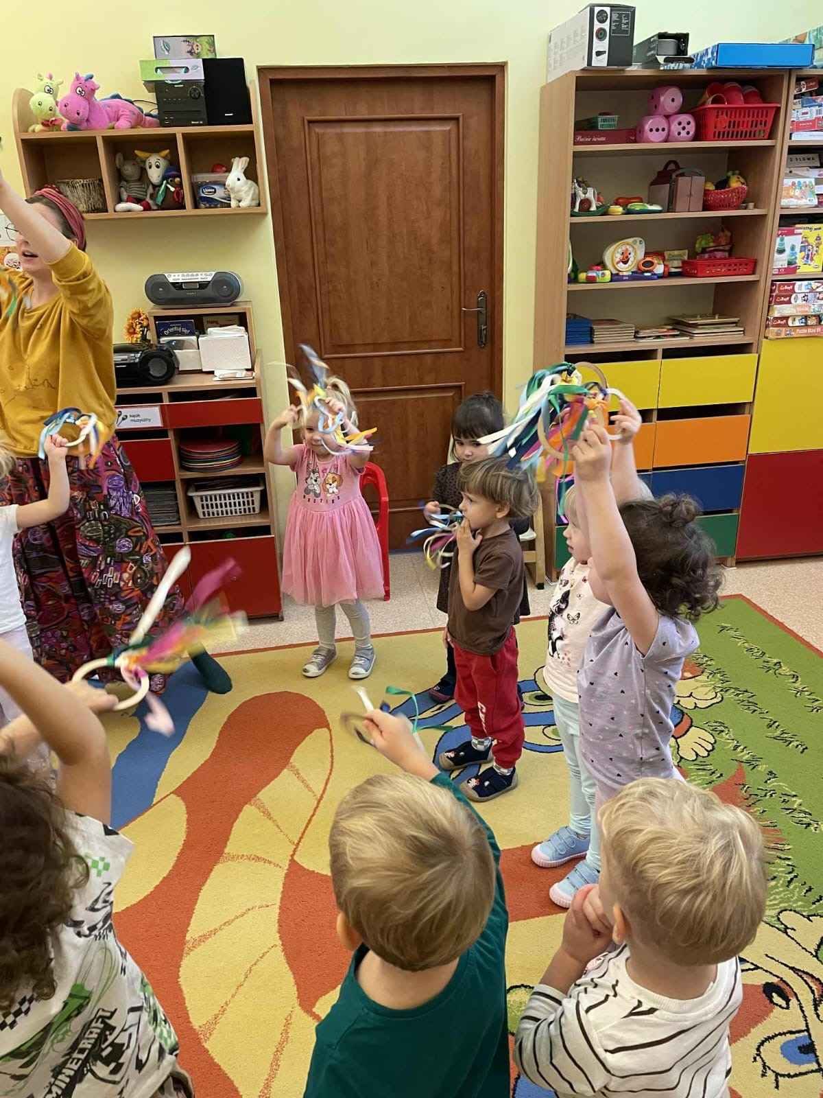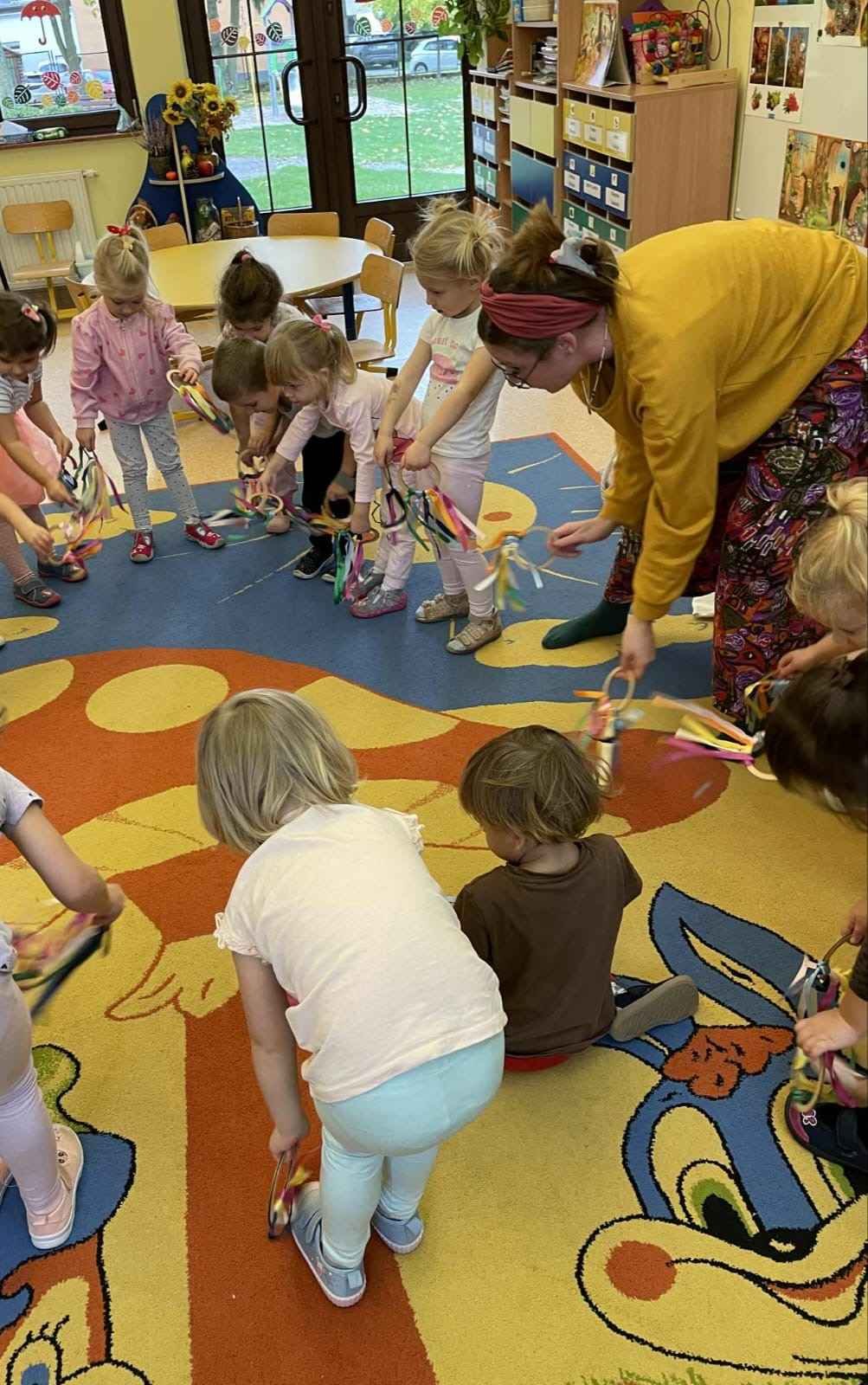 Zajęcia prowadzone były w formie pełnej radości i swobody, dzięki czemu mali uczestnicy mogli naturalnie eksplorować świat dźwięków, rytmów i melodii. Poprzez zabawę dzieci ćwiczyły koncentrację, koordynację ruchową oraz poczucie rytmu, a jednocześnie rozwijały swoją kreatywność i ekspresję muzyczną.