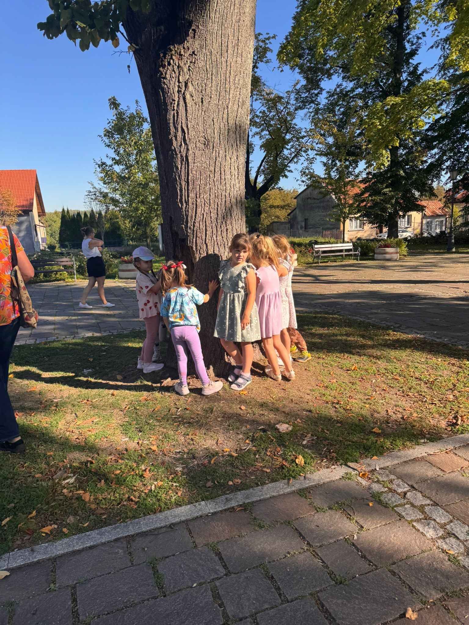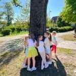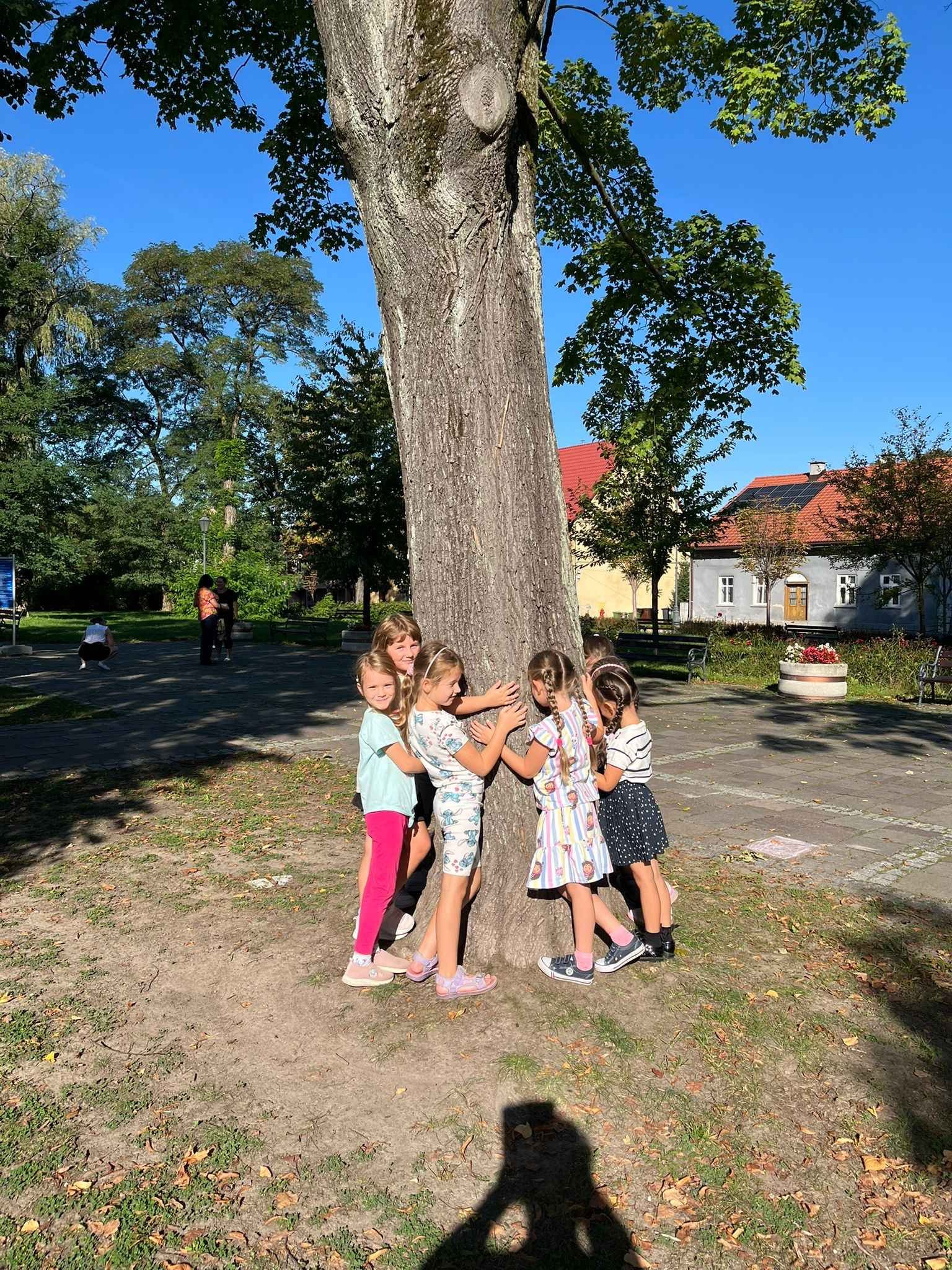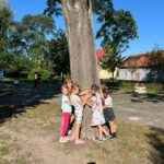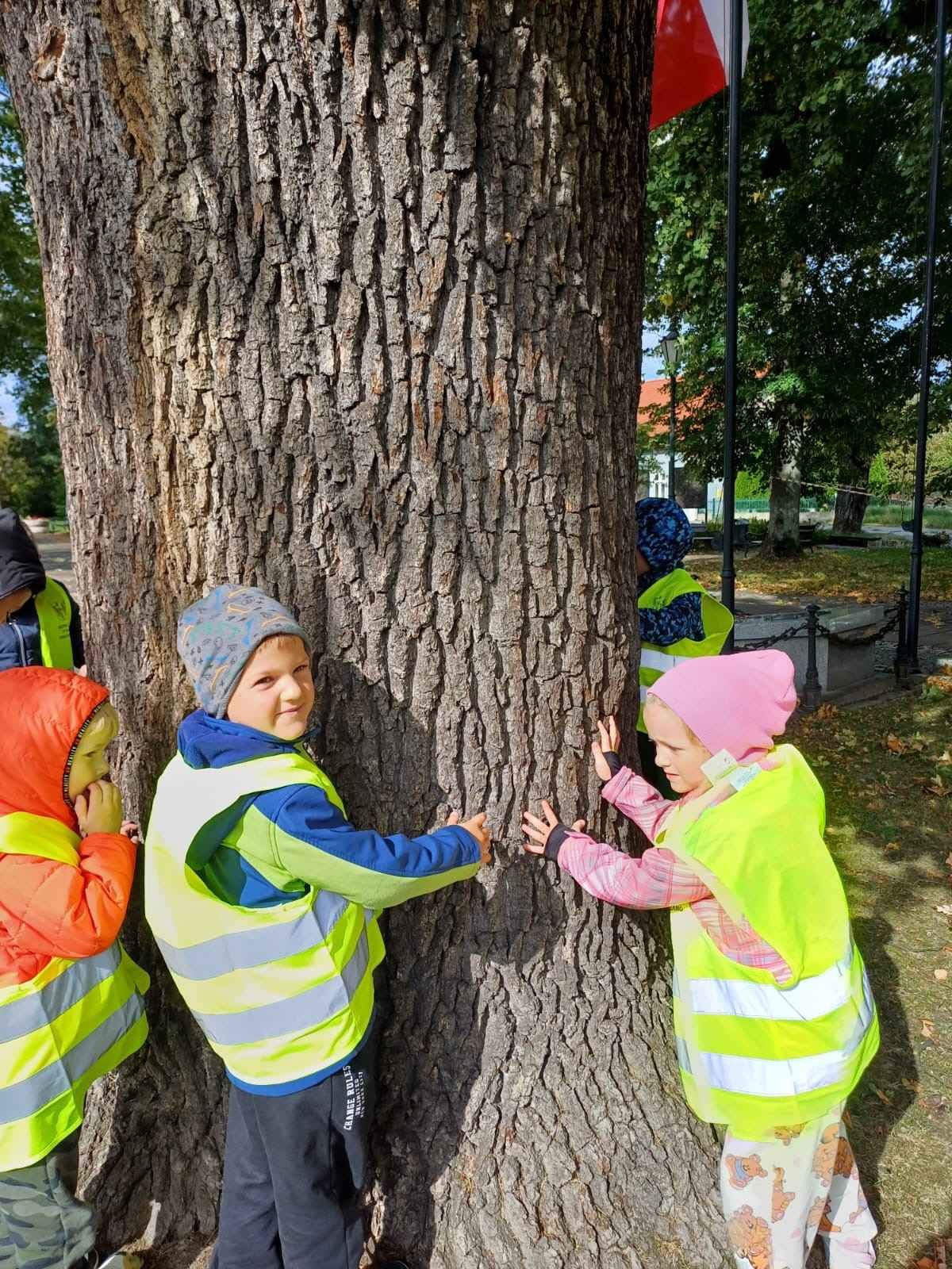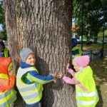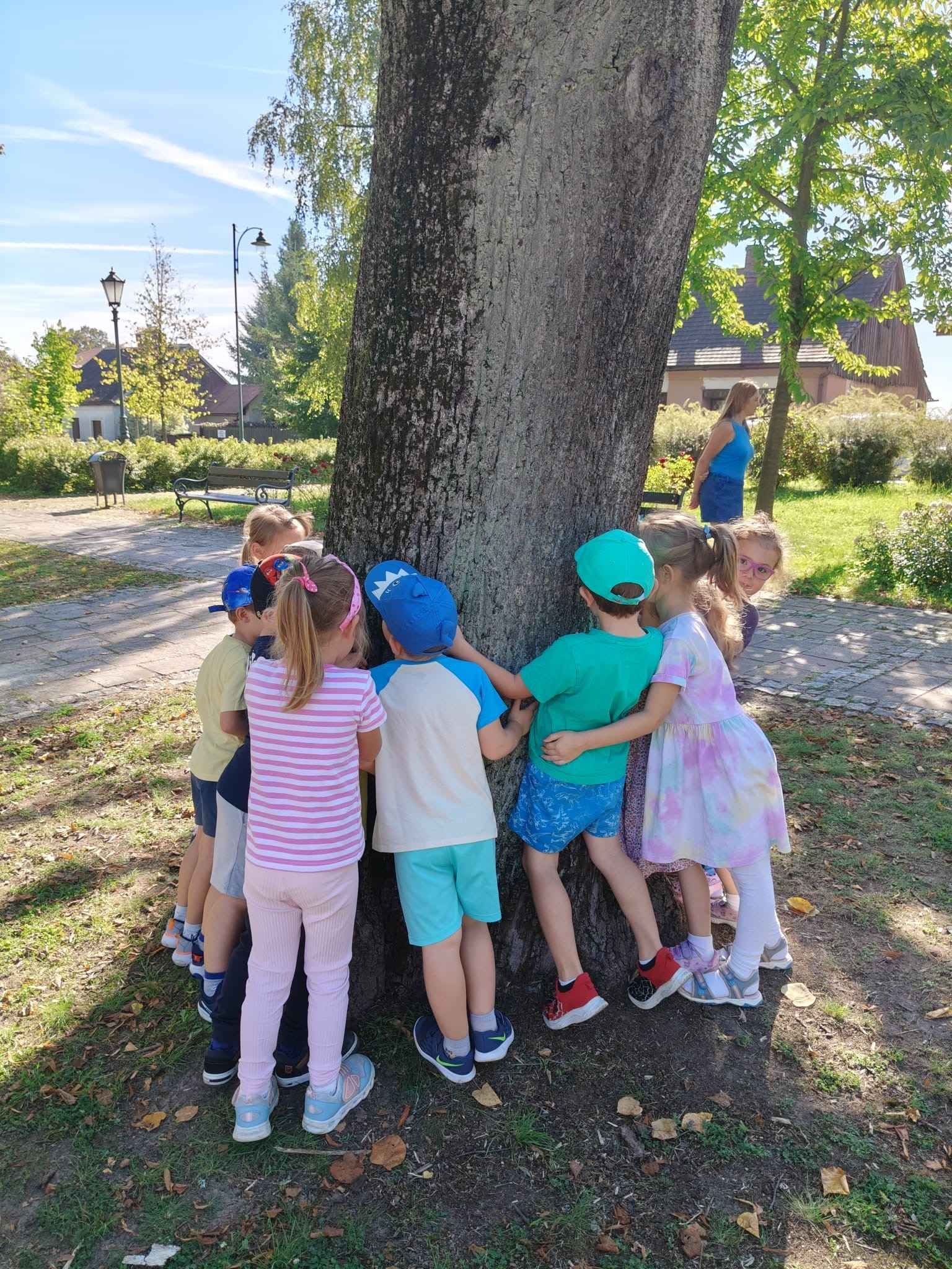 Dzieci z radością objęły drzewa w naszym ogrodzie i pobliskim parku, ucząc się, że natura to nasz przyjaciel, o którego warto dbać.