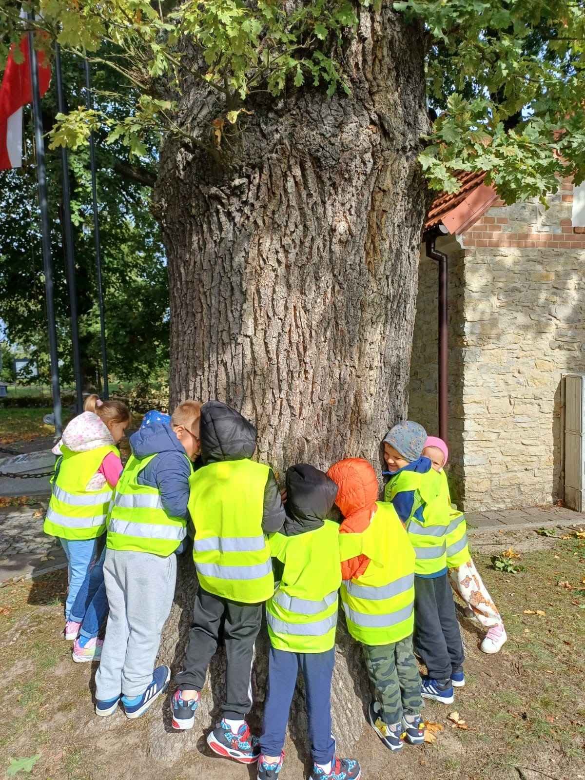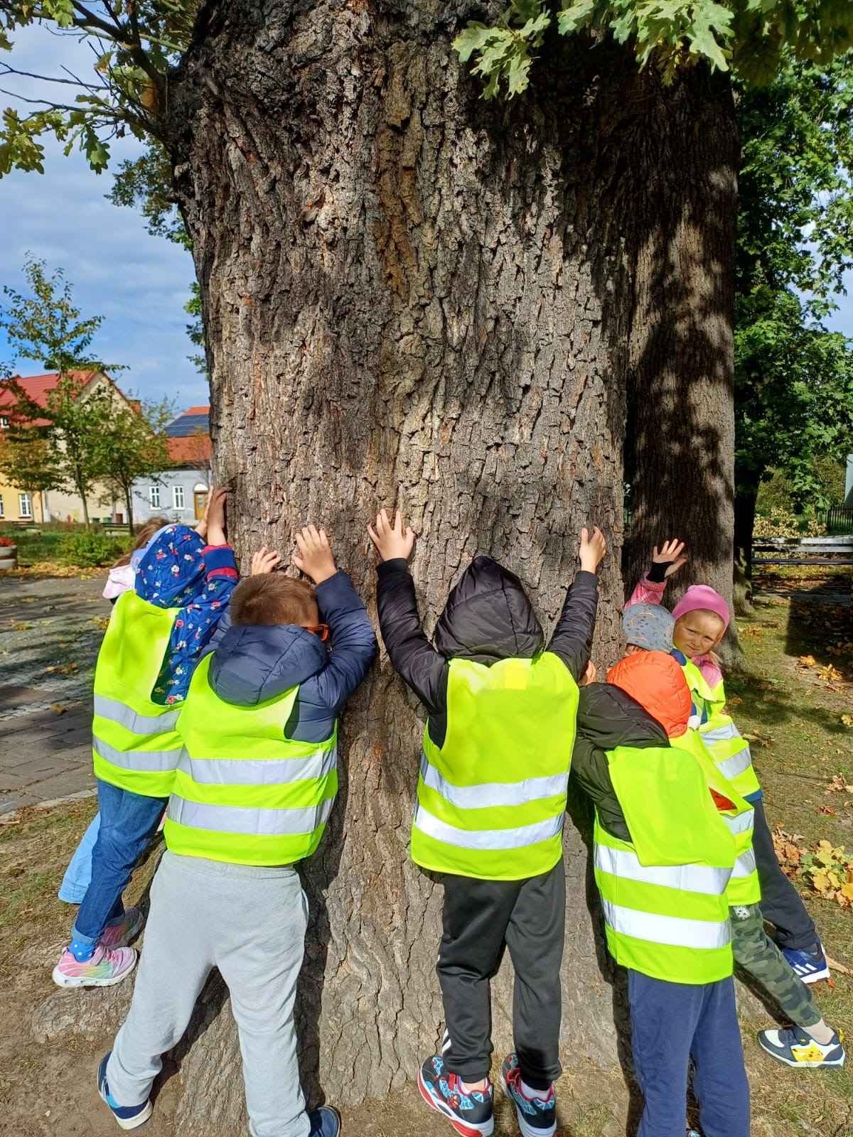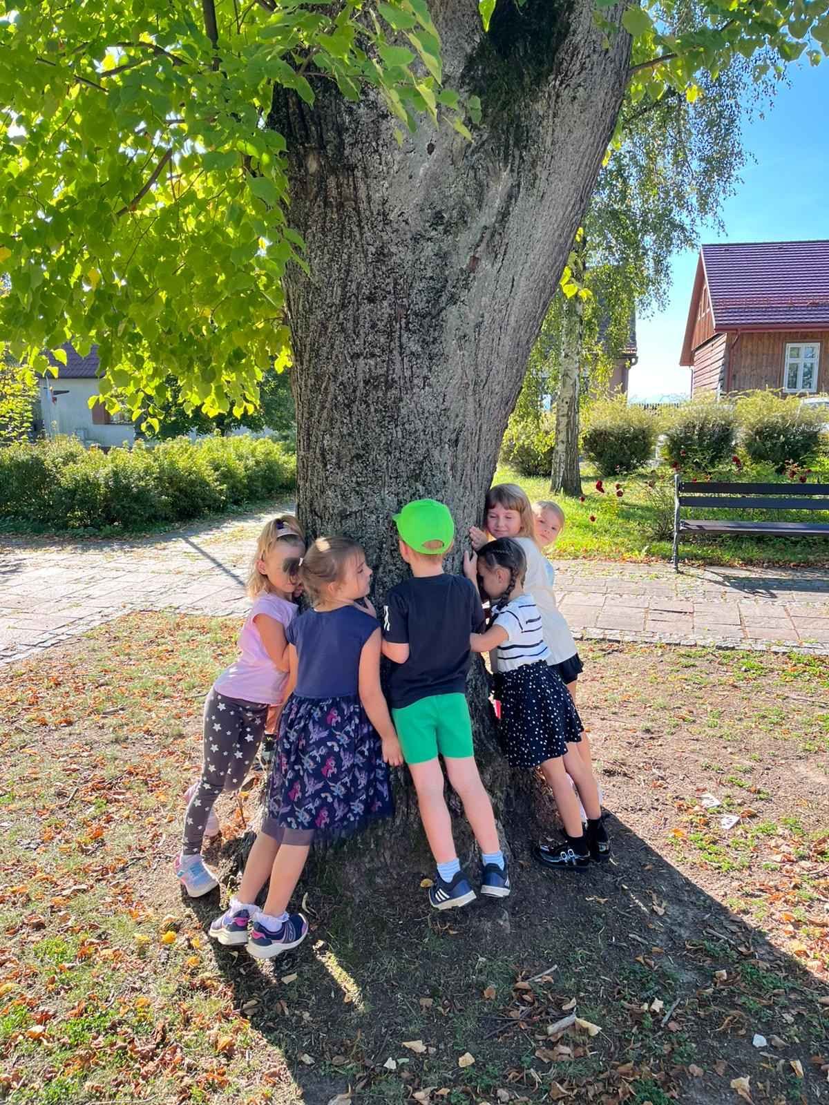 Nasze przedszkolaki wzięły udział w ogólnopolskiej akcji „Przytul się do drzewa”, której celem jest budzenie wrażliwości na piękno przyrody i kształtowanie postaw proekologicznych.