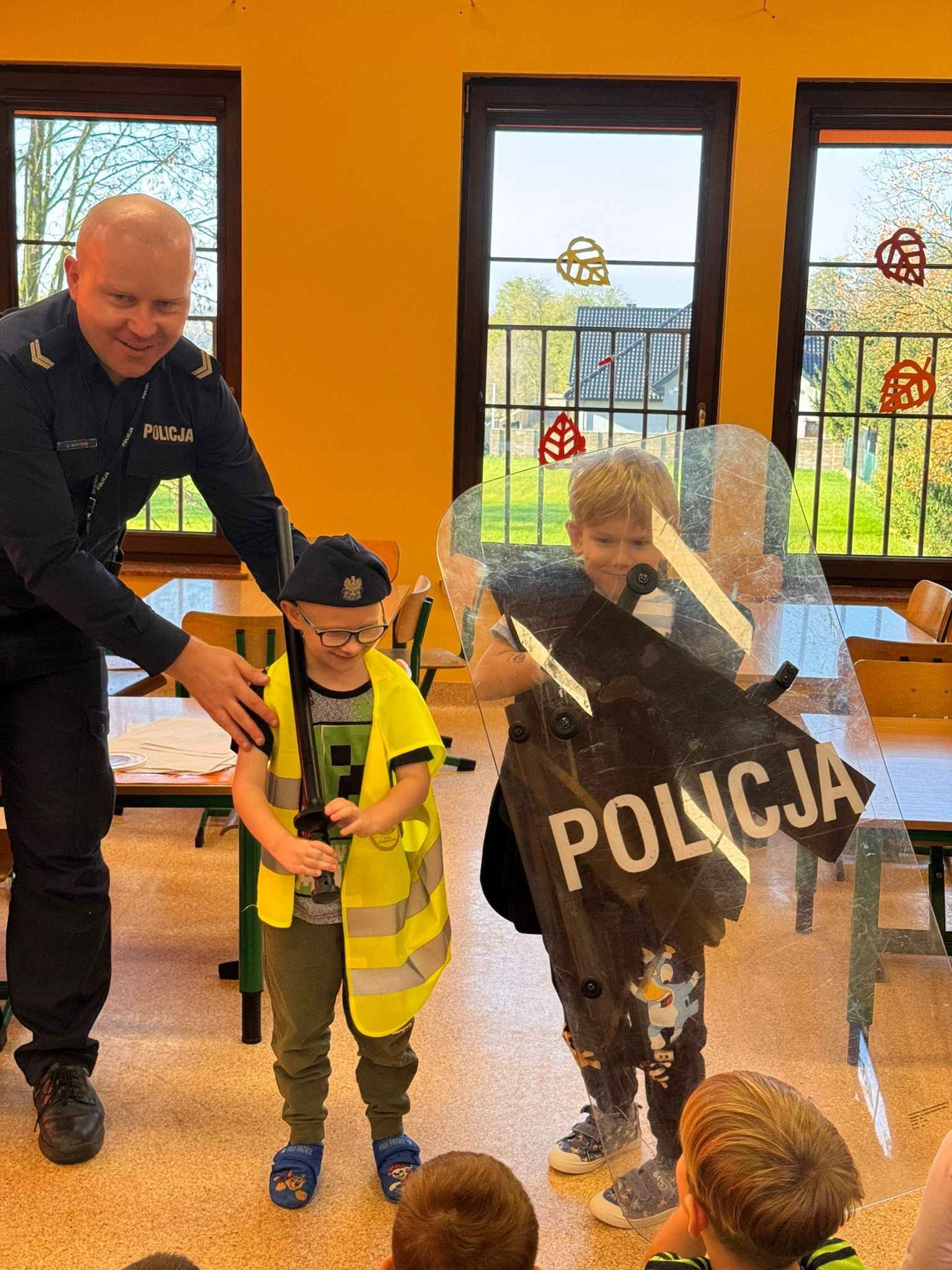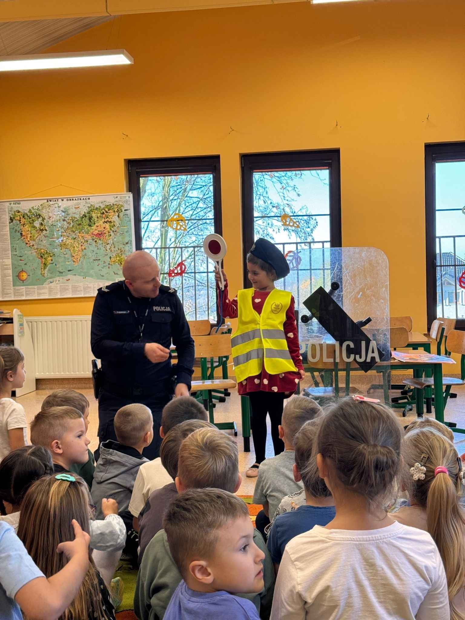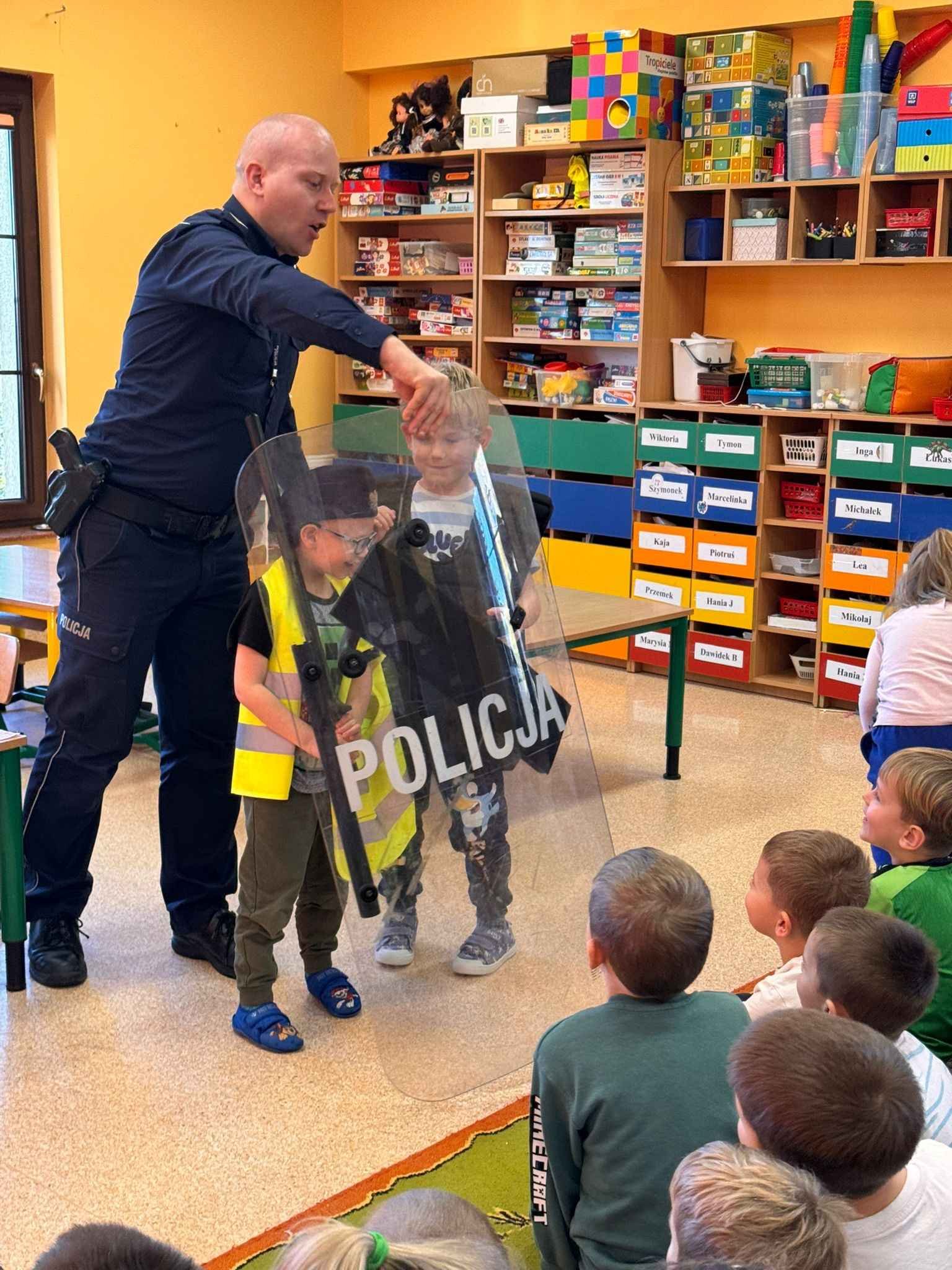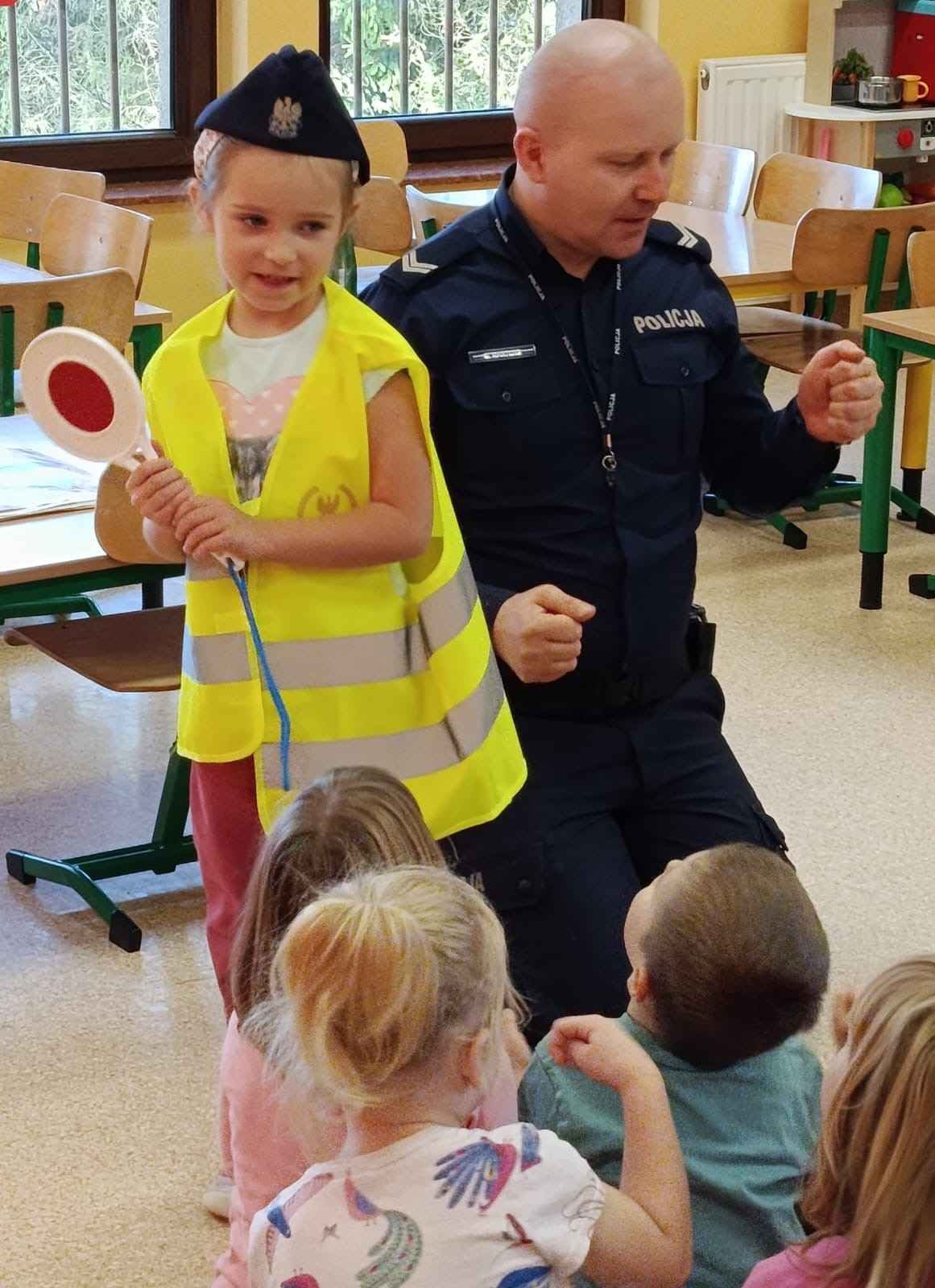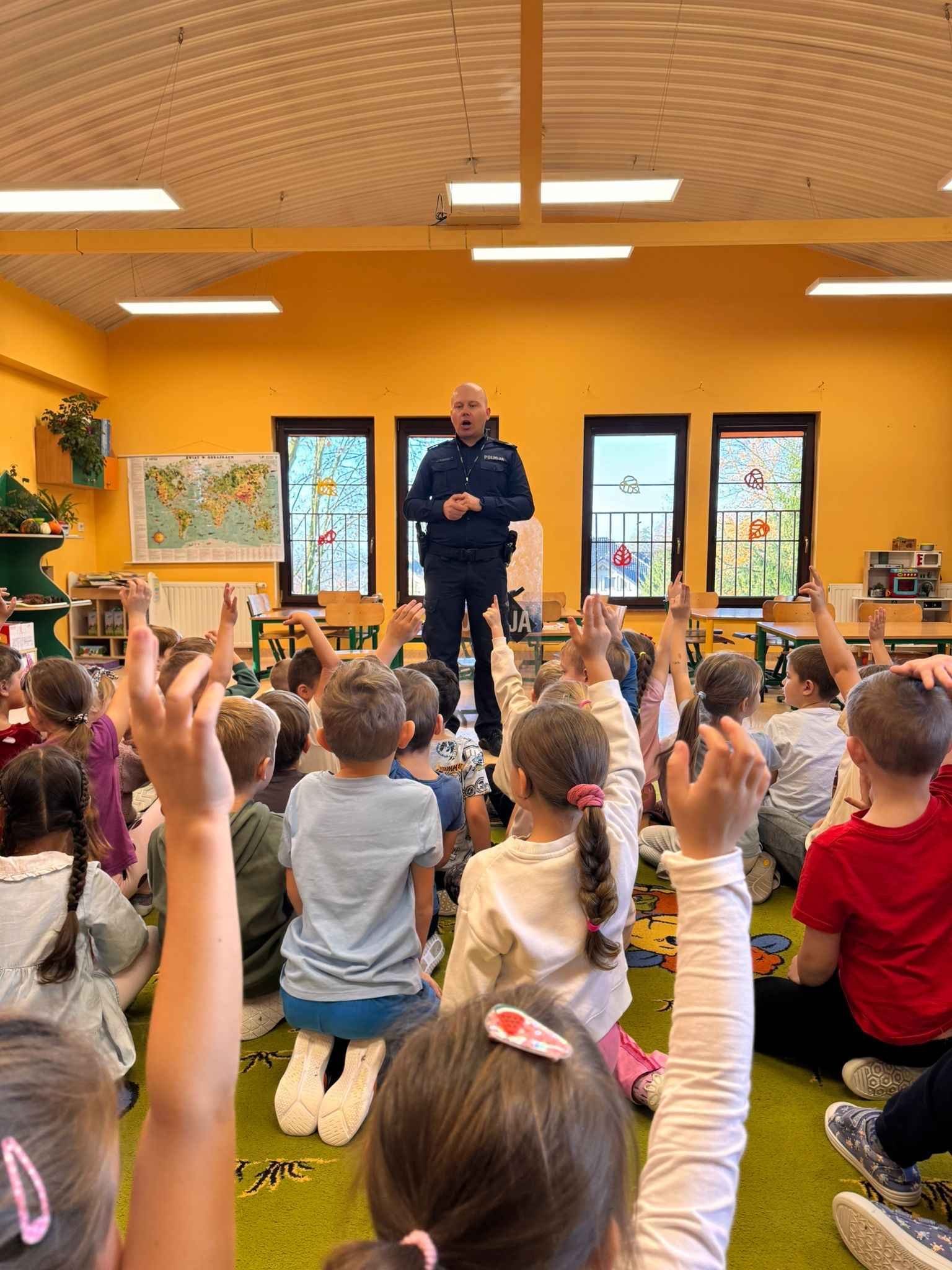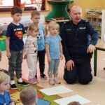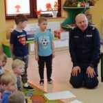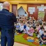 Dzieci z dużym zainteresowaniem uczestniczyły w spotkaniu, chętnie zadawały pytania i dzieliły się swoimi doświadczeniami. Serdecznie dziękujemy Panu Policjantowi za miłe spotkanie i cenną lekcję bezpieczeństwa!
