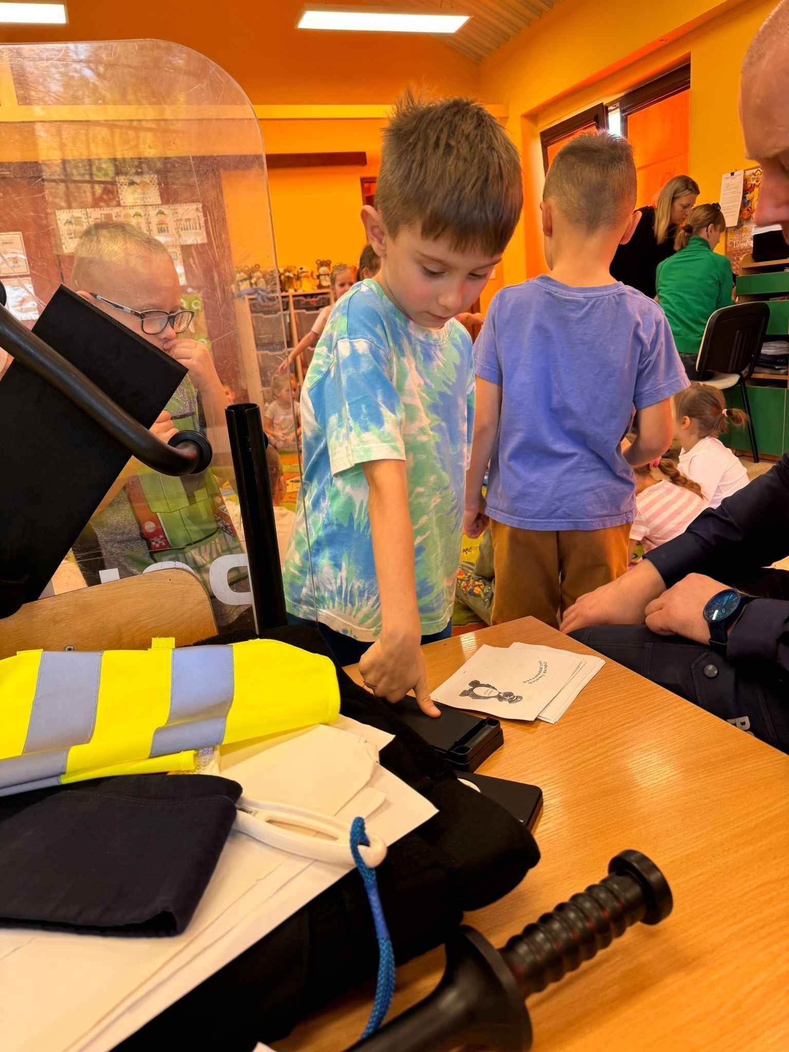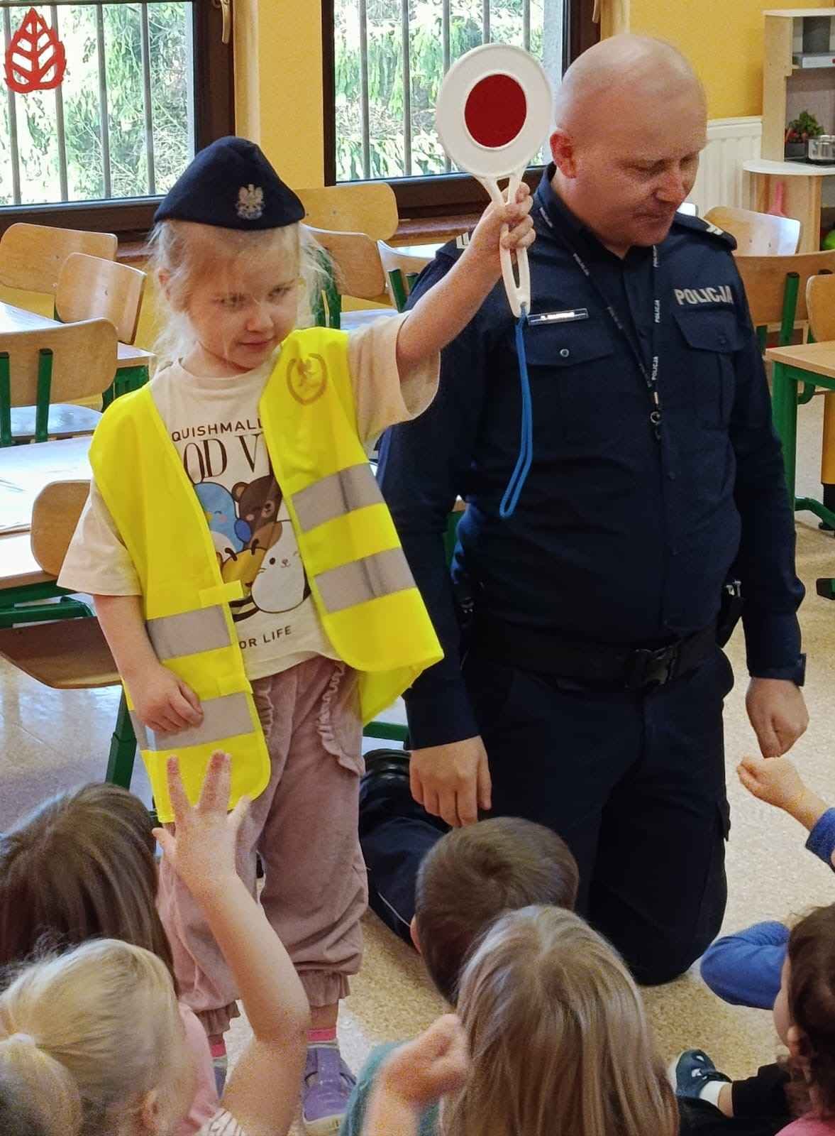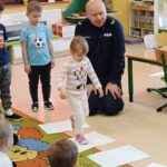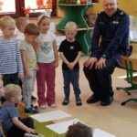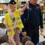 Podczas rozmowy dzieci dowiedziały się, jak wygląda codzienna praca policjanta, mogły obejrzeć jego mundur i wyposażenie oraz wysłuchać wielu ciekawostek o pracy w policji. Przedszkolaki utrwaliły zasady bezpiecznego poruszania się po drodze, dowiedziały się, dlaczego warto nosić odblaski, i jak zachować się w kontaktach z nieznajomymi.