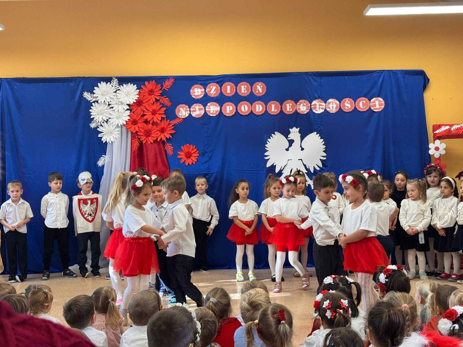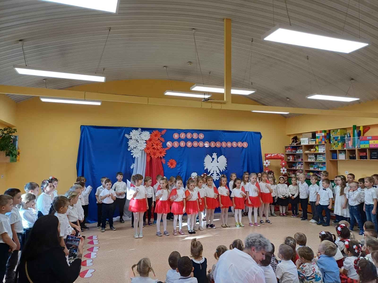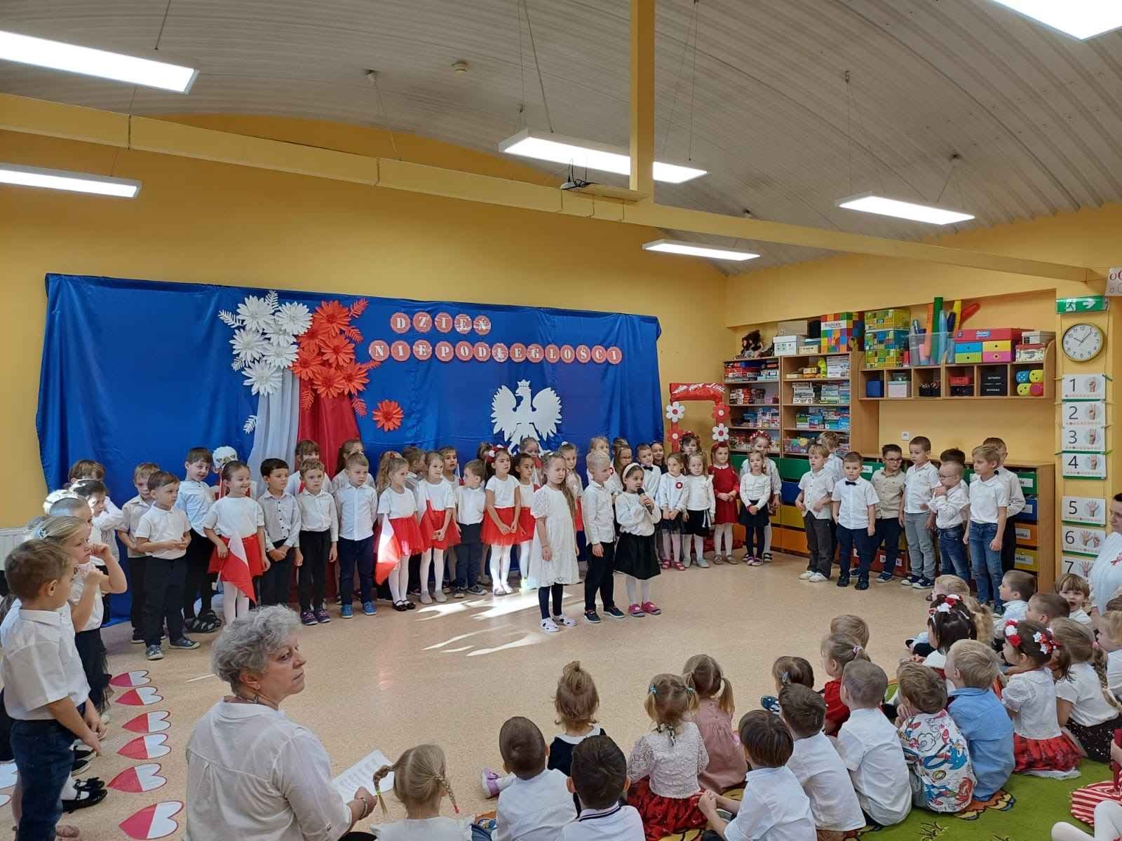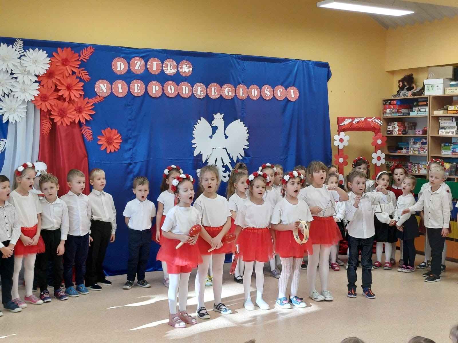 Przedszkolaki odśpiewały hymn Polski – „Mazurka Dąbrowskiego”, recytowały wiersze patriotyczne oraz śpiewały piosenki o ojczyźnie. Cała społeczność przedszkolna z powagą i wzruszeniem uczestniczyła w tym wydarzeniu, oddając hołd wszystkim, którzy walczyli o wolną Polskę.