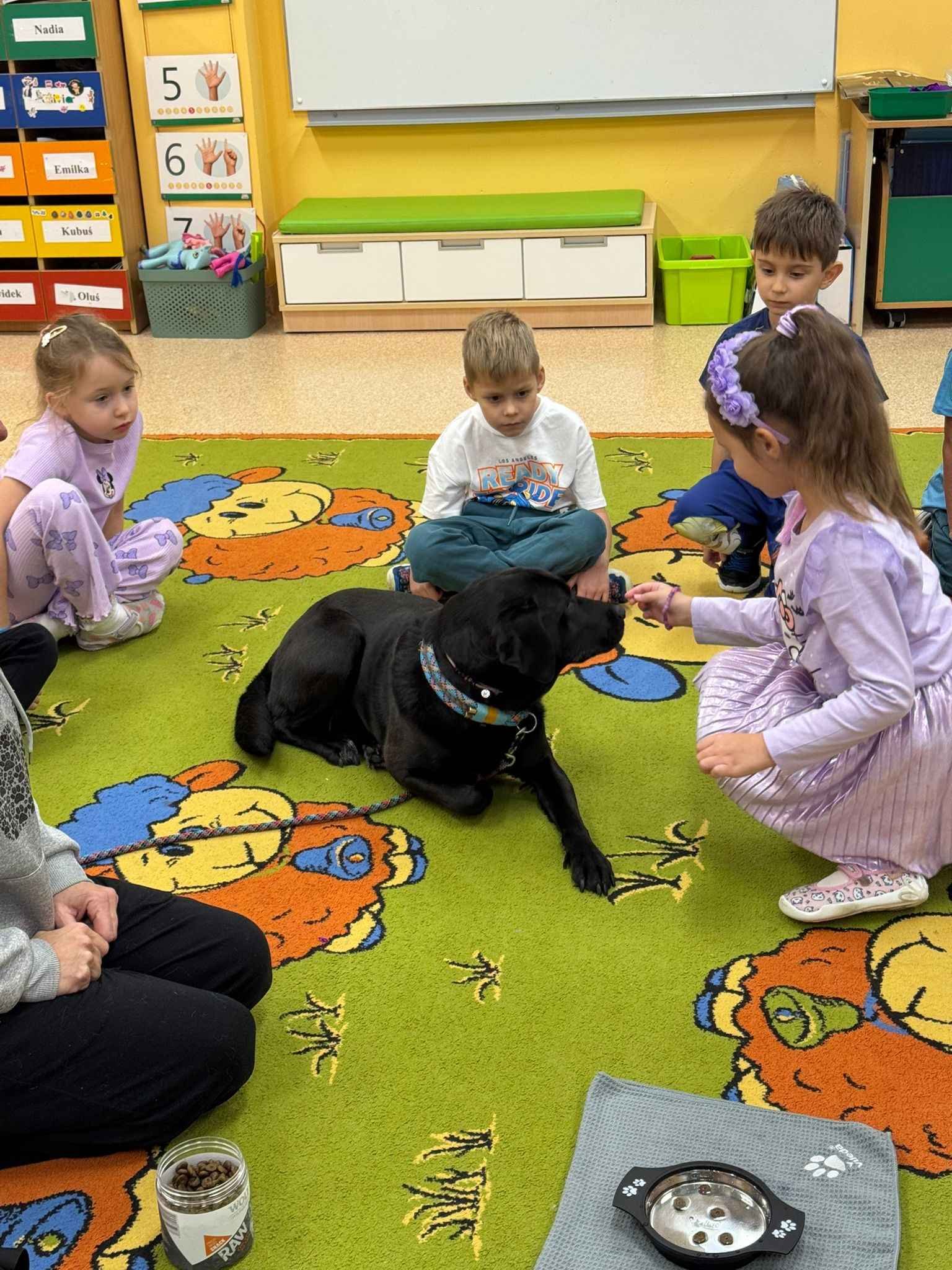 W tym tygodniu nasze przedszkole odwiedził wyjątkowy gość – pies terapeutyczny Jagoda wraz ze swoją opiekunką, panią Marzeną.