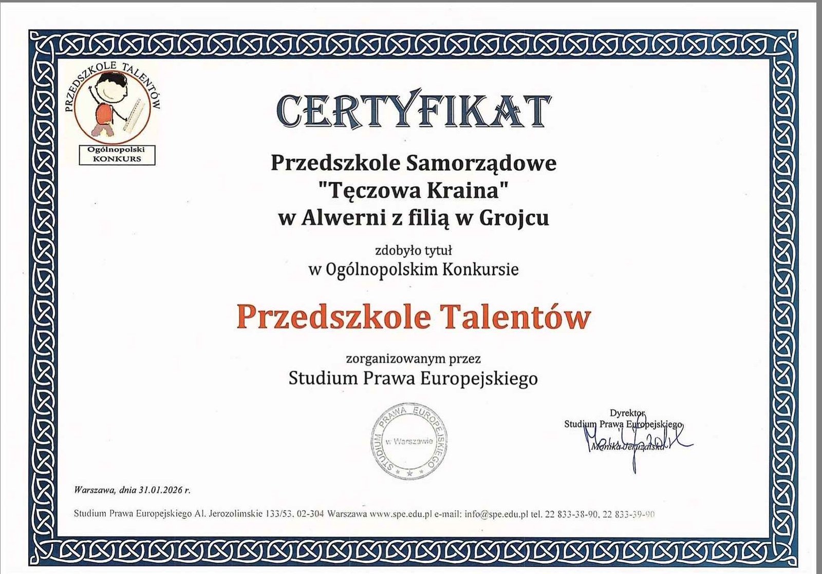 W okresie od 15.09.2025 r. do 30.01.2026 r. nasze przedszkole wzięło udział w Ogólnopolskim Konkursie „Przedszkole Talentów”.
