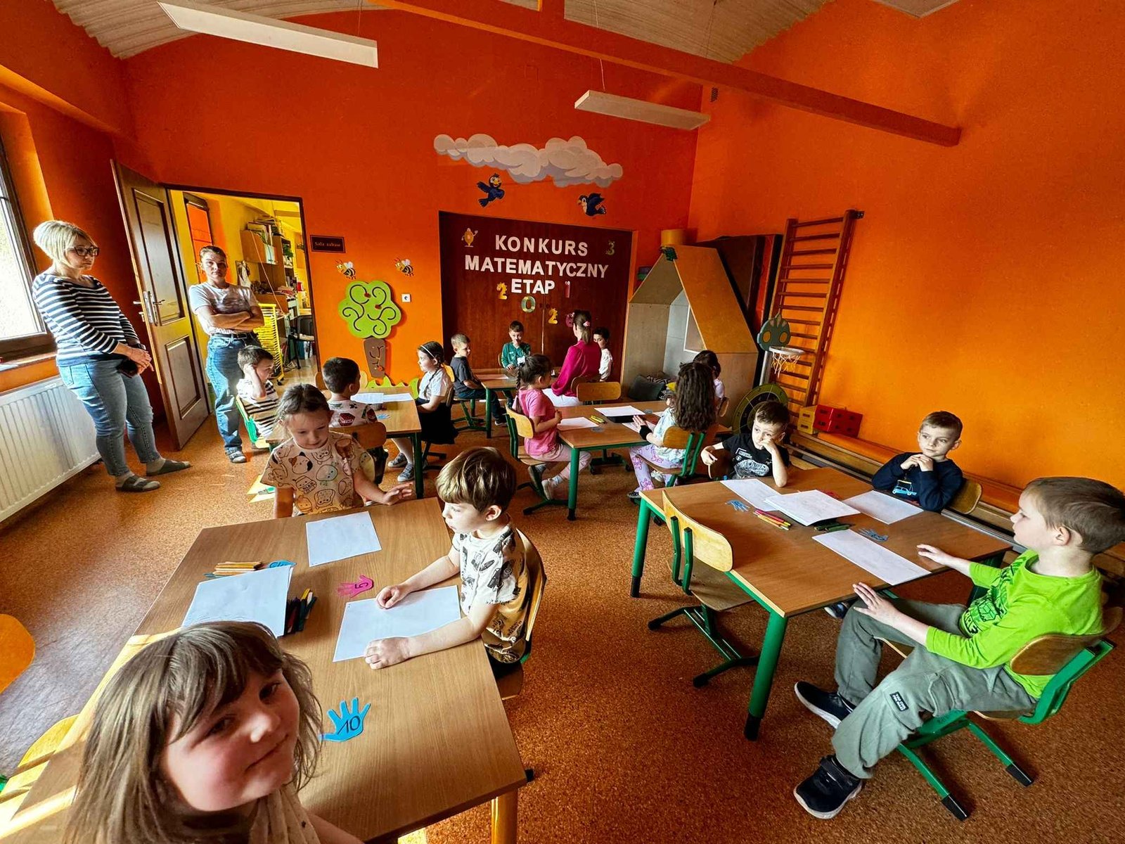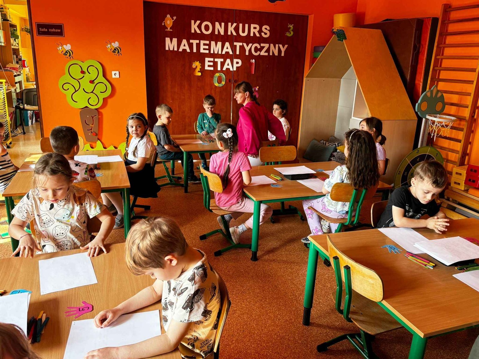 W naszym przedszkolu odbył się pierwszy etap konkursu matematycznego dla dzieci w wieku 5–6 lat. Mali uczestnicy z dużym zaangażowaniem i entuzjazmem zmierzyli się z przygotowanymi zadaniami, wykazując się logicznym myśleniem oraz umiejętnościami matematycznymi.