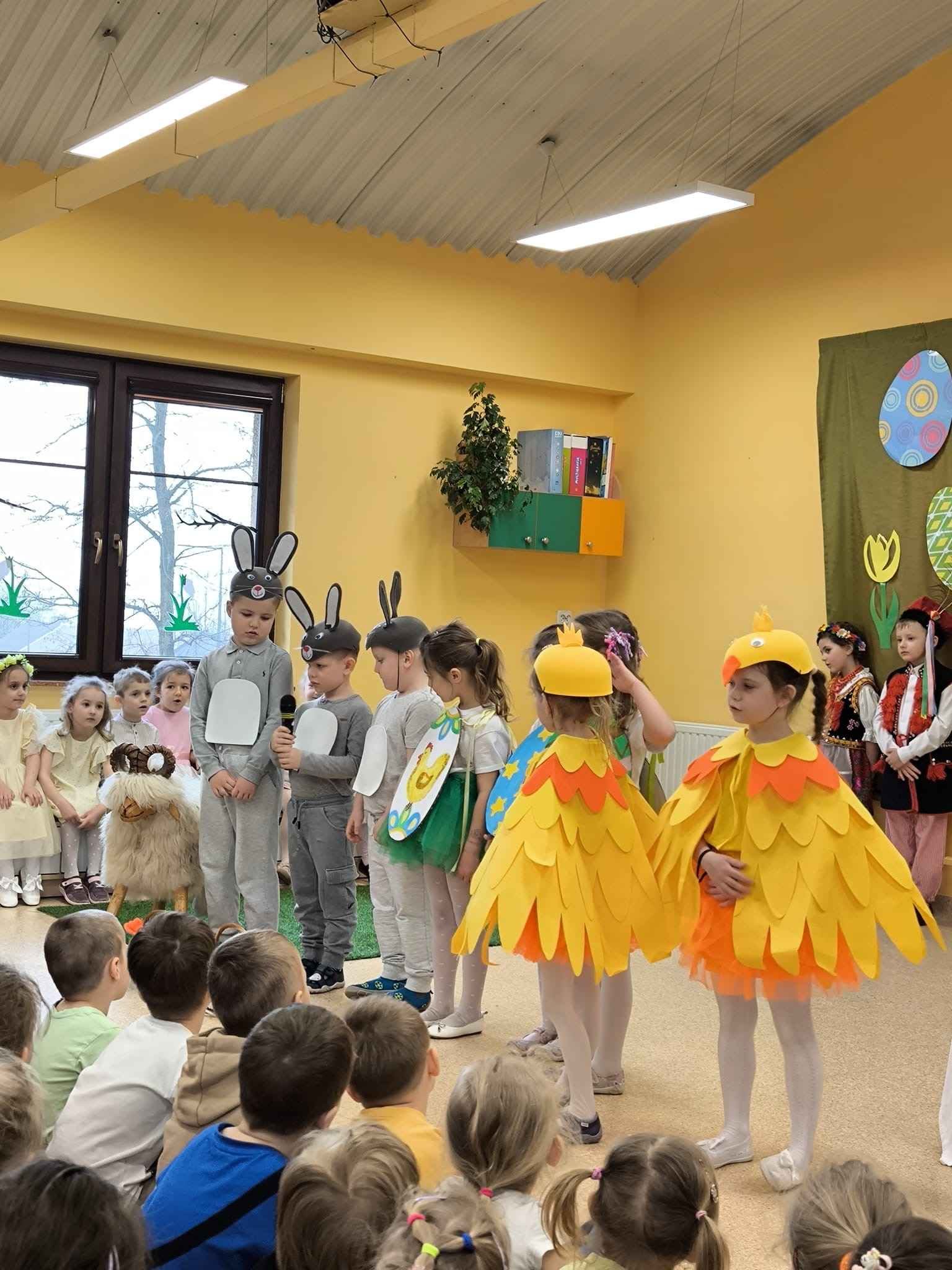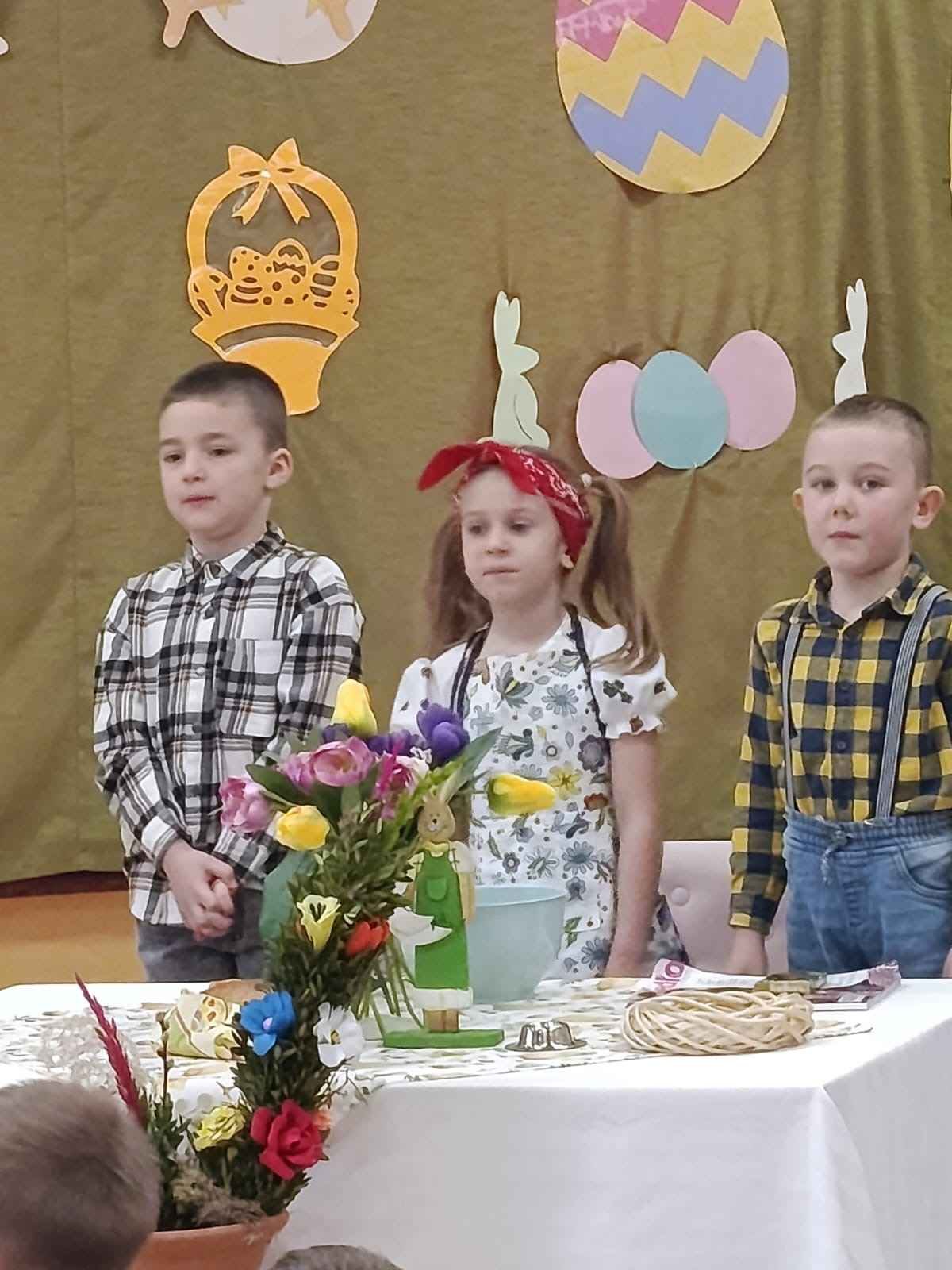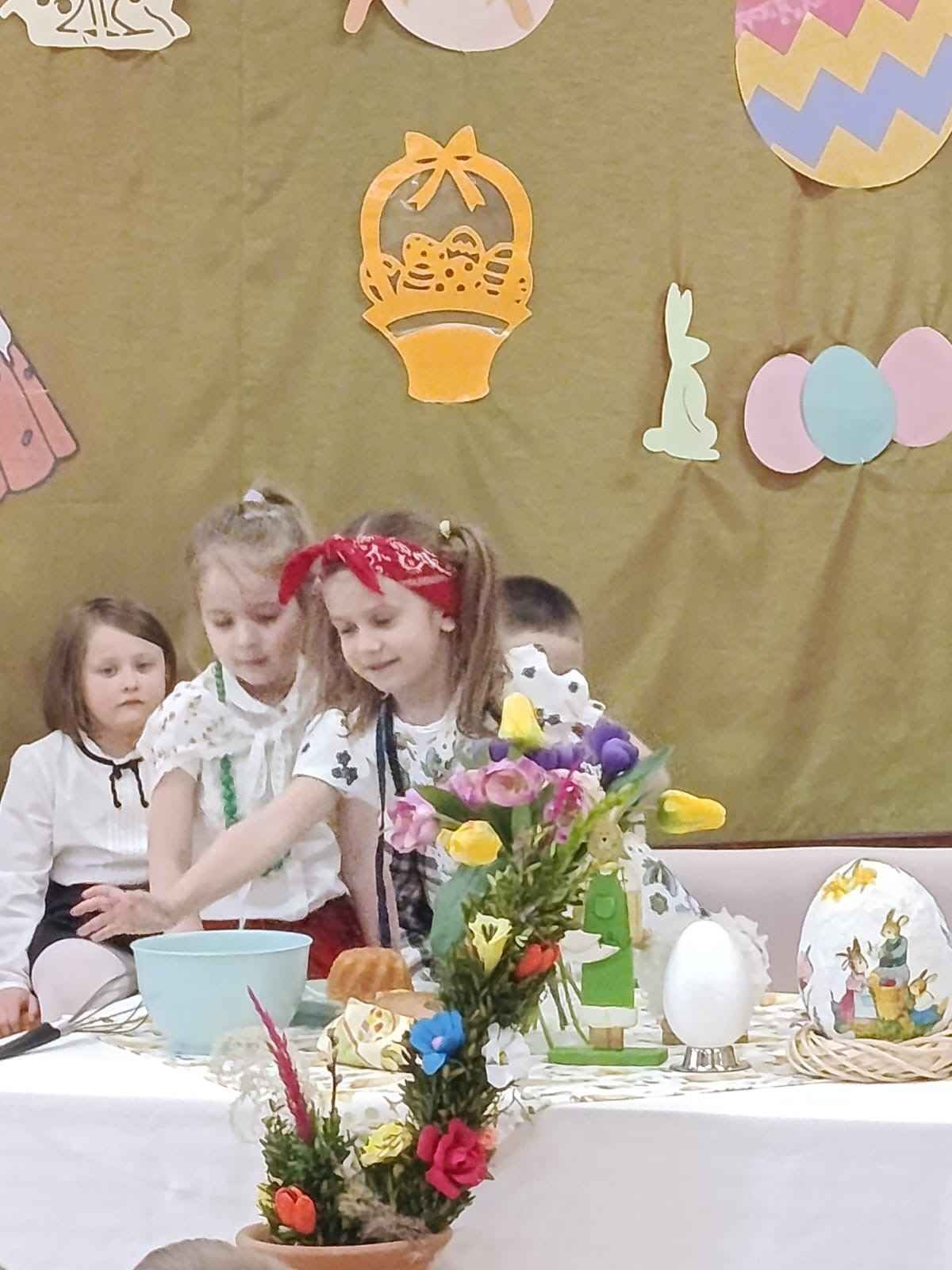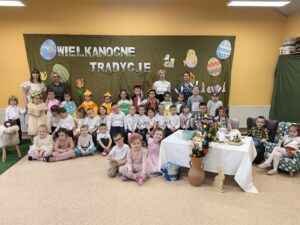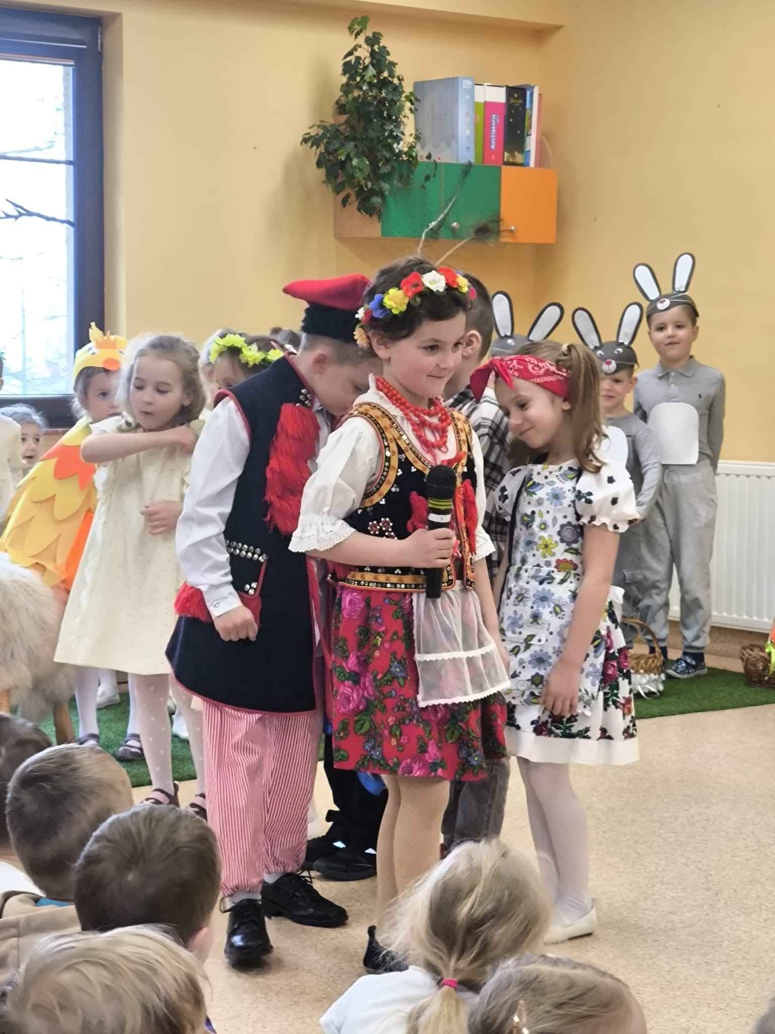 Mali artyści wystąpili w kolorowych strojach, nawiązujących do tradycji wielkanocnych – nie zabrakło zajączków, kurczaczków i barwnych pisanek. Ich występy wzbudziły wiele uśmiechu i wzruszeń wśród zgromadzonych gości. Dzieci z wielką radością dzieliły się swoją energią i entuzjazmem, przypominając wszystkim, jak piękne i ważne są świąteczne tradycje.