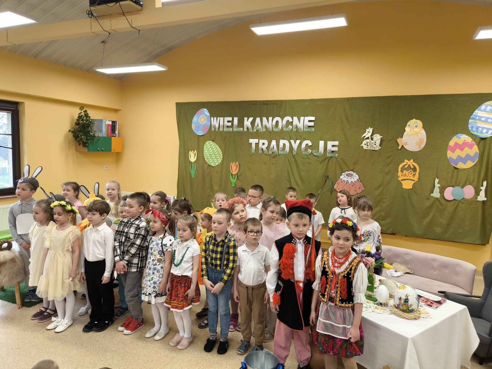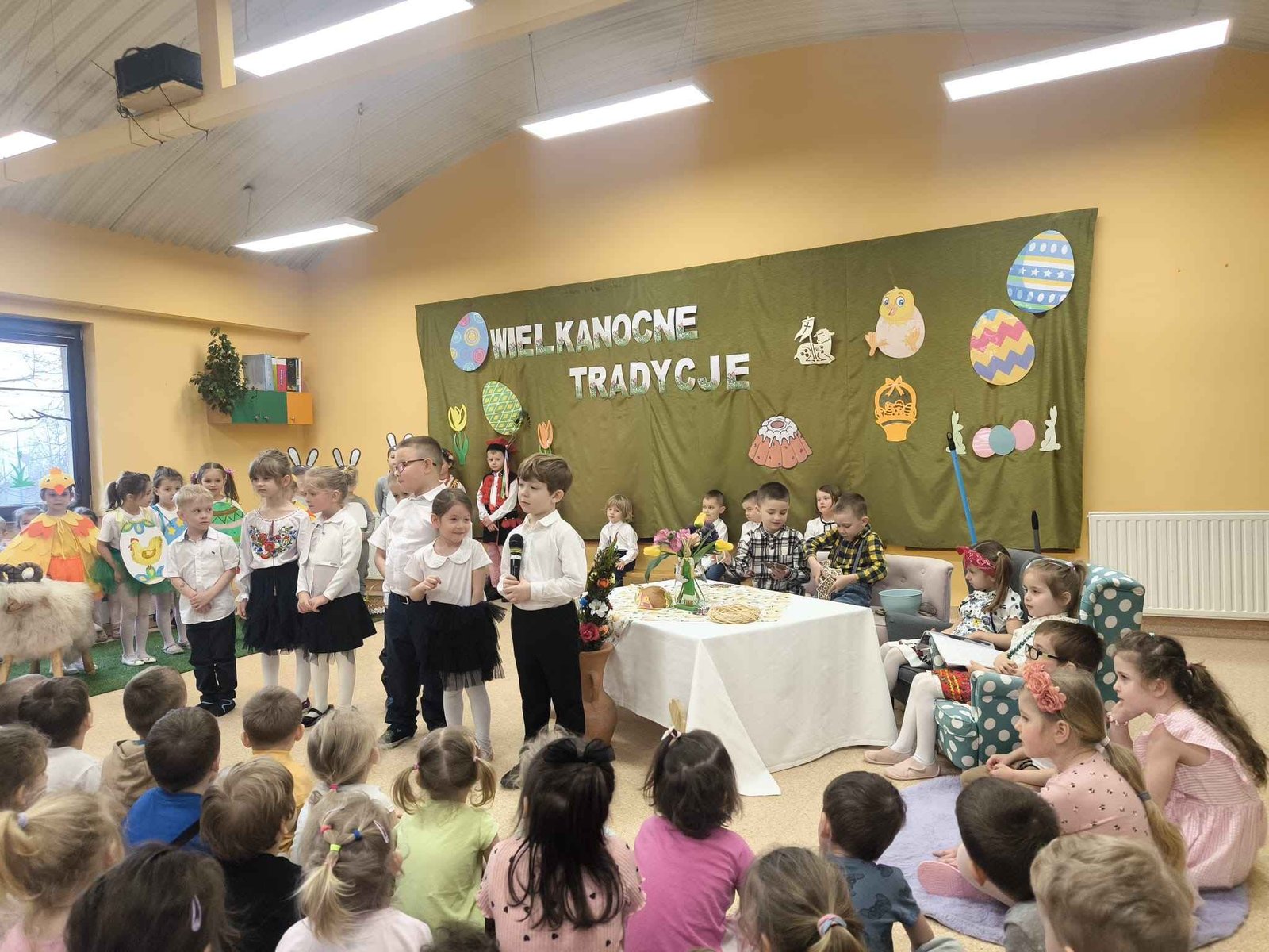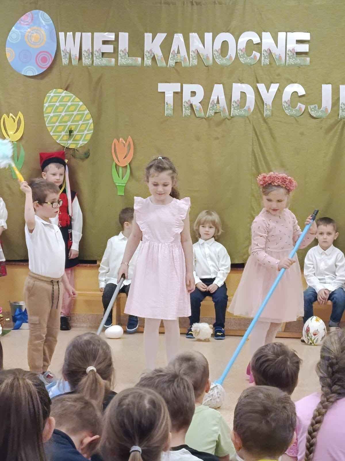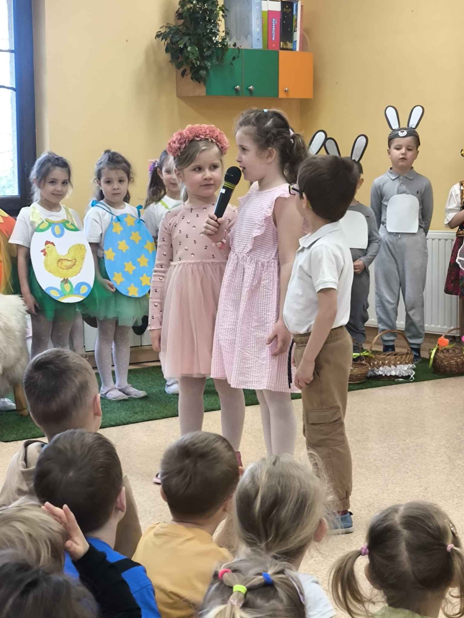 Mali artyści wystąpili w kolorowych strojach, nawiązujących do tradycji wielkanocnych – nie zabrakło zajączków, kurczaczków i barwnych pisanek. Ich występy wzbudziły wiele uśmiechu i wzruszeń wśród zgromadzonych gości. Dzieci z wielką radością dzieliły się swoją energią i entuzjazmem, przypominając wszystkim, jak piękne i ważne są świąteczne tradycje.