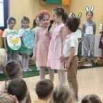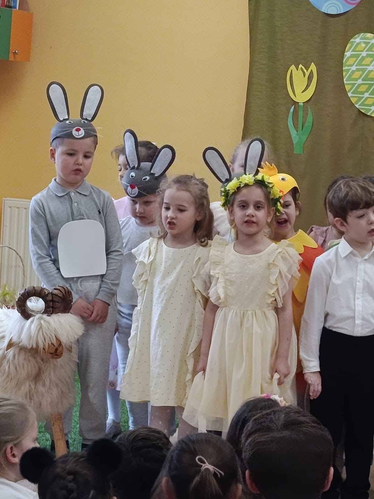 W naszym przedszkolu odbyło się wyjątkowe spotkanie wielkanocne, które wprowadziło wszystkich w radosny, świąteczny nastrój. Tego dnia dzieci zaprezentowały przygotowany z ogromnym zaangażowaniem program artystyczny, pełen wiosennych piosenek, wierszyków oraz krótkich scenek tematycznych.